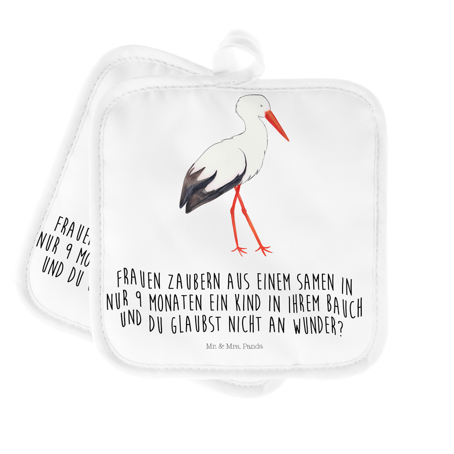 2er Set Topflappen Storch - mit Spruch - Weiß