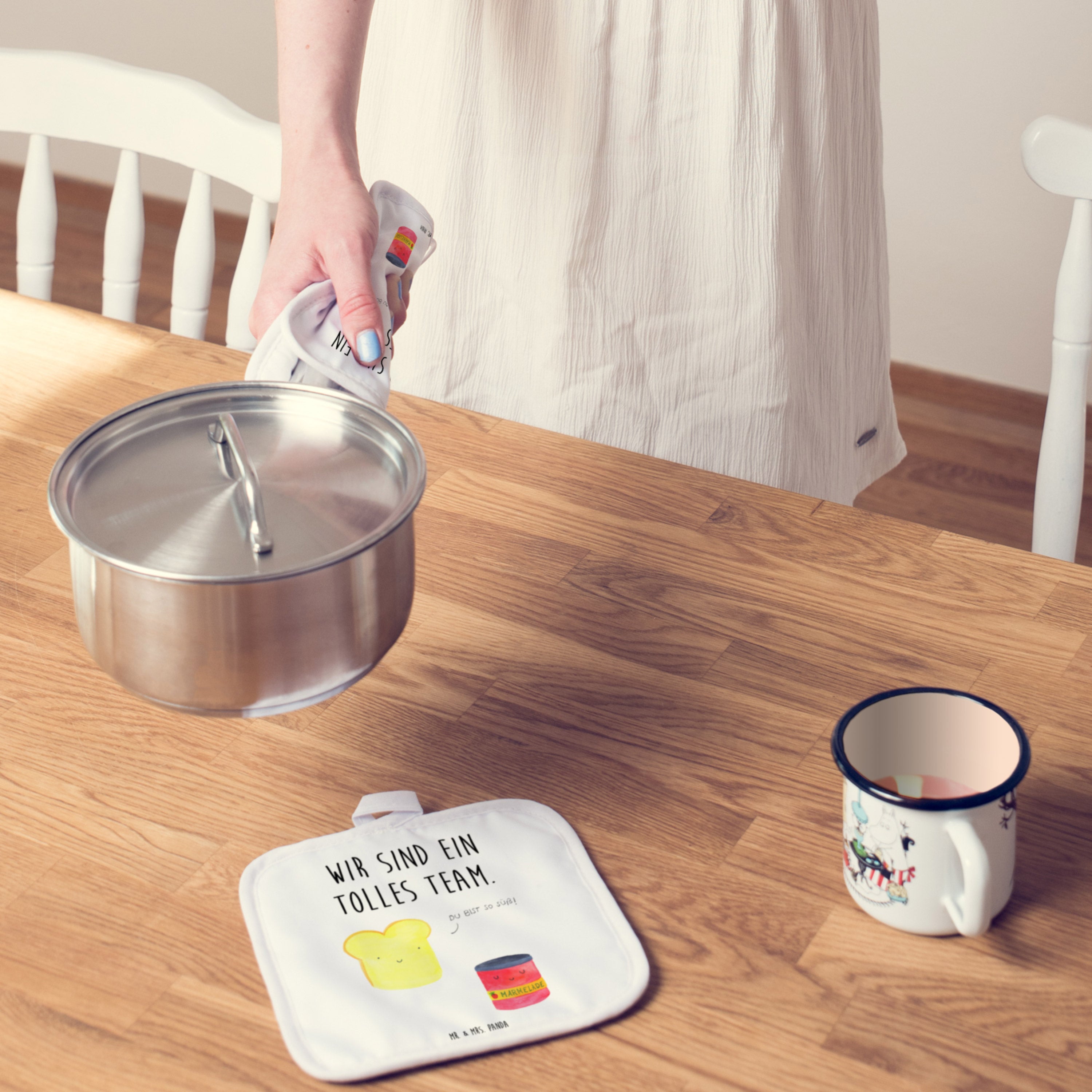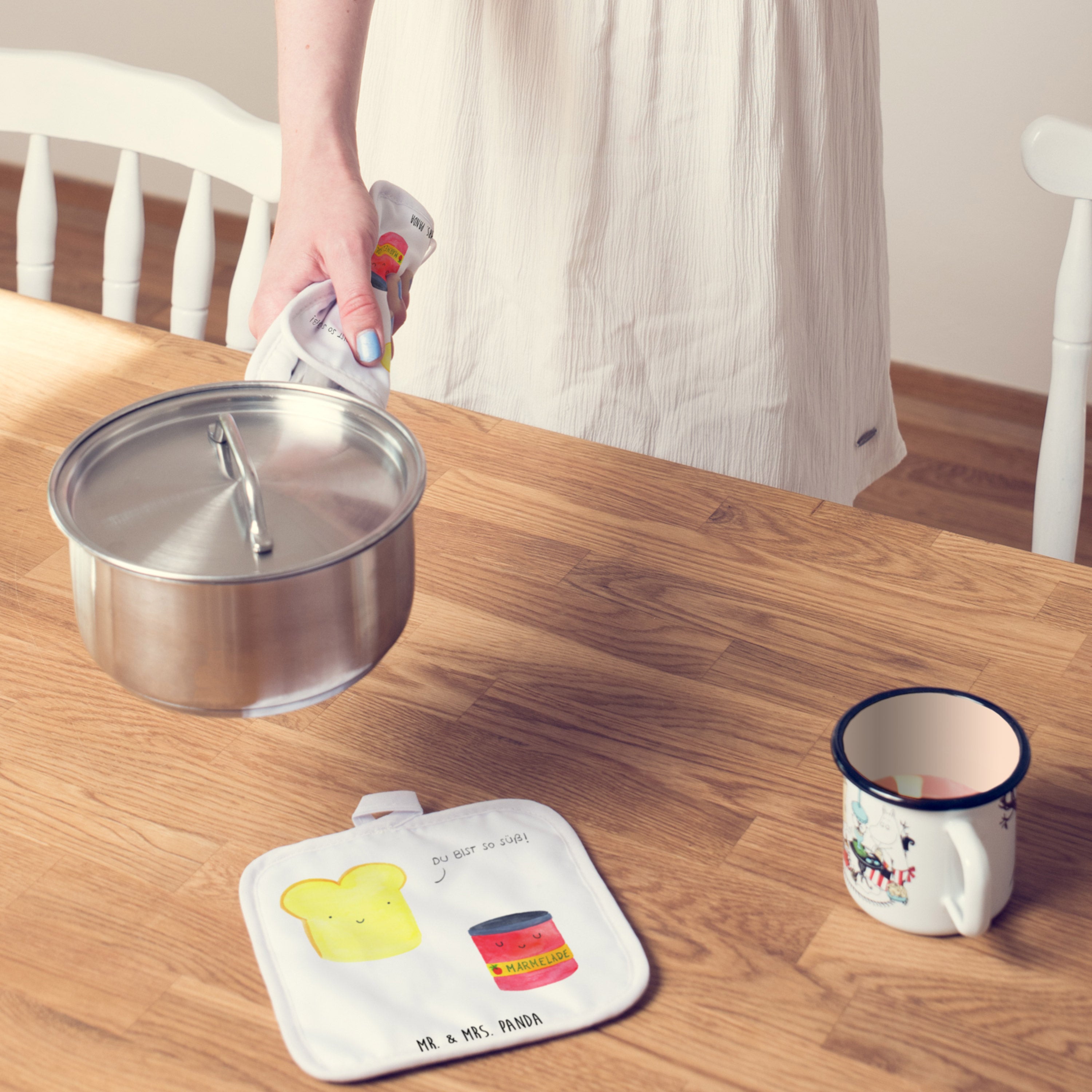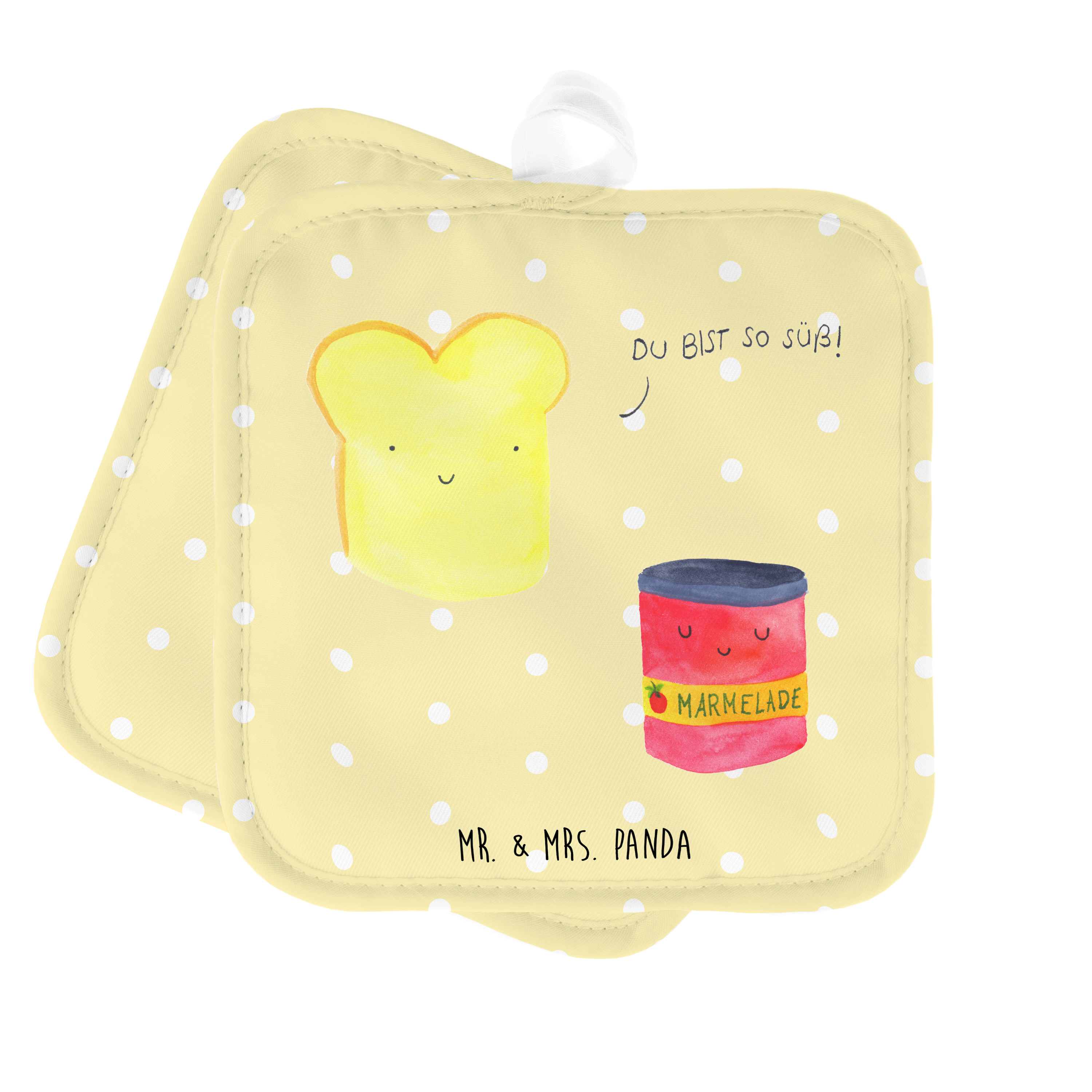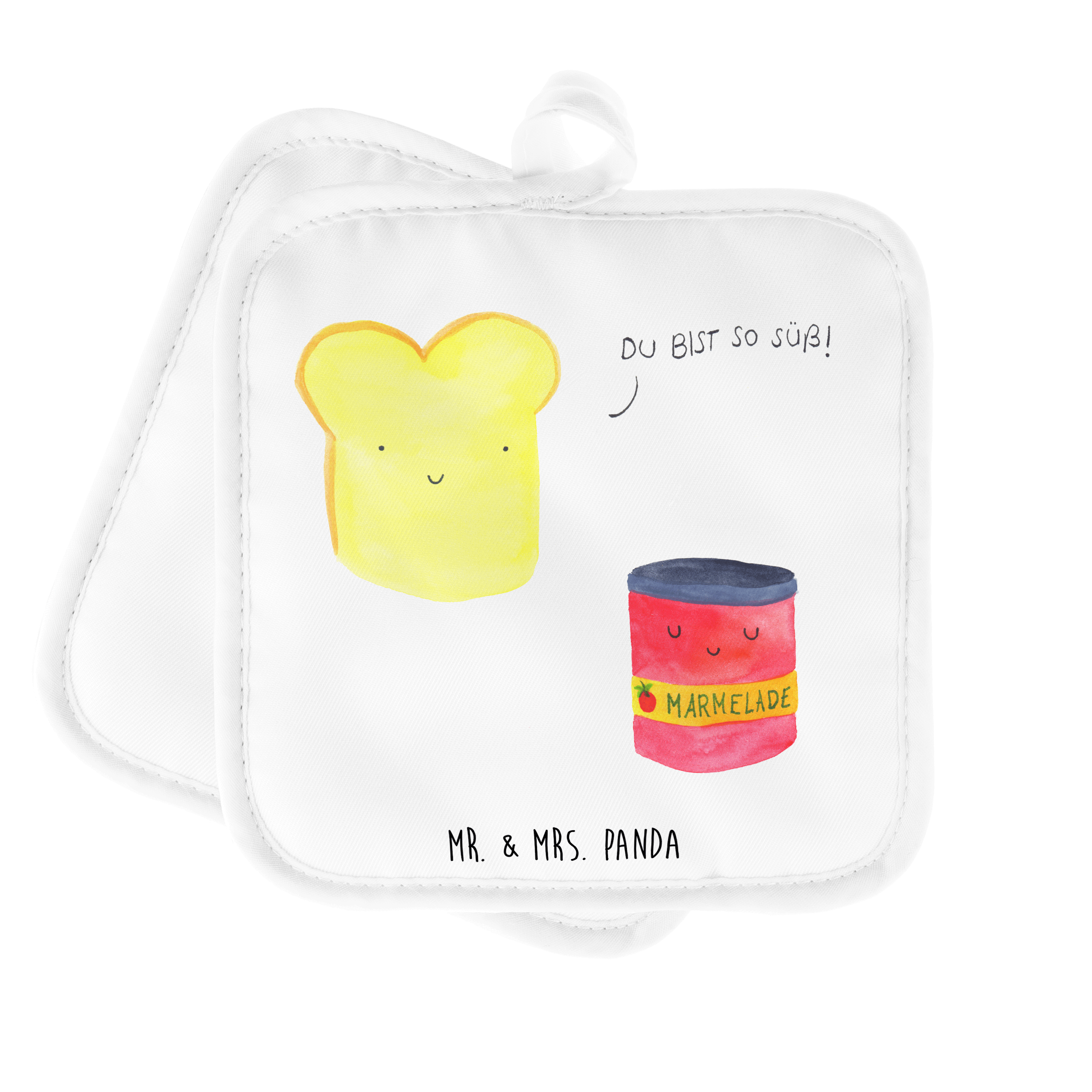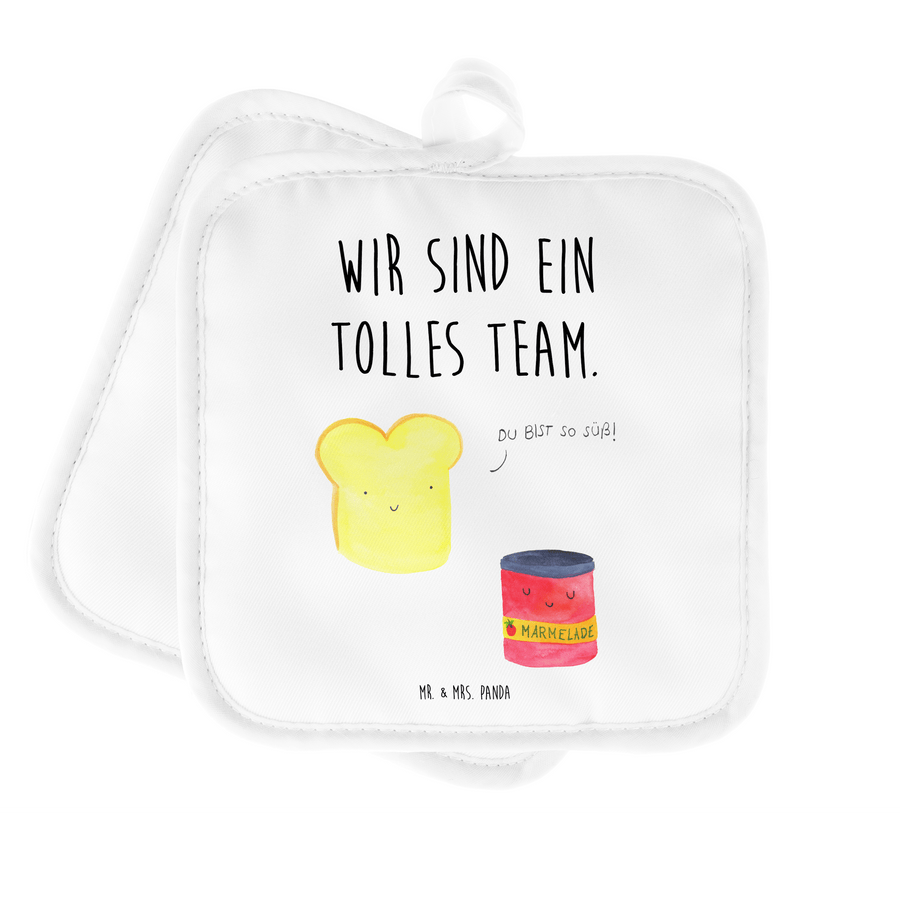 2er Set Topflappen Toast & Marmelade - mit Spruch - Weiß