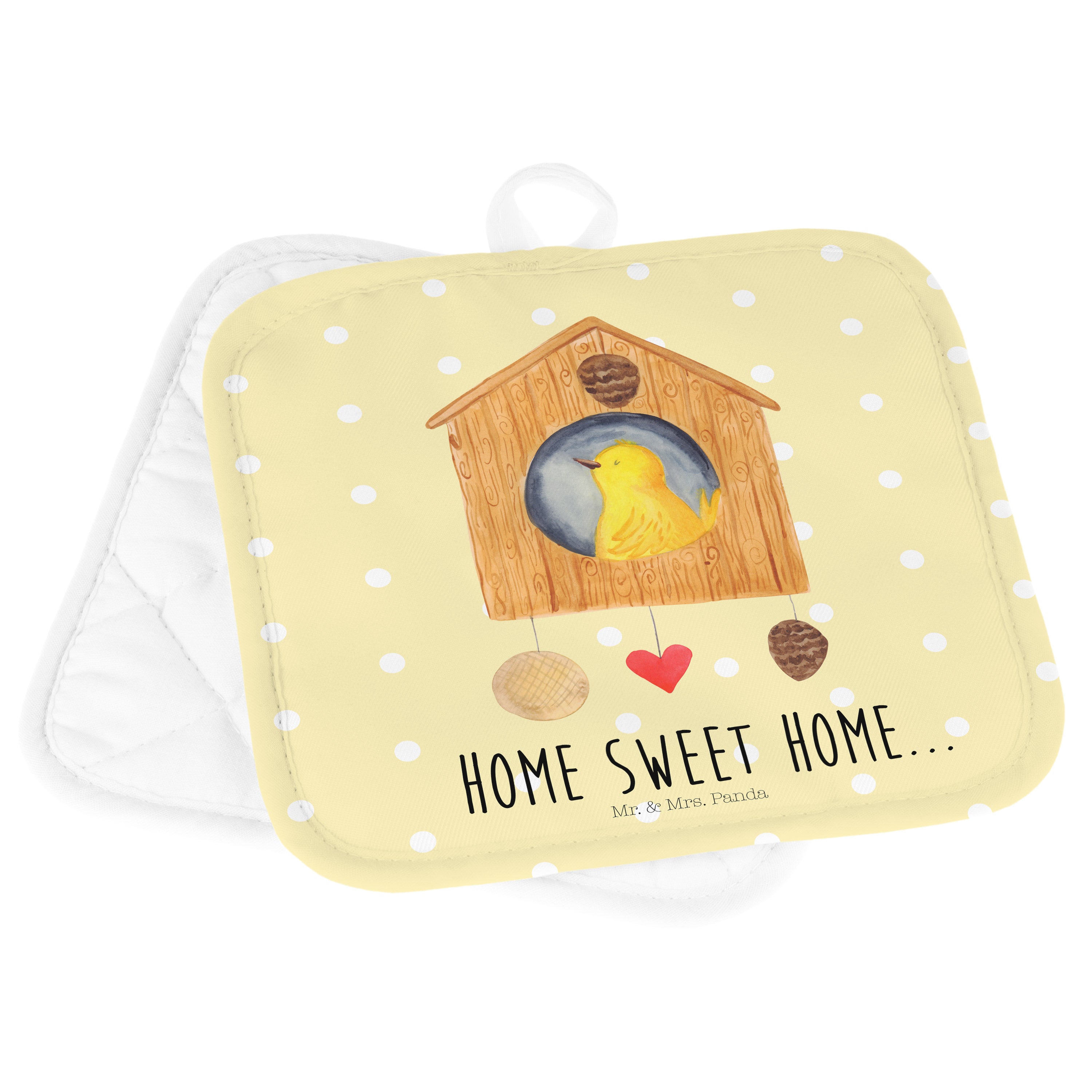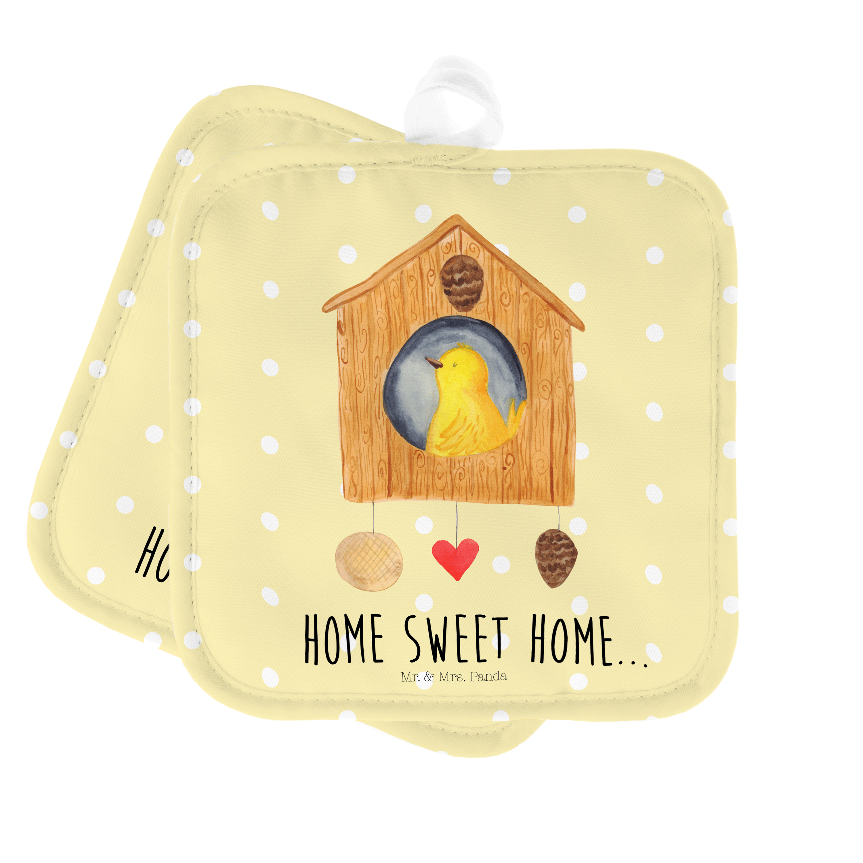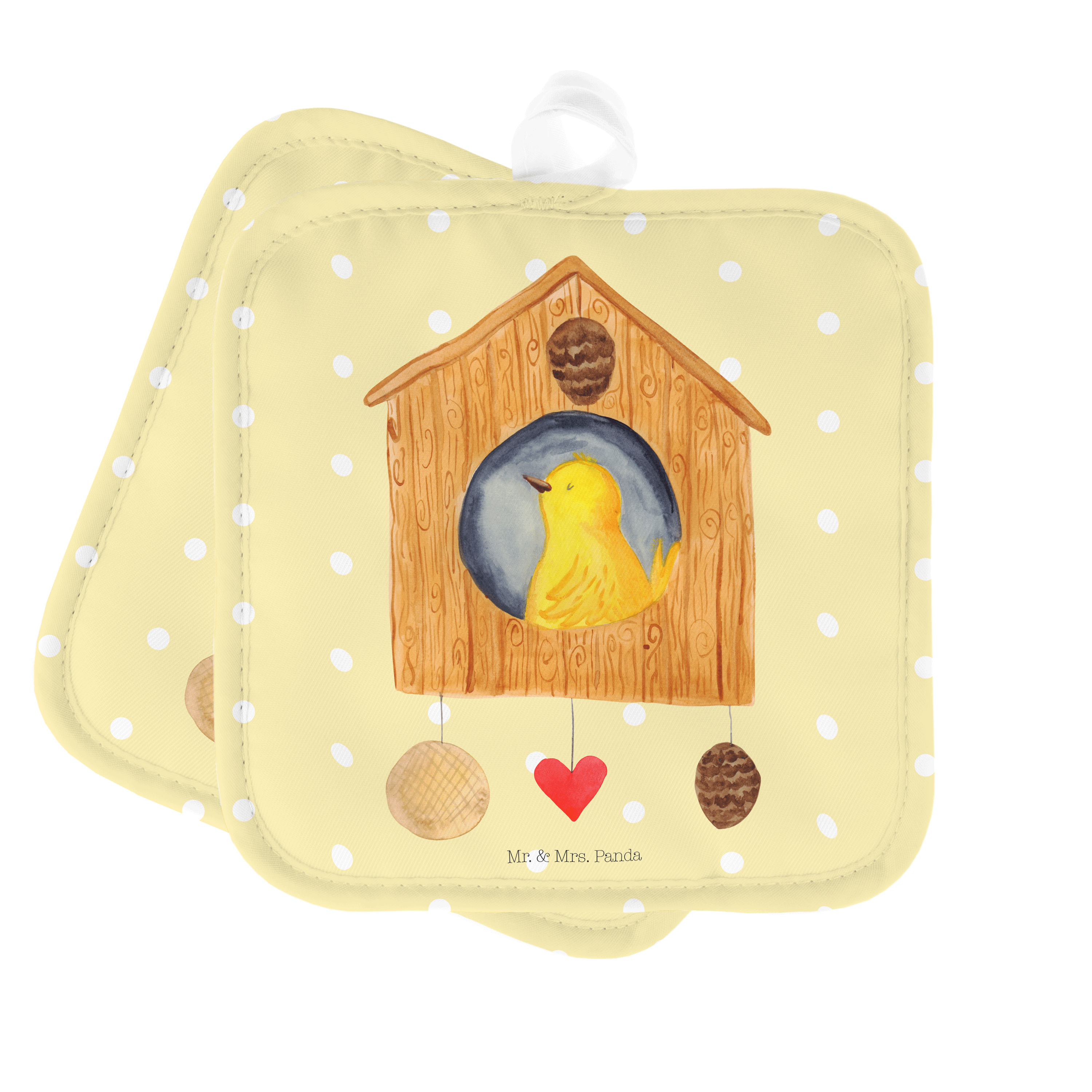 2er Set Topflappen Vogelhaus sweet Home - mit Spruch - Gelb Pastell