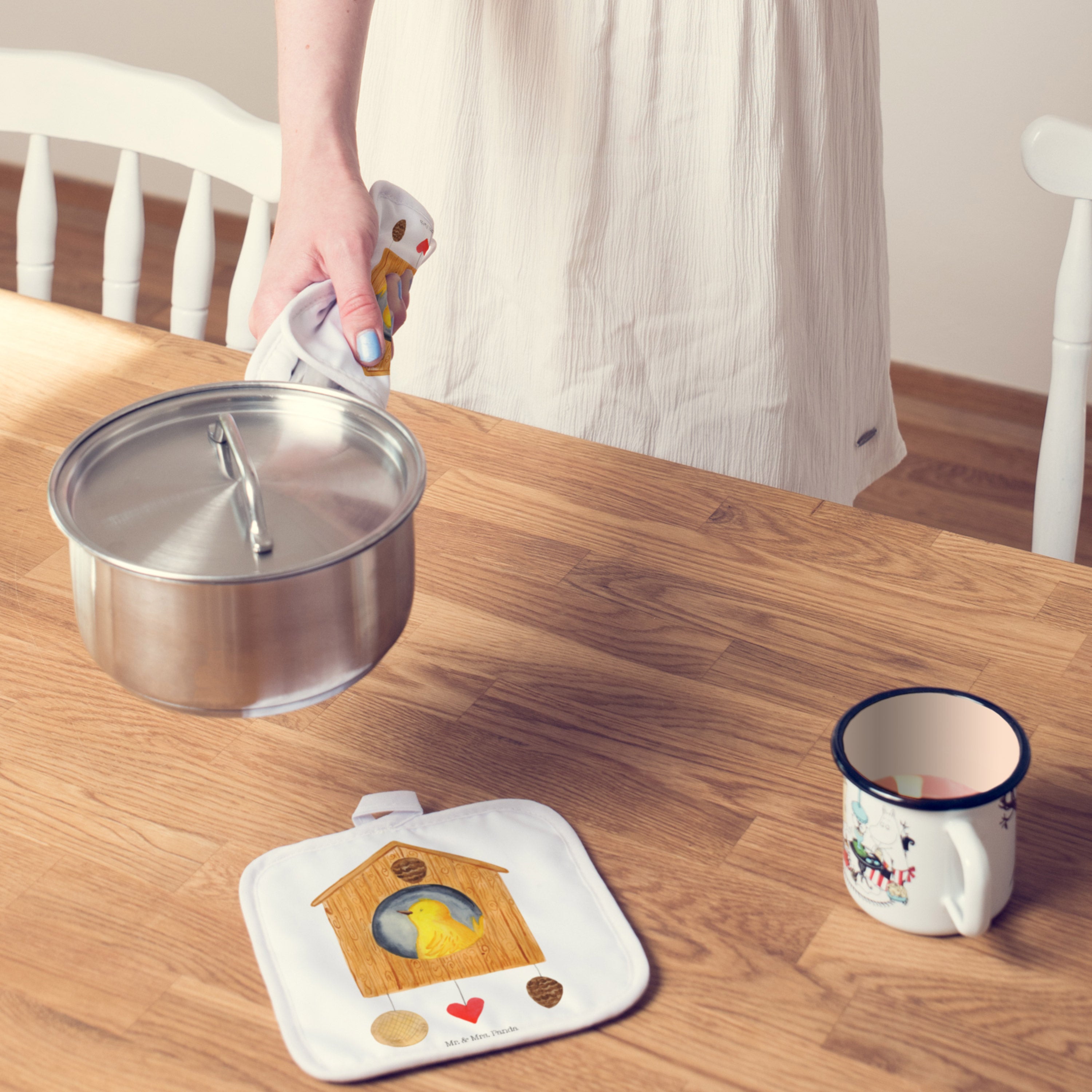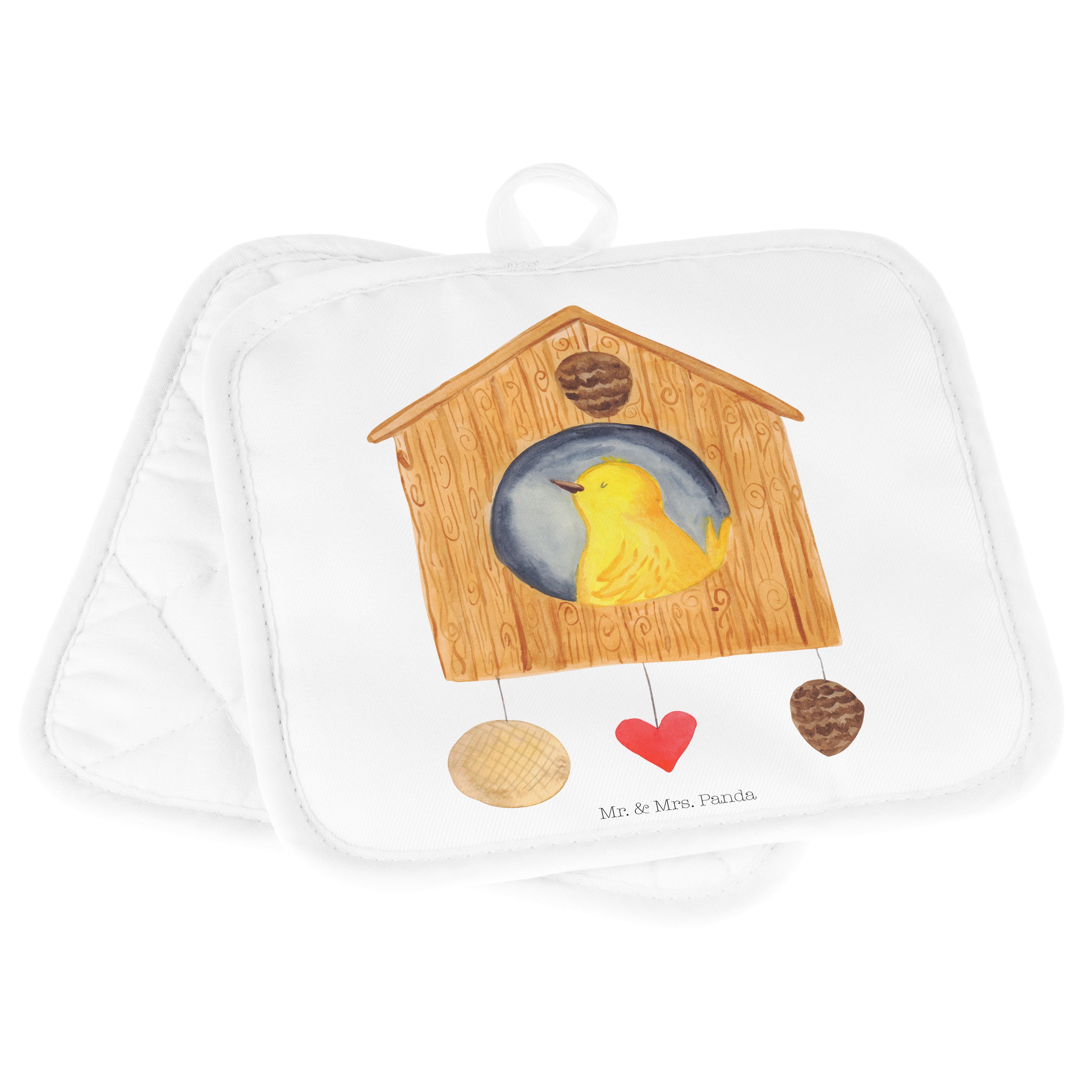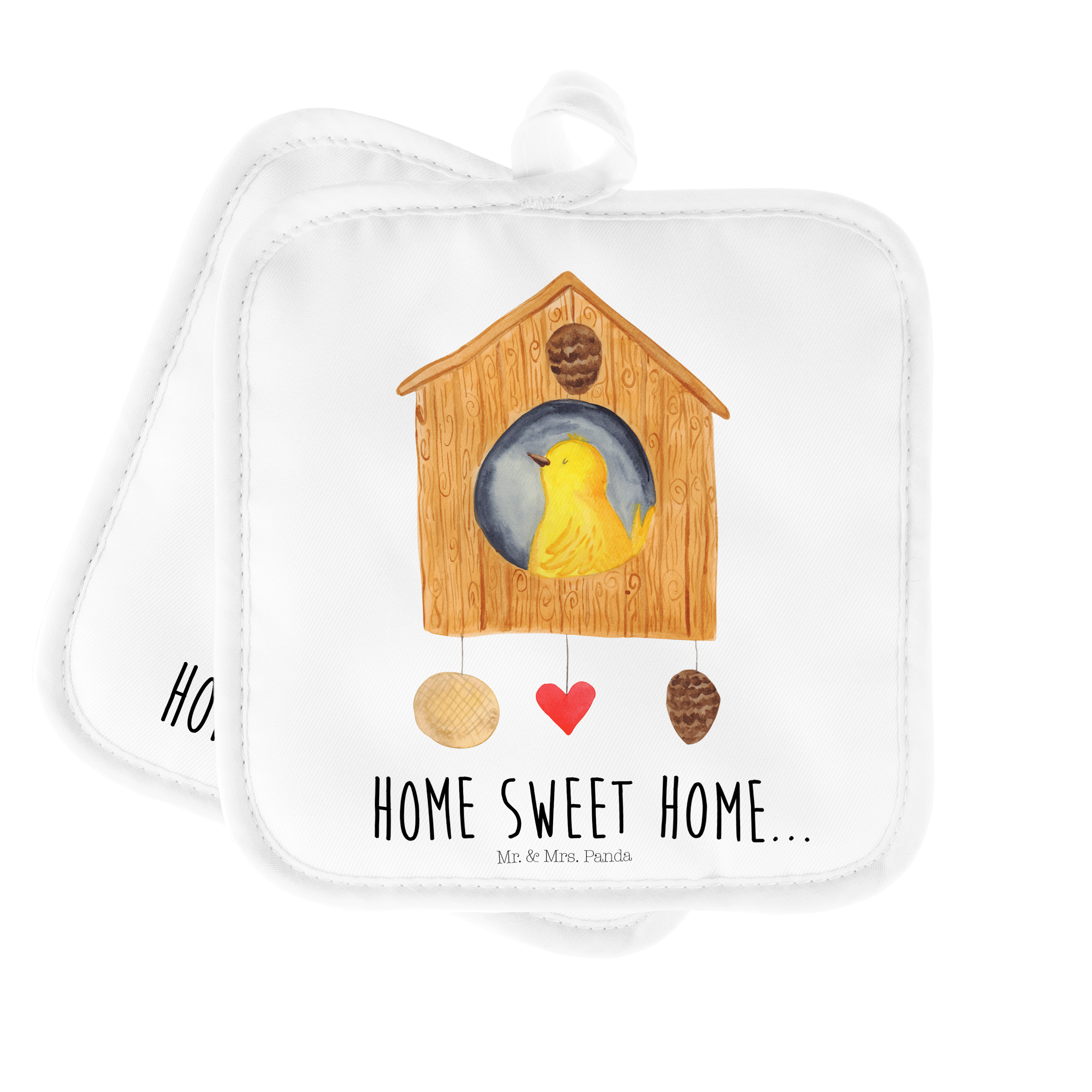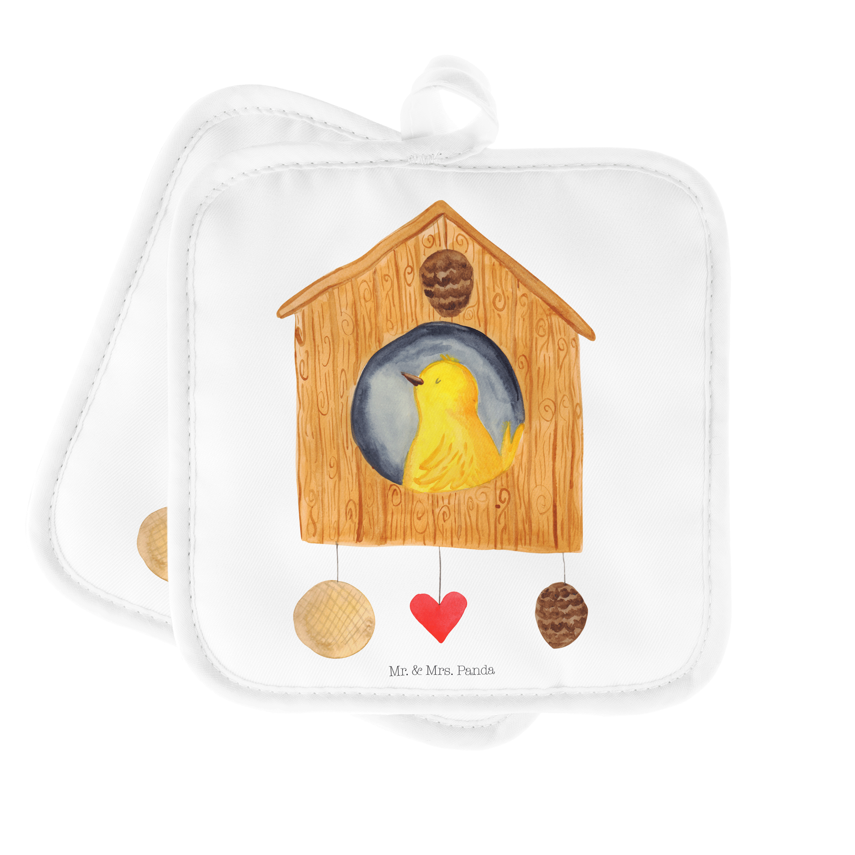 2er Set Topflappen Vogelhaus sweet Home - mit Spruch - Gelb Pastell