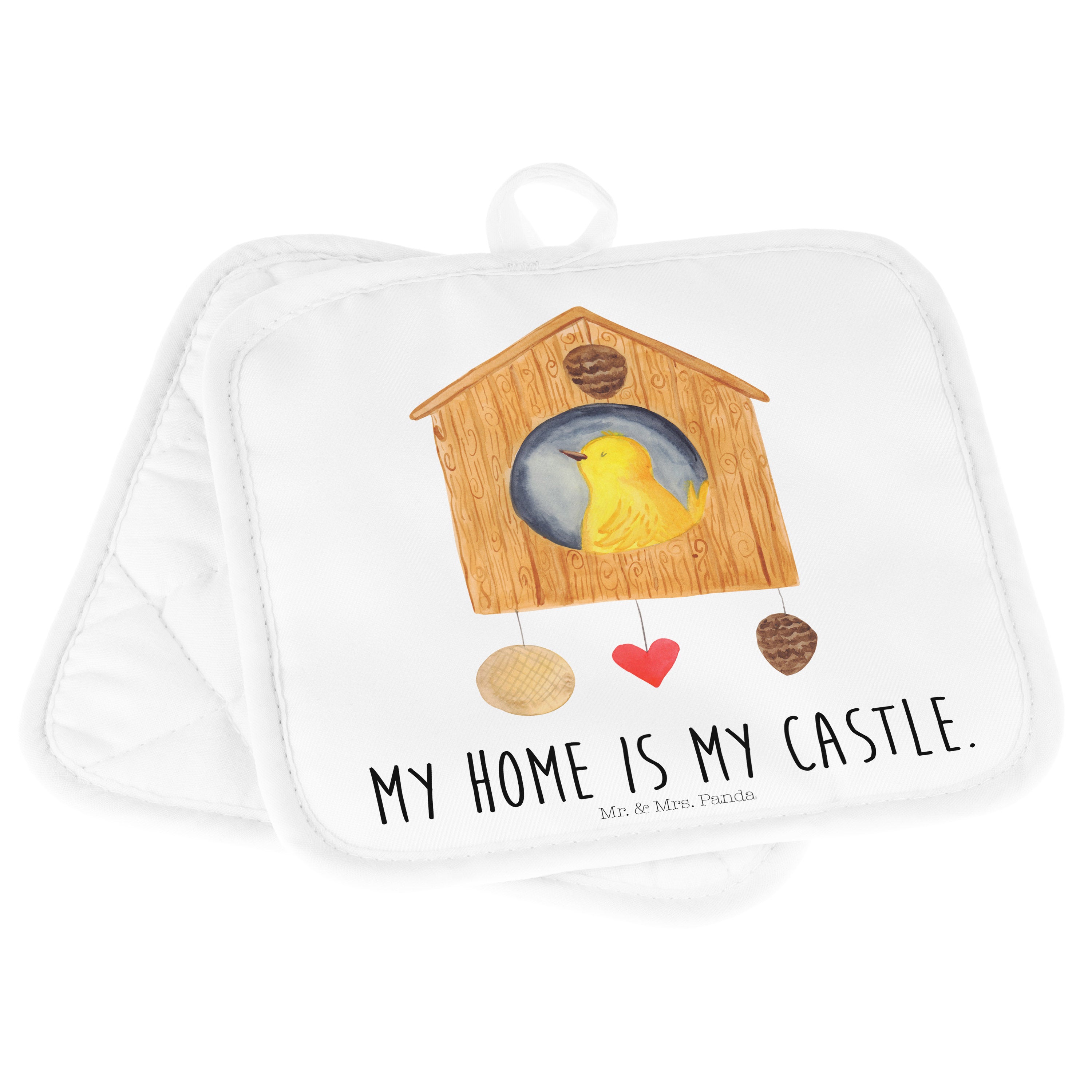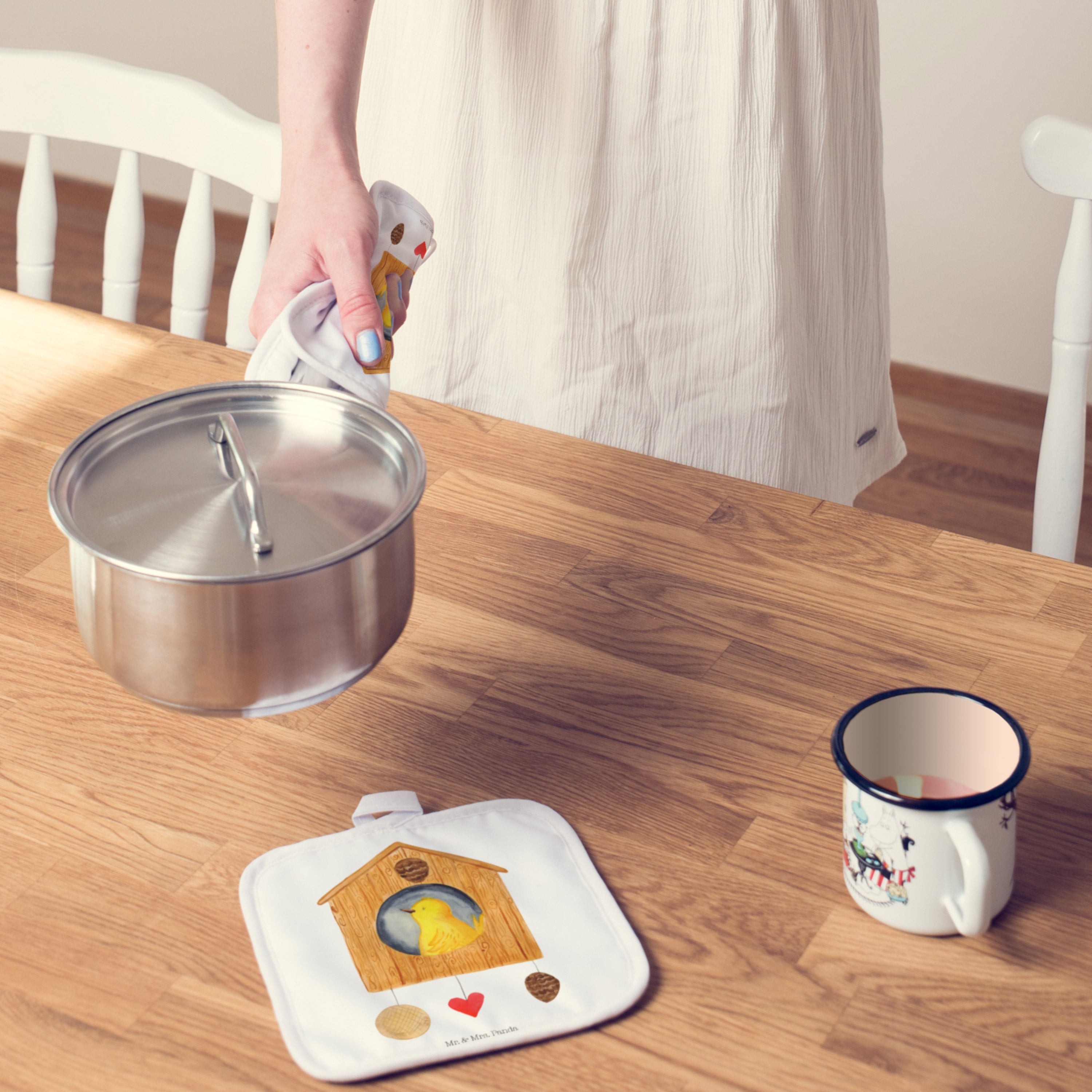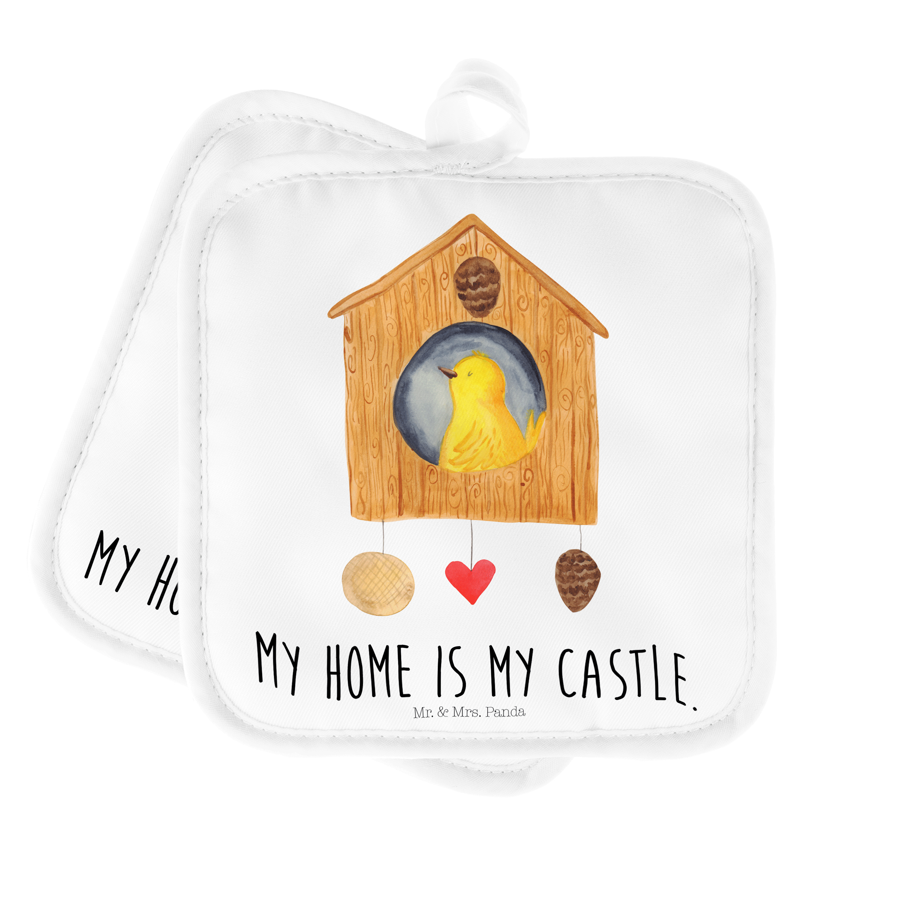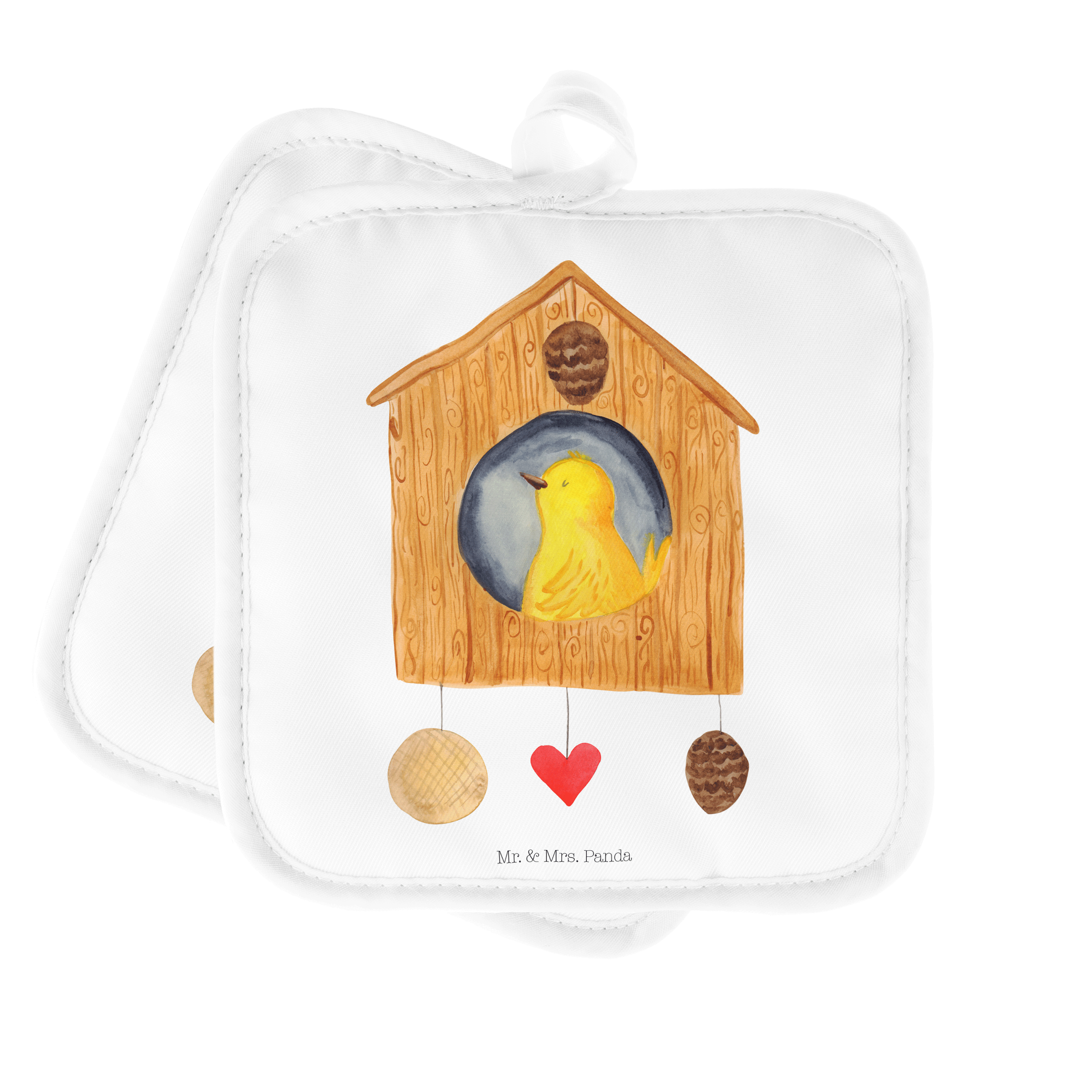 2er Set Topflappen Vogelhaus - mit Spruch - Weiß