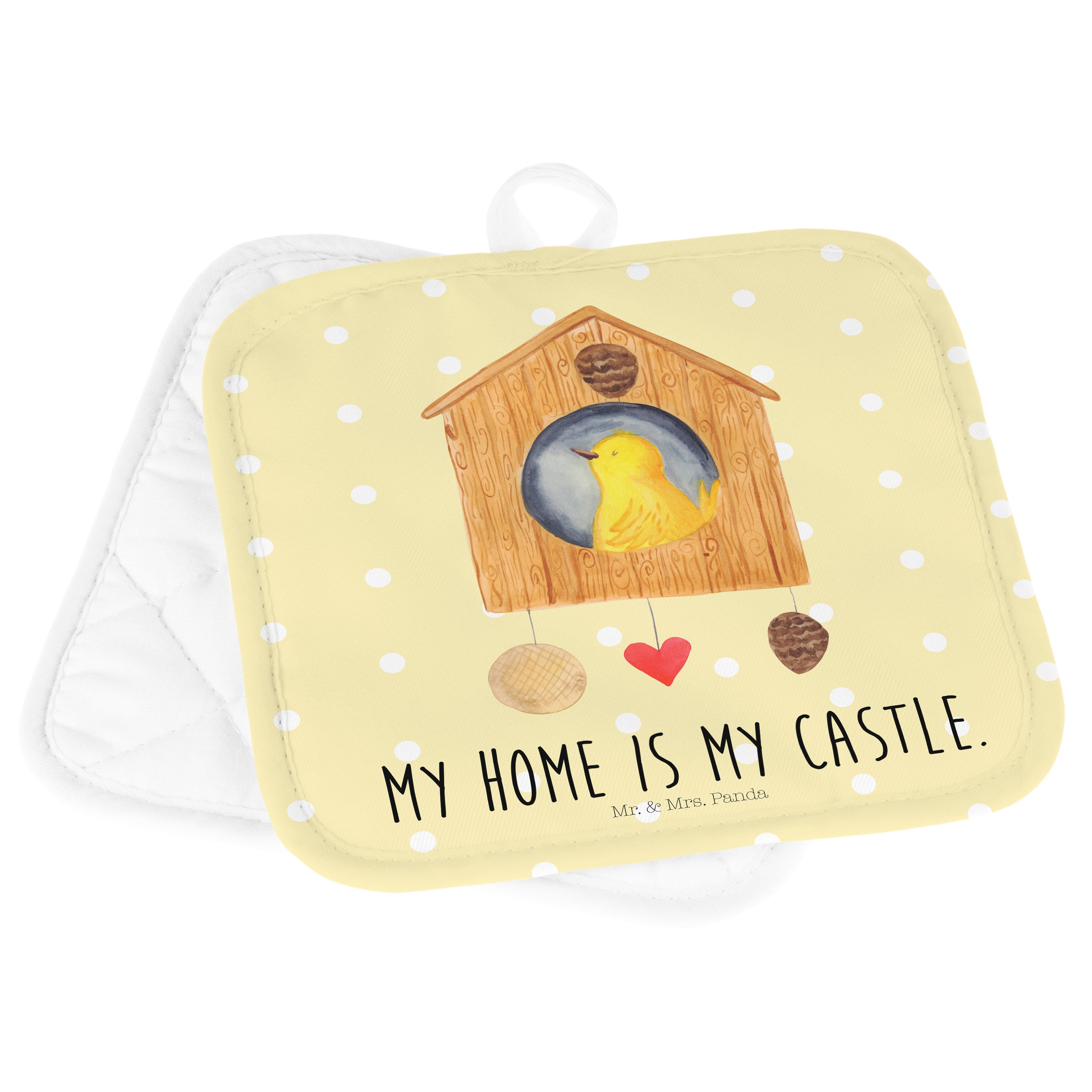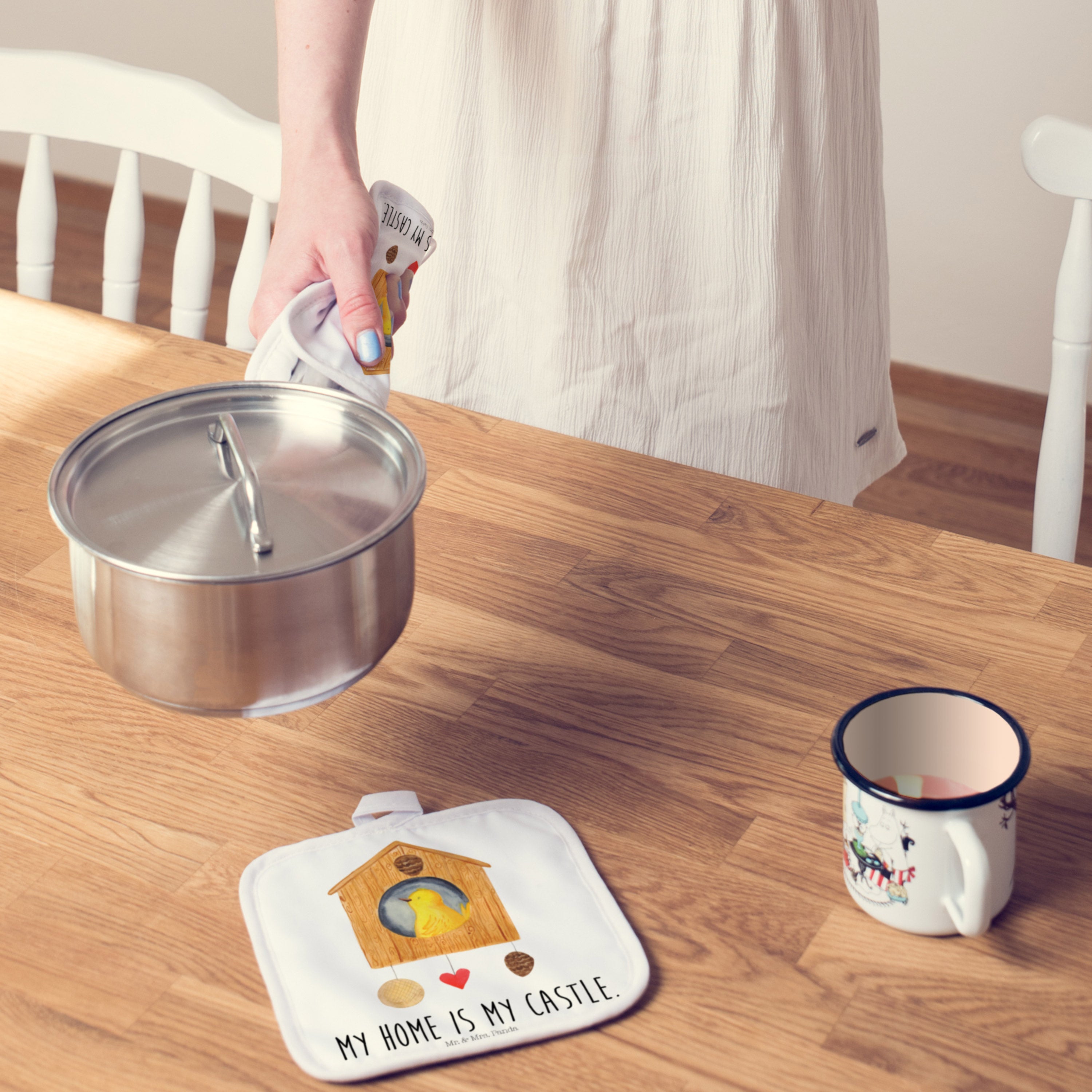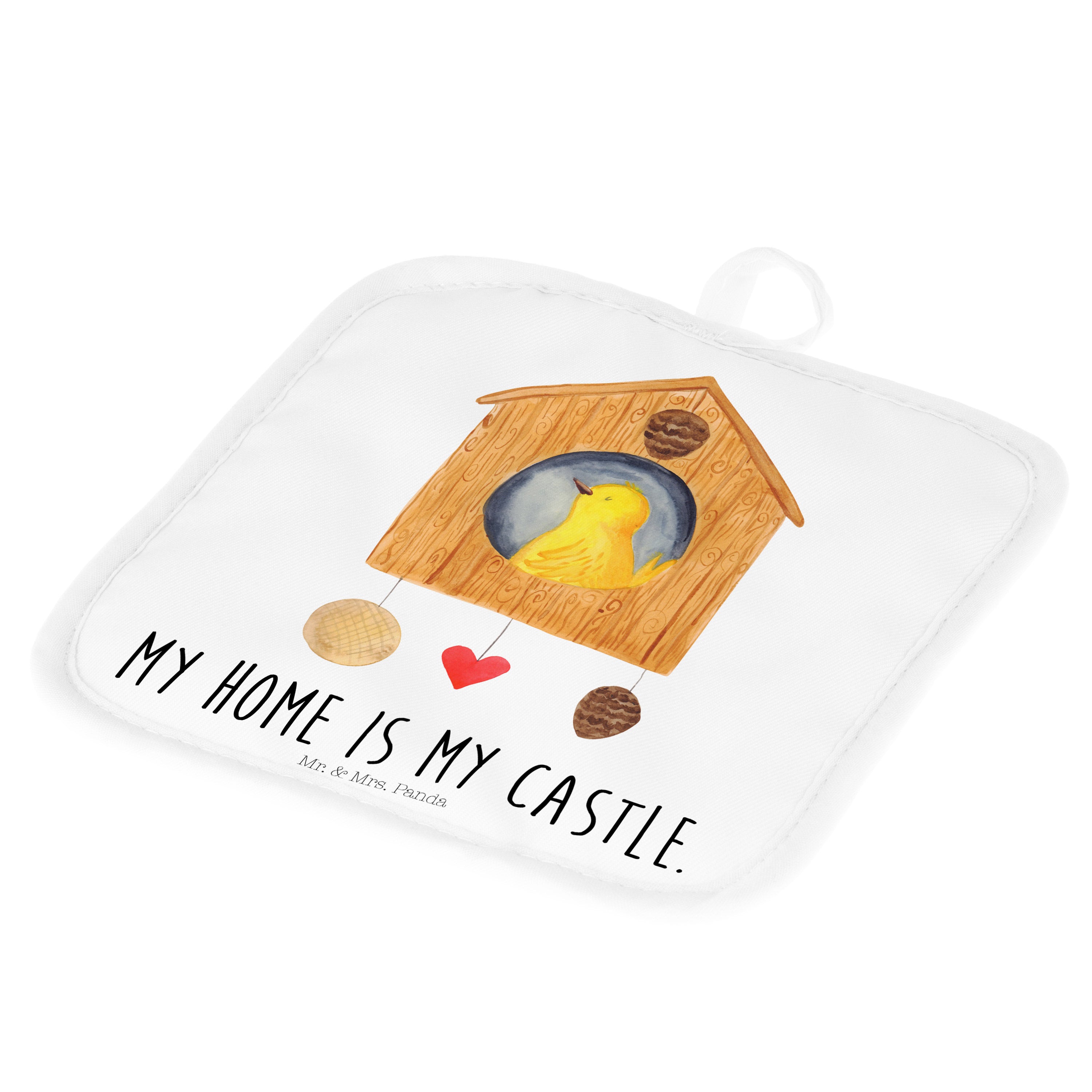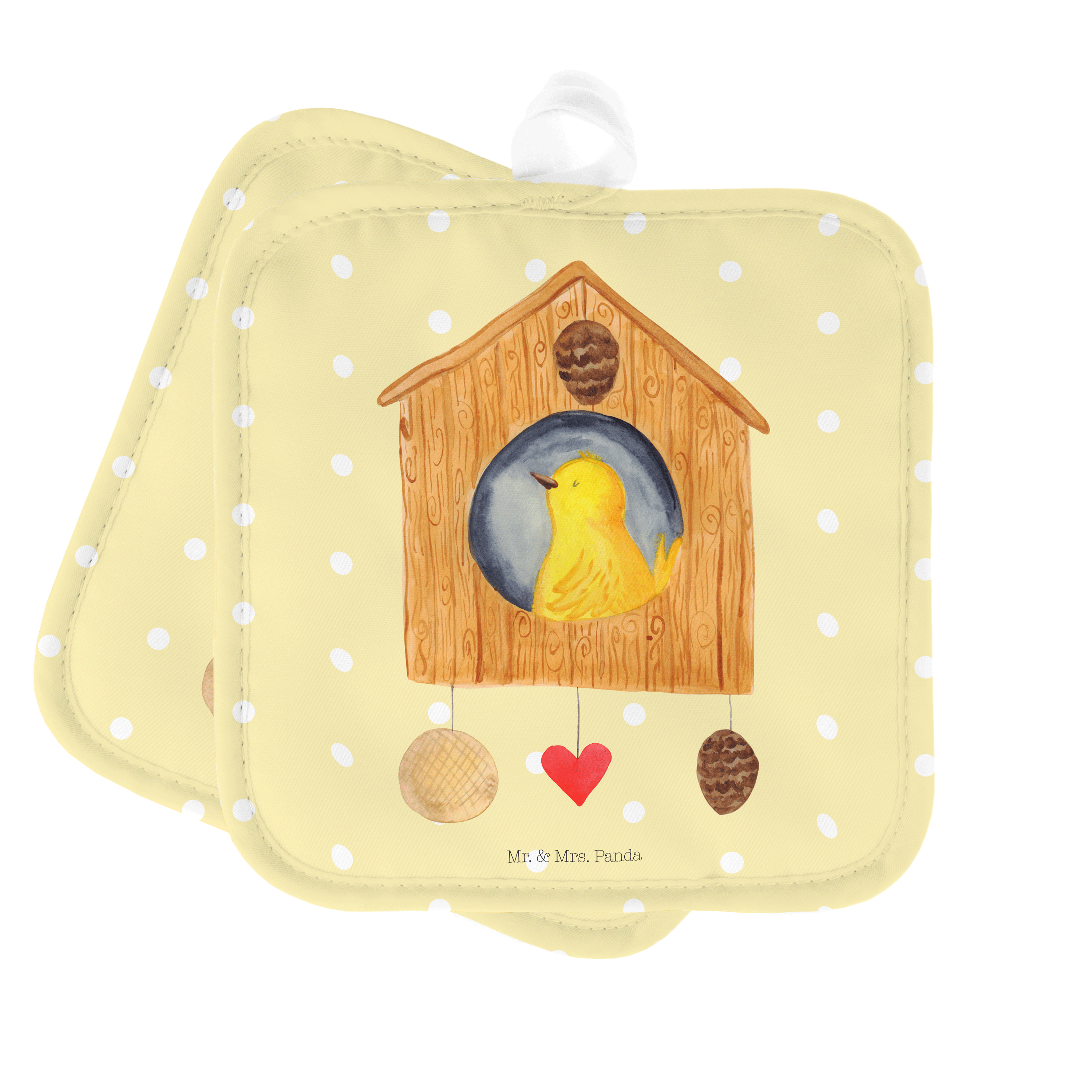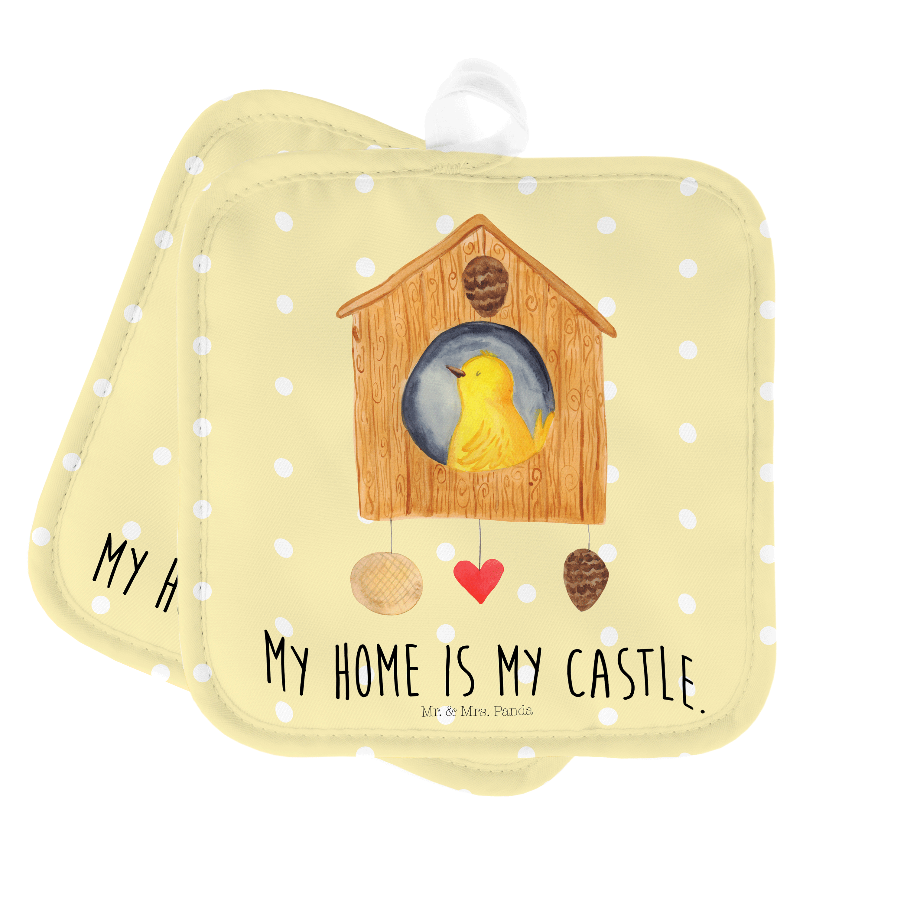 2er Set Topflappen Vogelhaus - mit Spruch - Weiß