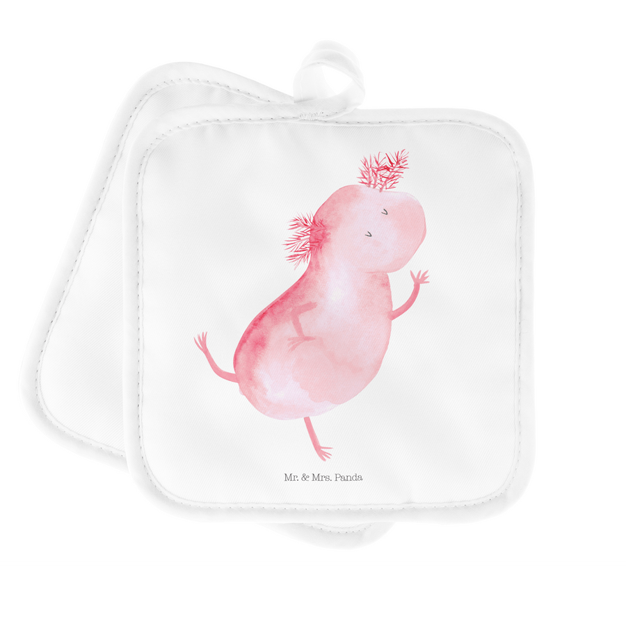 2er Set Topflappen Axolotl tanzt - ohne Spruch - Weiß