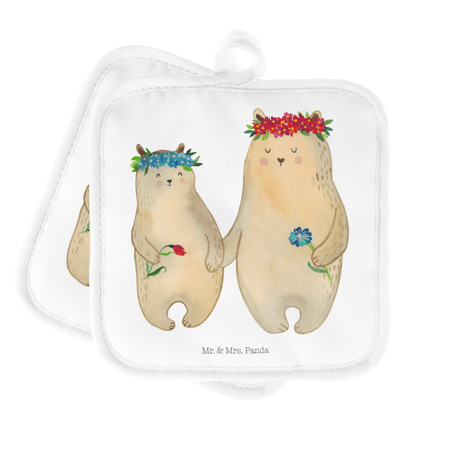 2er Set Topflappen Bären mit Blumenkranz - ohne Spruch - Weiß