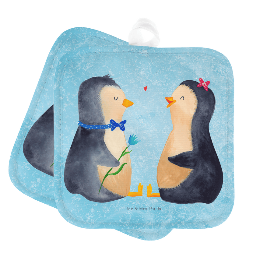 2er Set Topflappen Pinguin Pärchen - ohne Spruch - Eisblau
