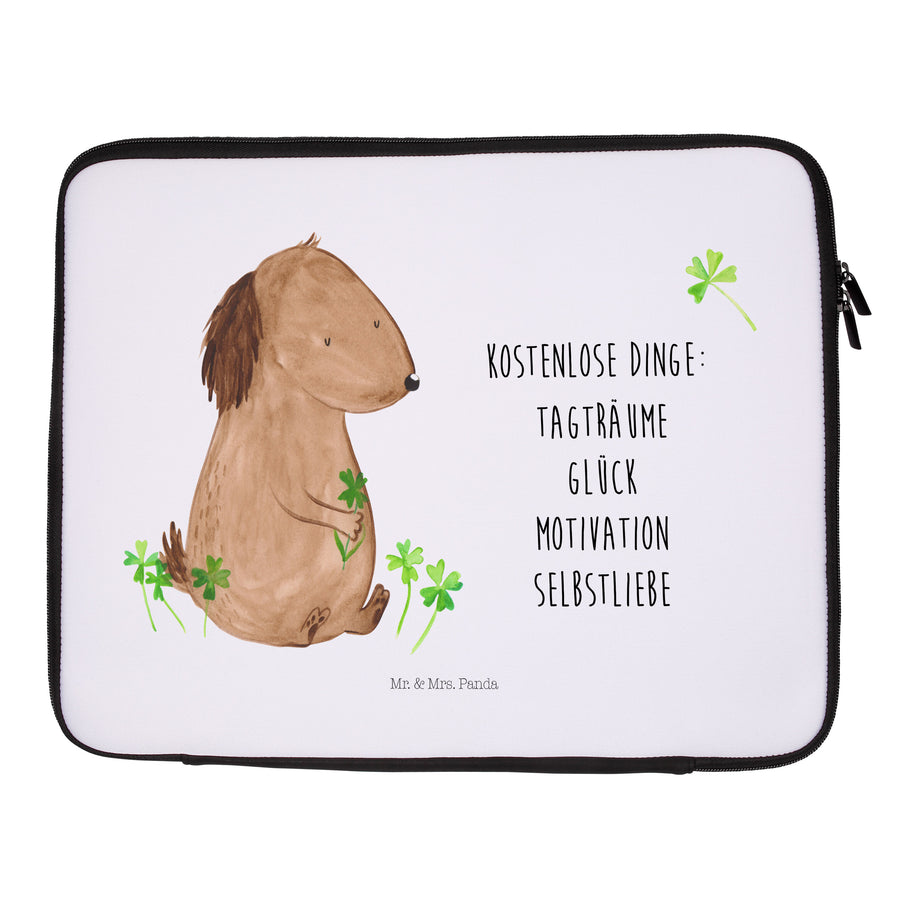 33 x 42 Notebook Tasche Hund Kleeblatt - mit Spruch - Weiß