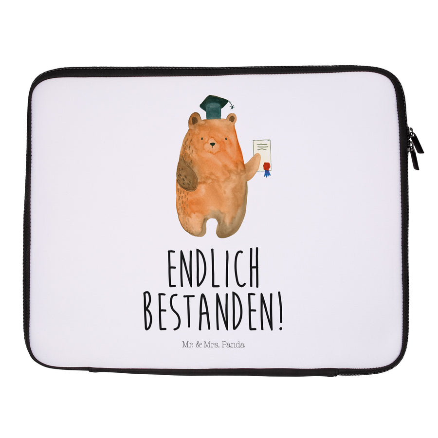 33 x 42 Notebook Tasche Prüfungsbär - mit Spruch - Weiß