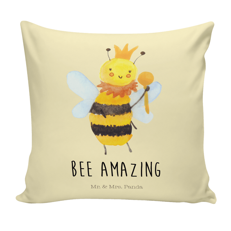 40x40 Kissen Biene König - mit Spruch - Gelb Pastell
