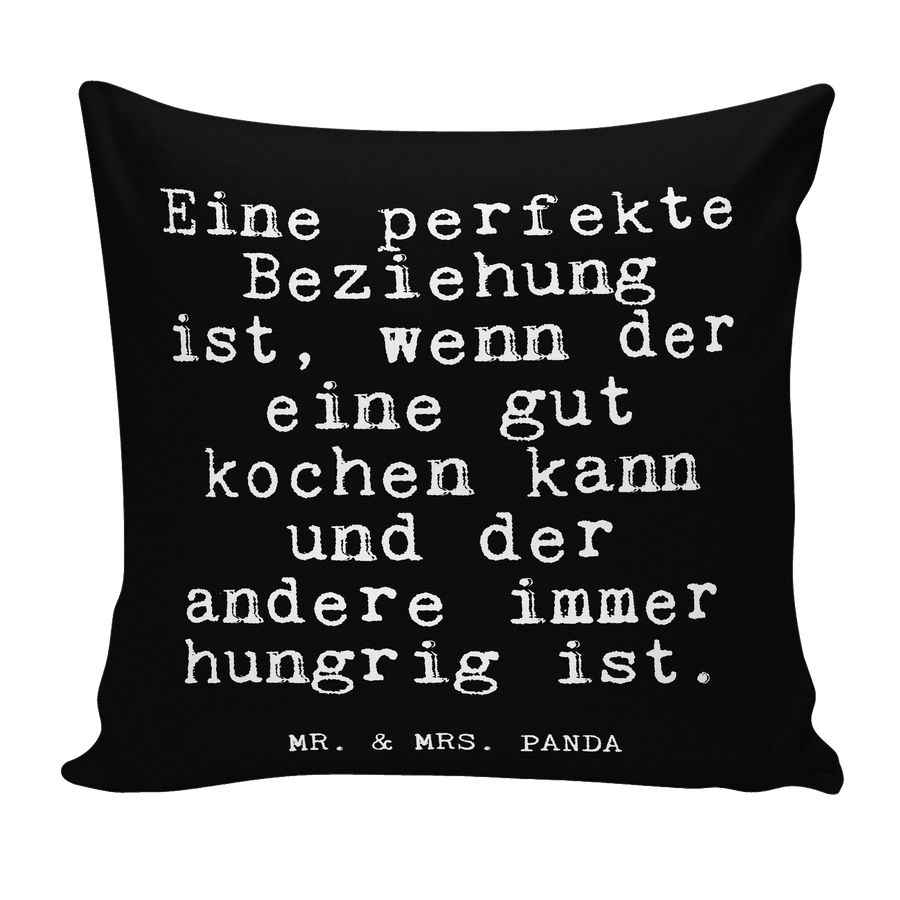 40x40 Kissen Fun Talk Eine perfekte Beziehung ist, wenn der eine gut kochen kann und der andere immer hungrig ist.