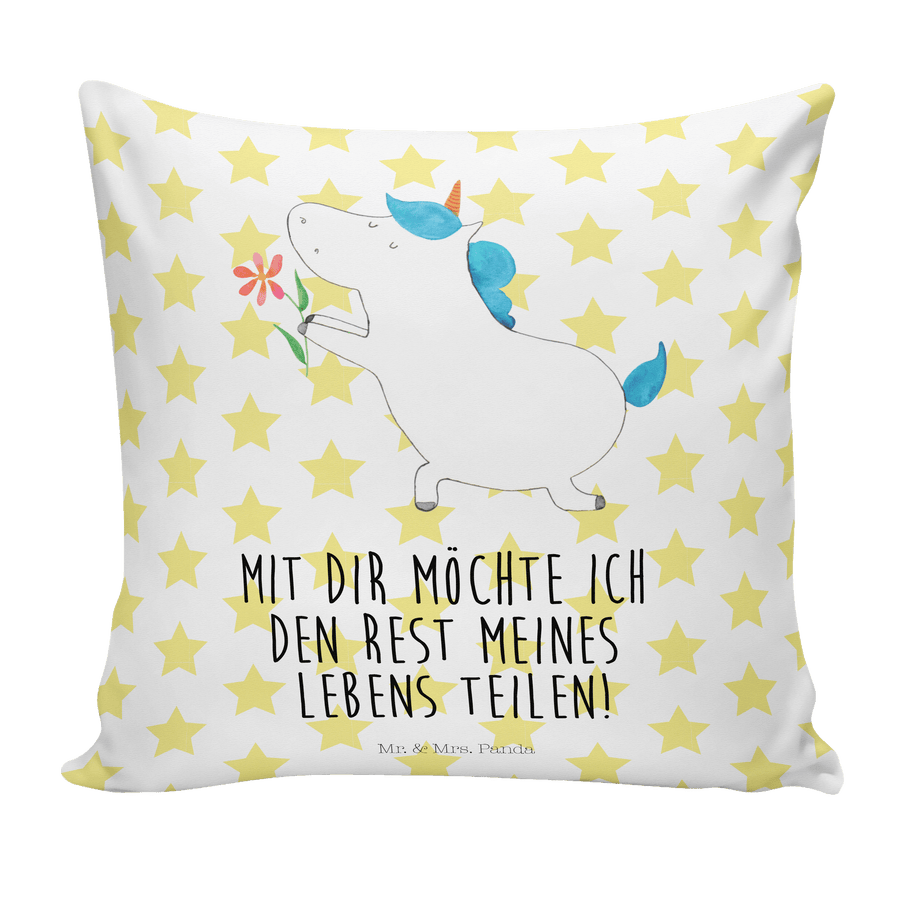 40x40 Kissen Einhorn Blume - mit Spruch - Weiß