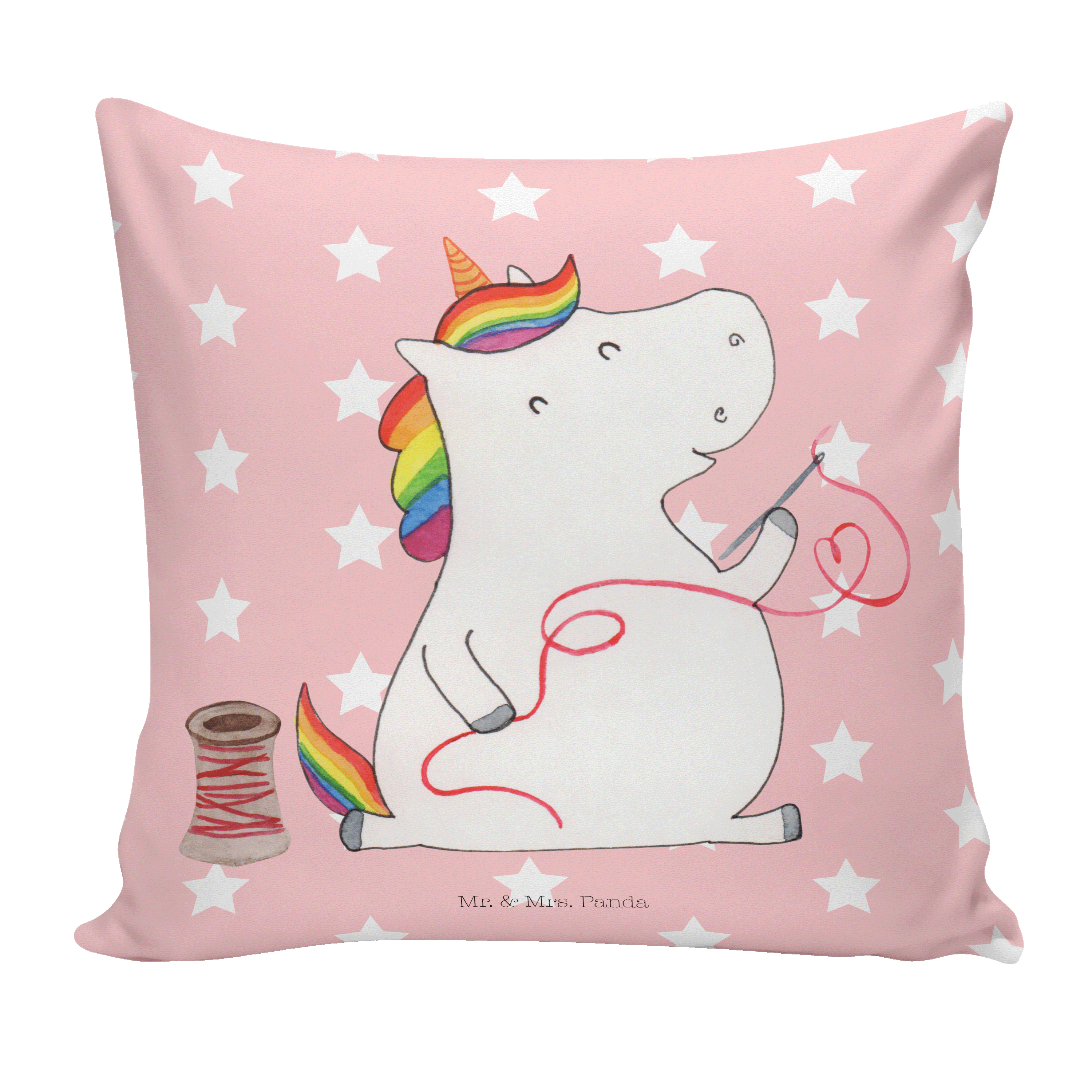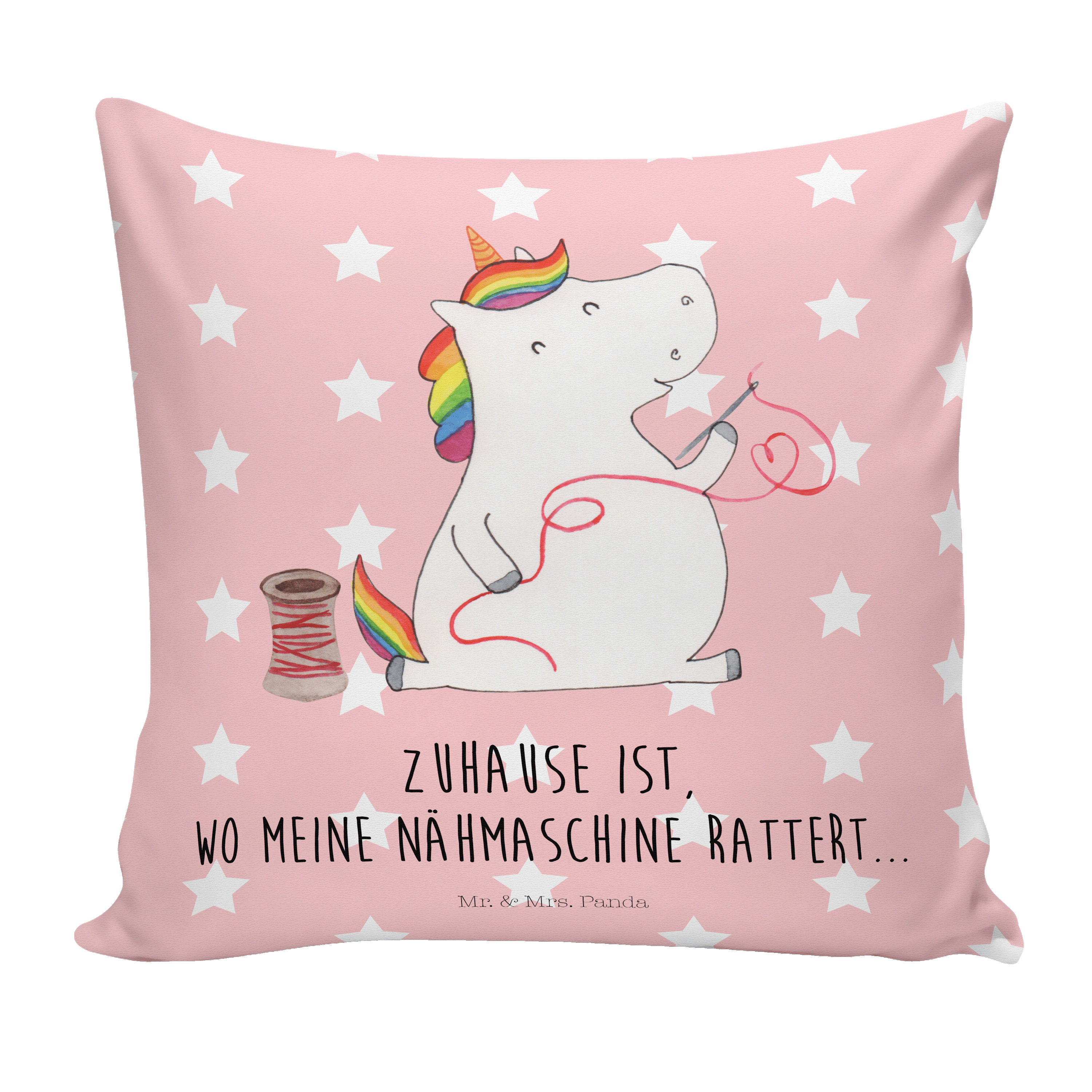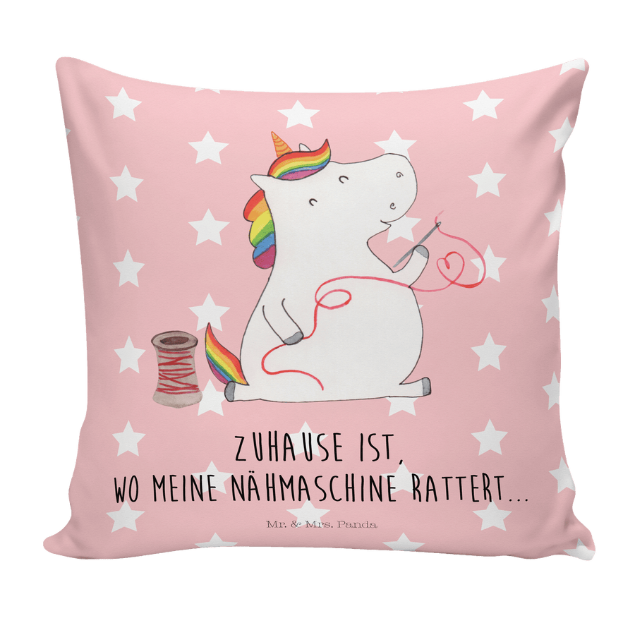 40x40 Kissen Einhorn Näherin - mit Spruch - Rot Pastell