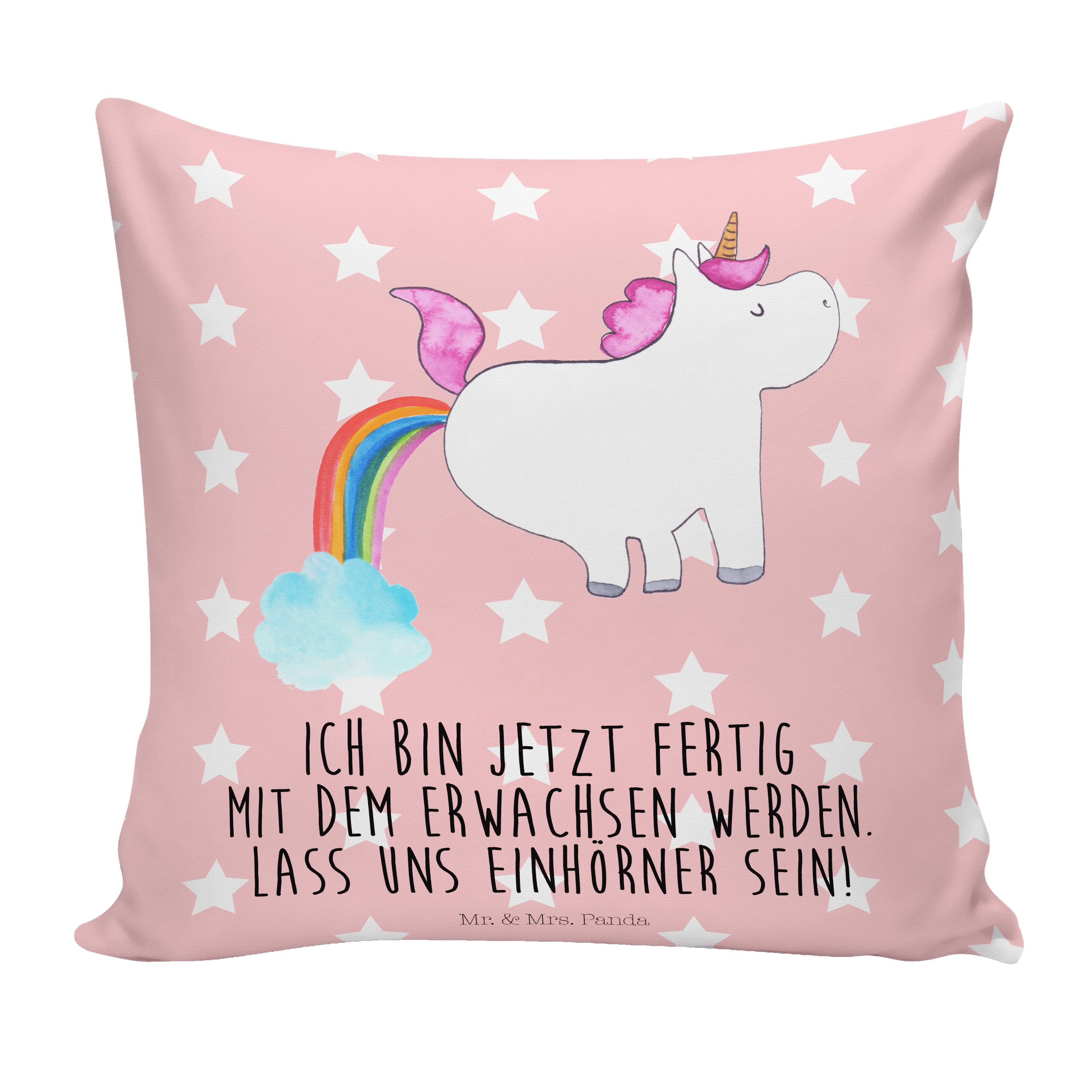 40x40 Kissen Einhorn Pupsend - mit Spruch - Rot Pastell