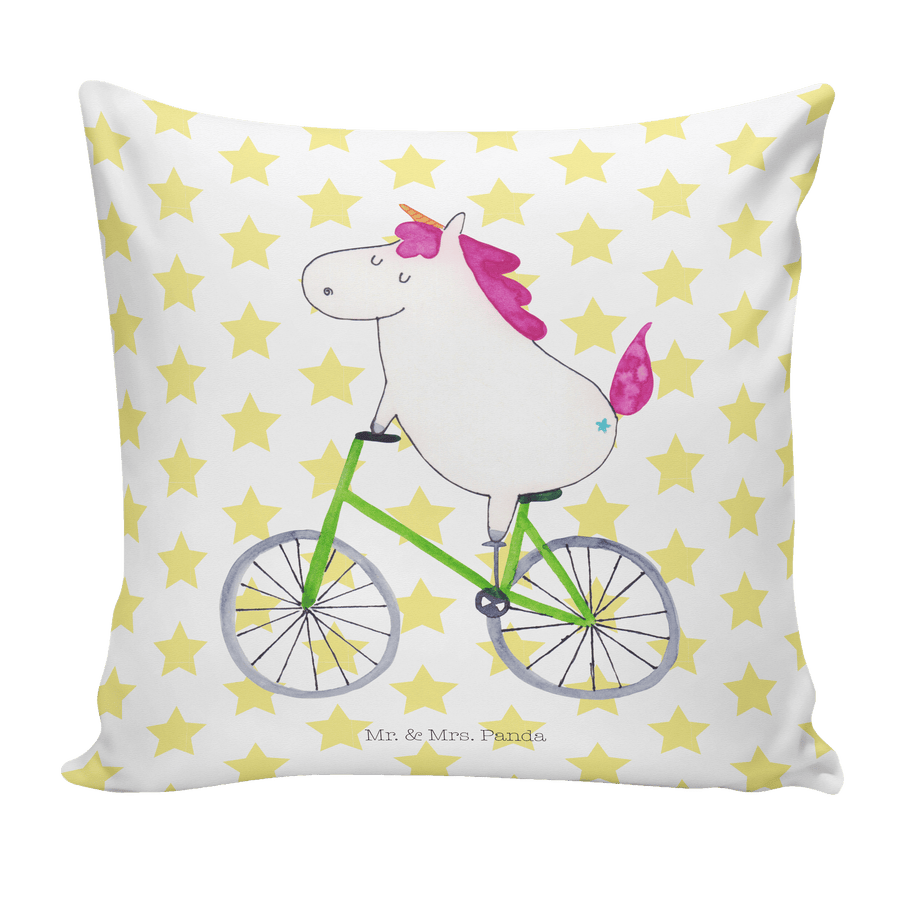 40x40 Kissen Einhorn Radfahrer - ohne Spruch - Weiß