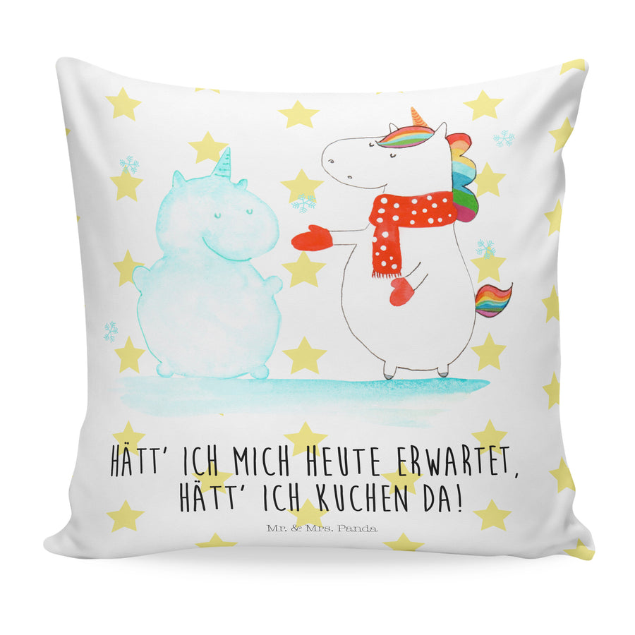 40x40 Kissen Einhorn Schneemann - mit Spruch - Weiß