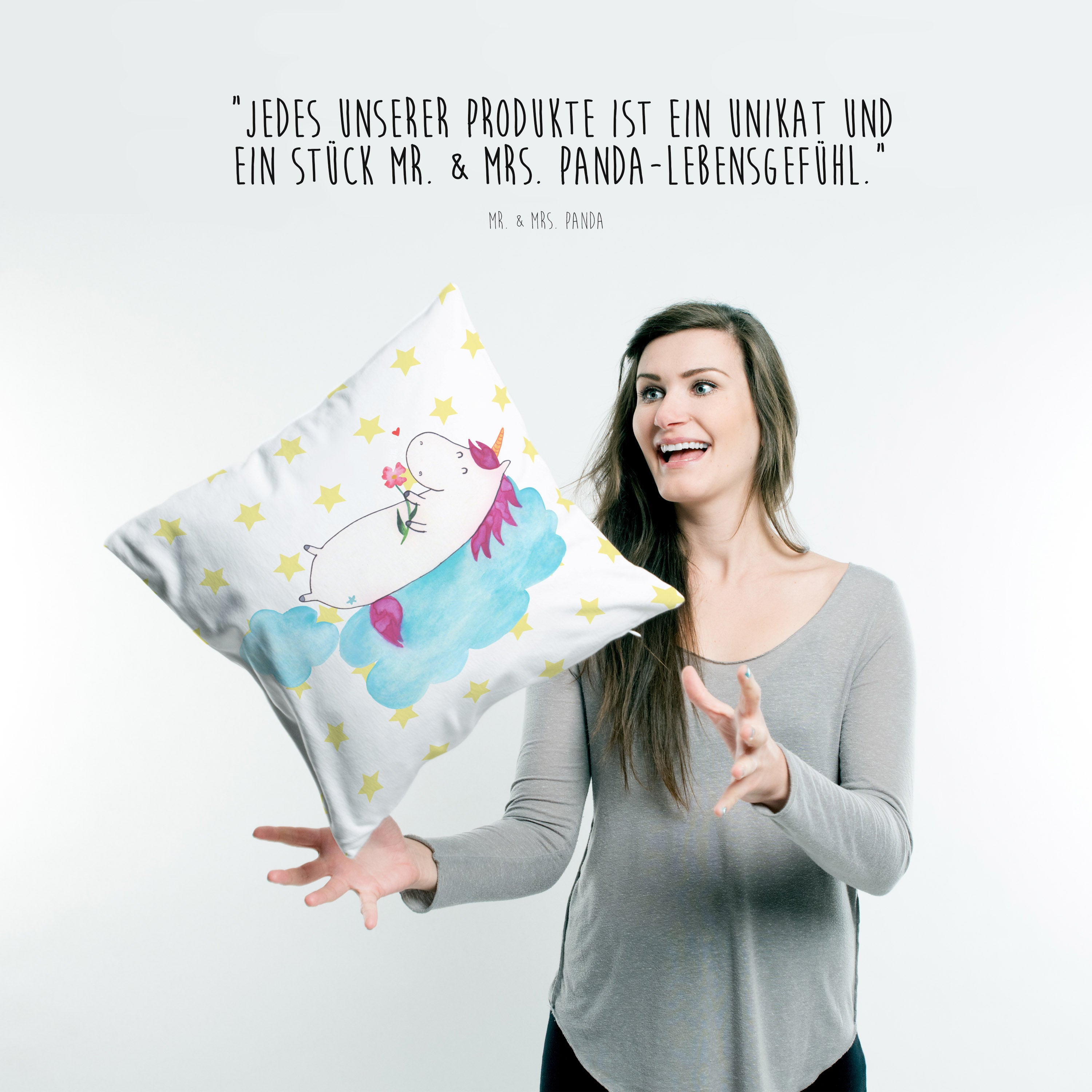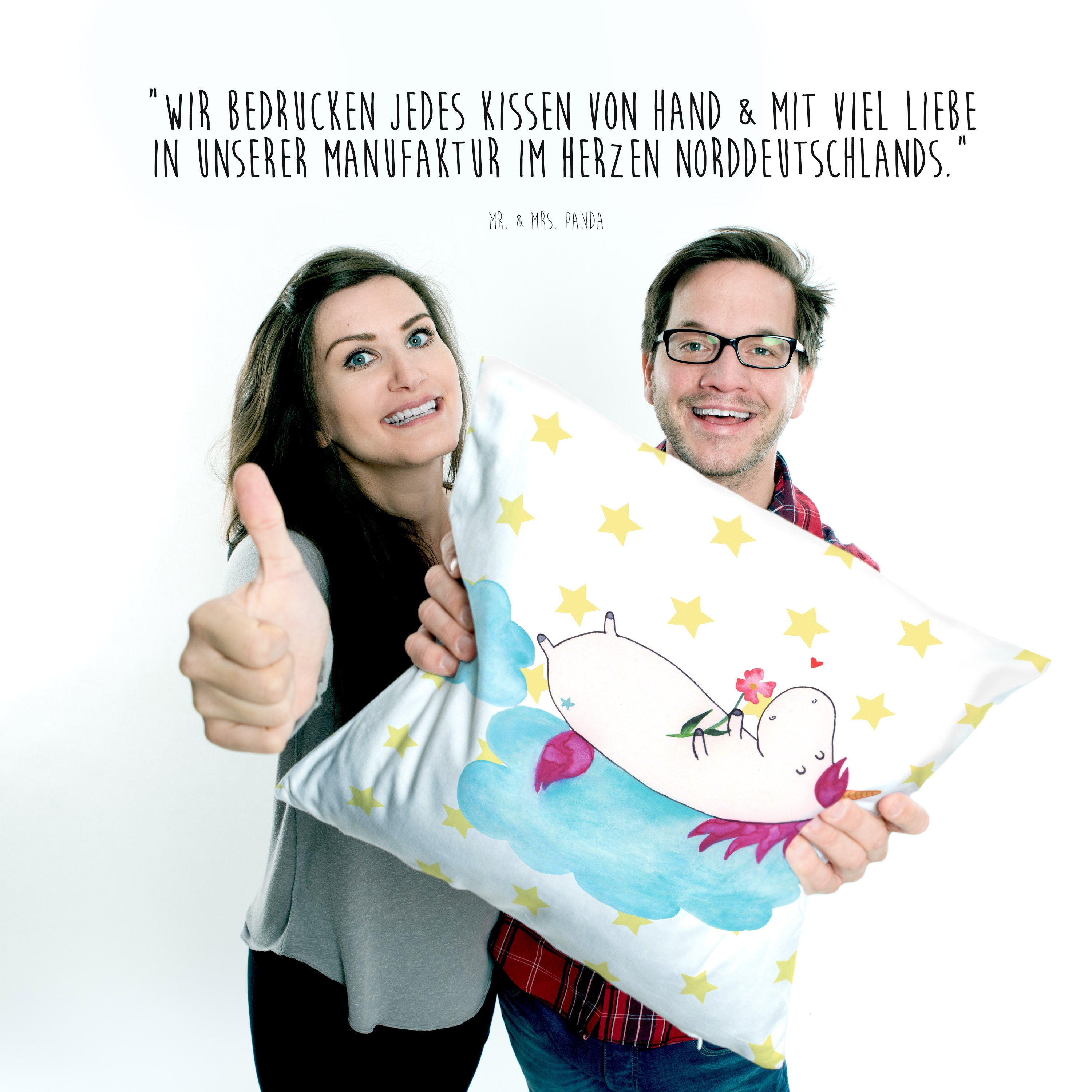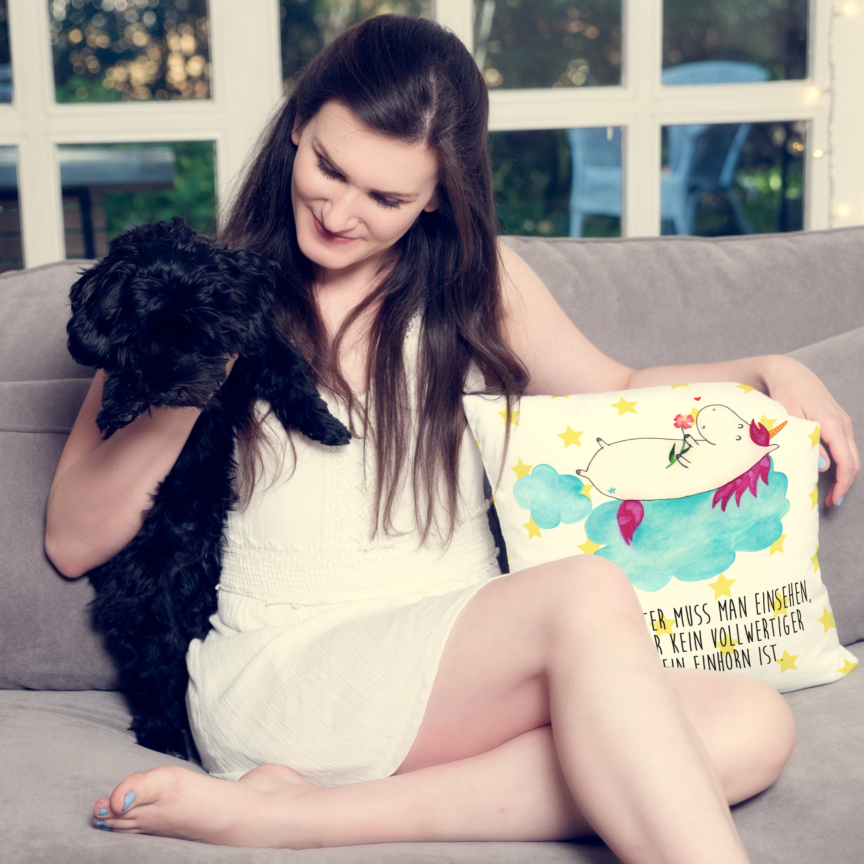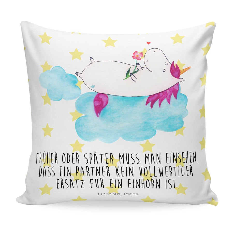 40x40 Kissen Einhorn verliebt auf Wolke - mit Spruch - Weiß