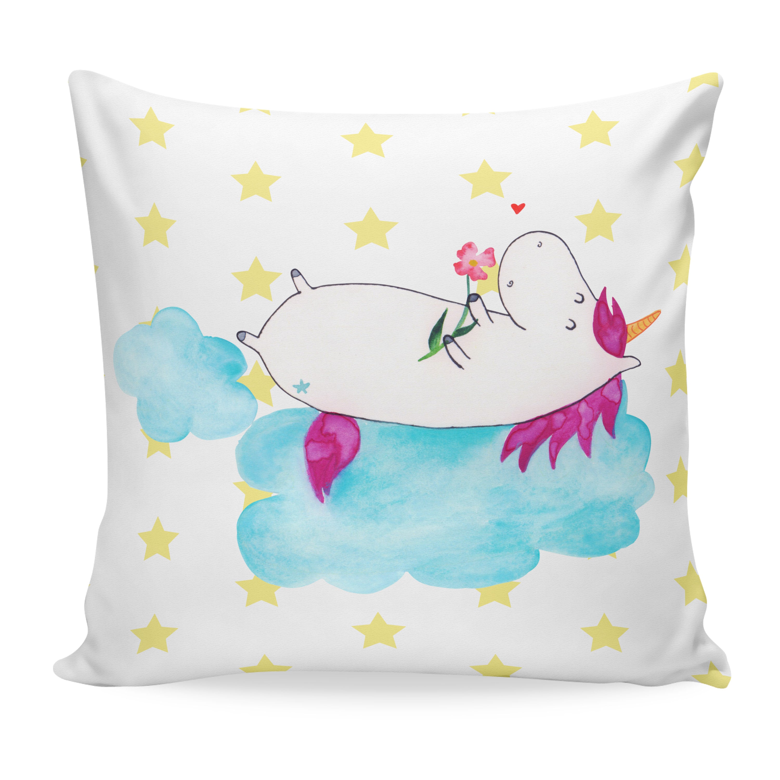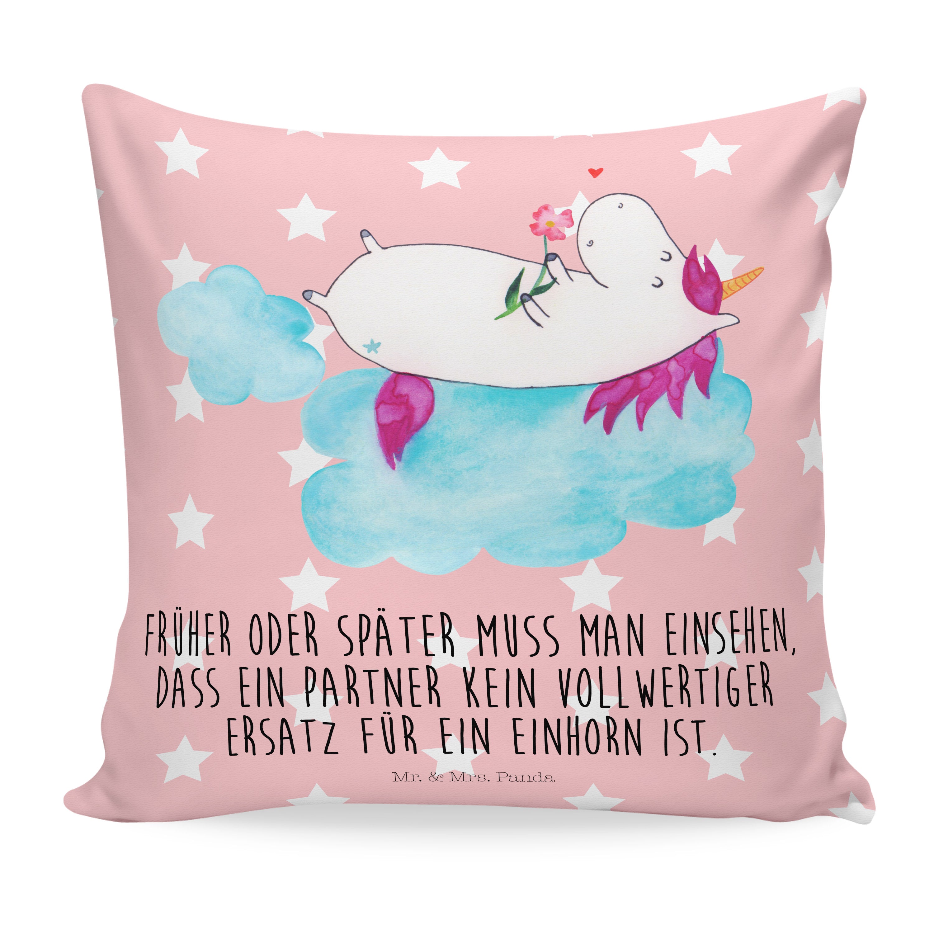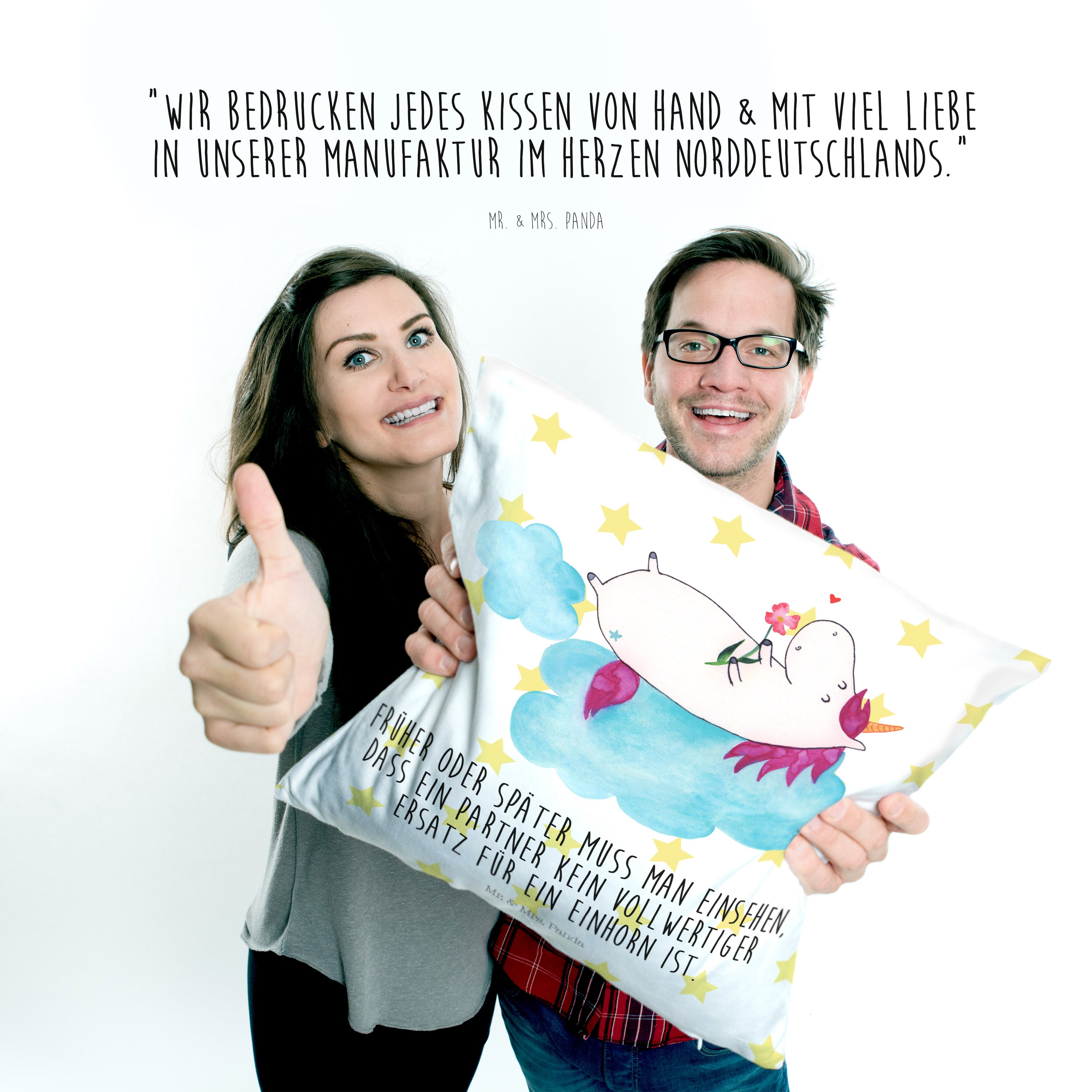 40x40 Kissen Einhorn verliebt auf Wolke - mit Spruch - Weiß