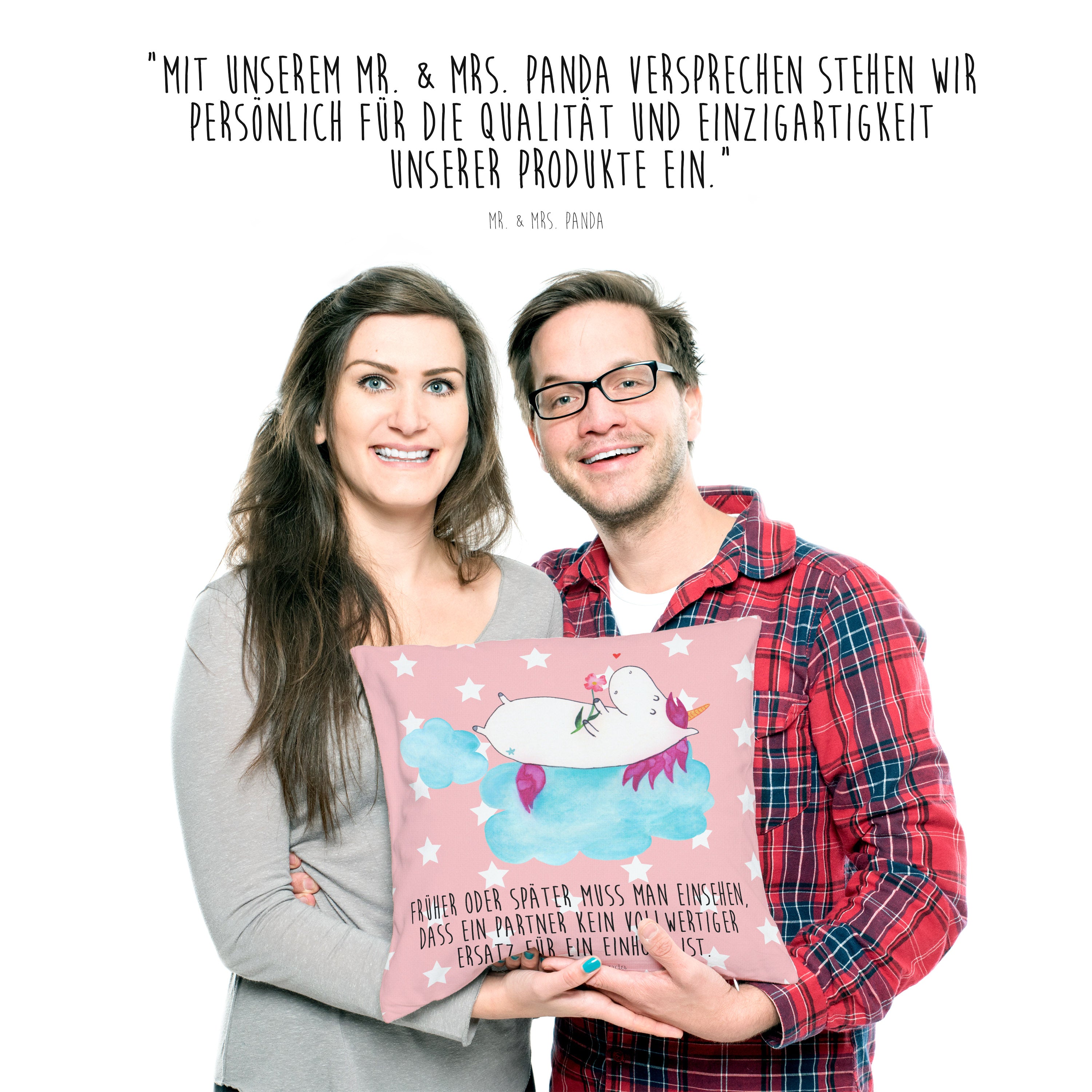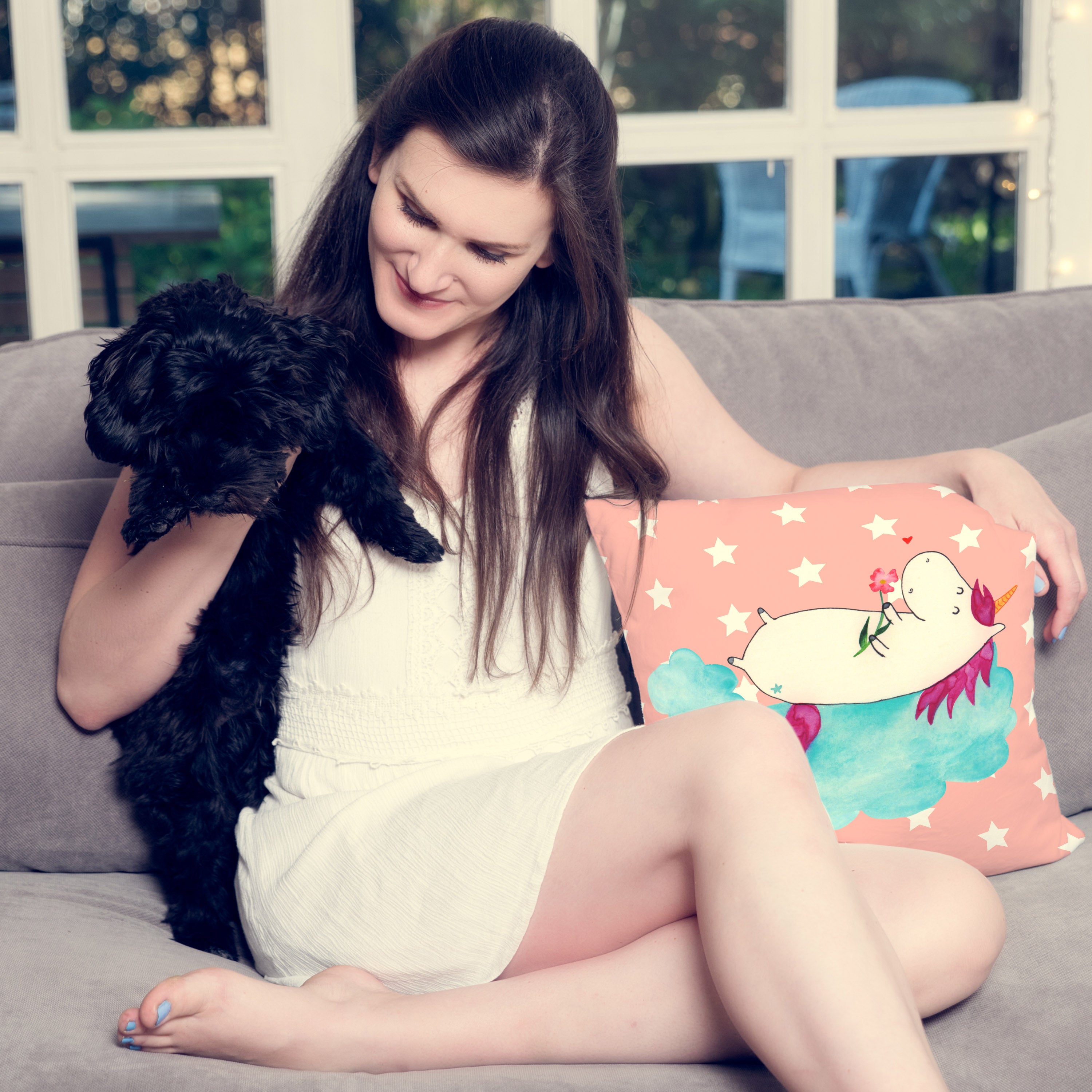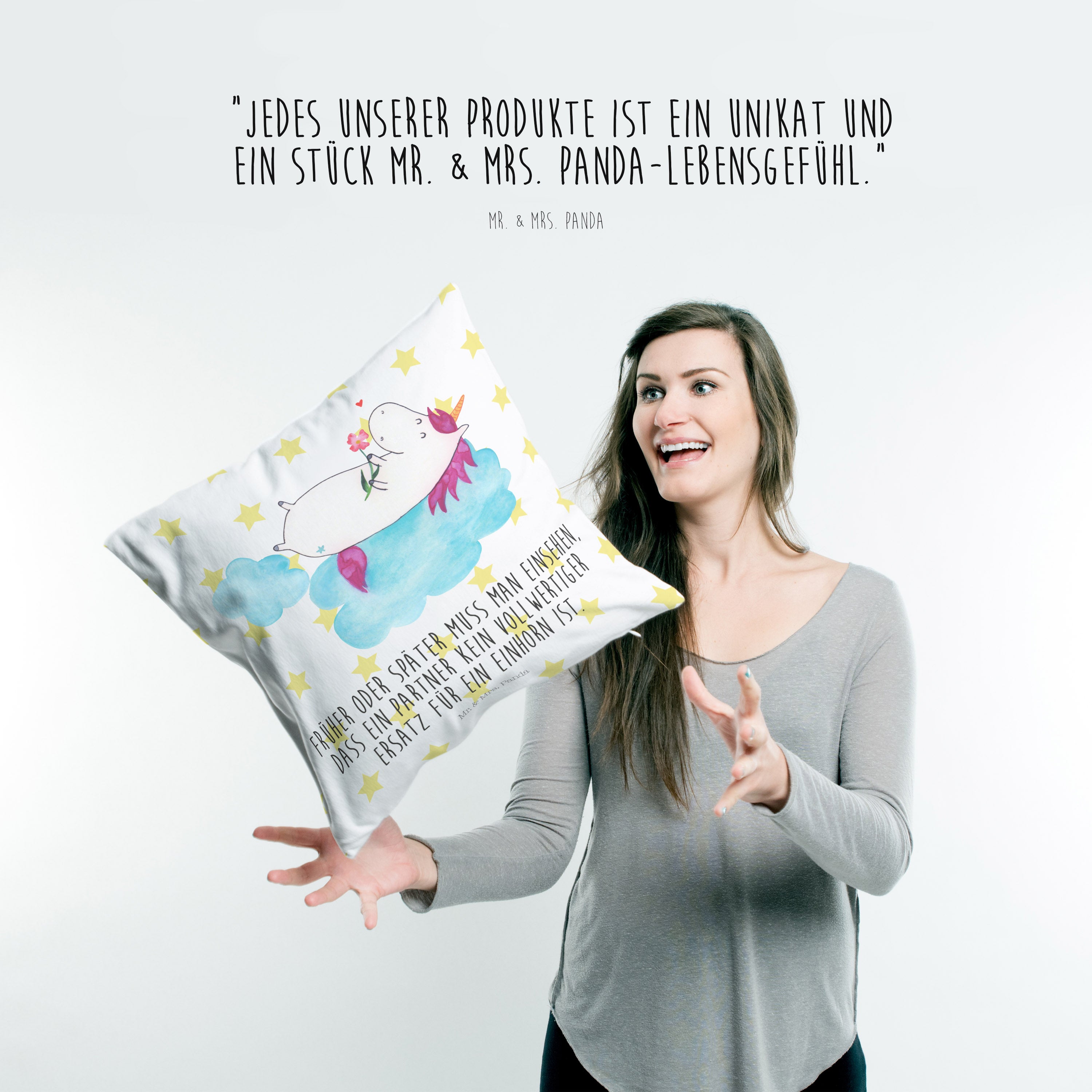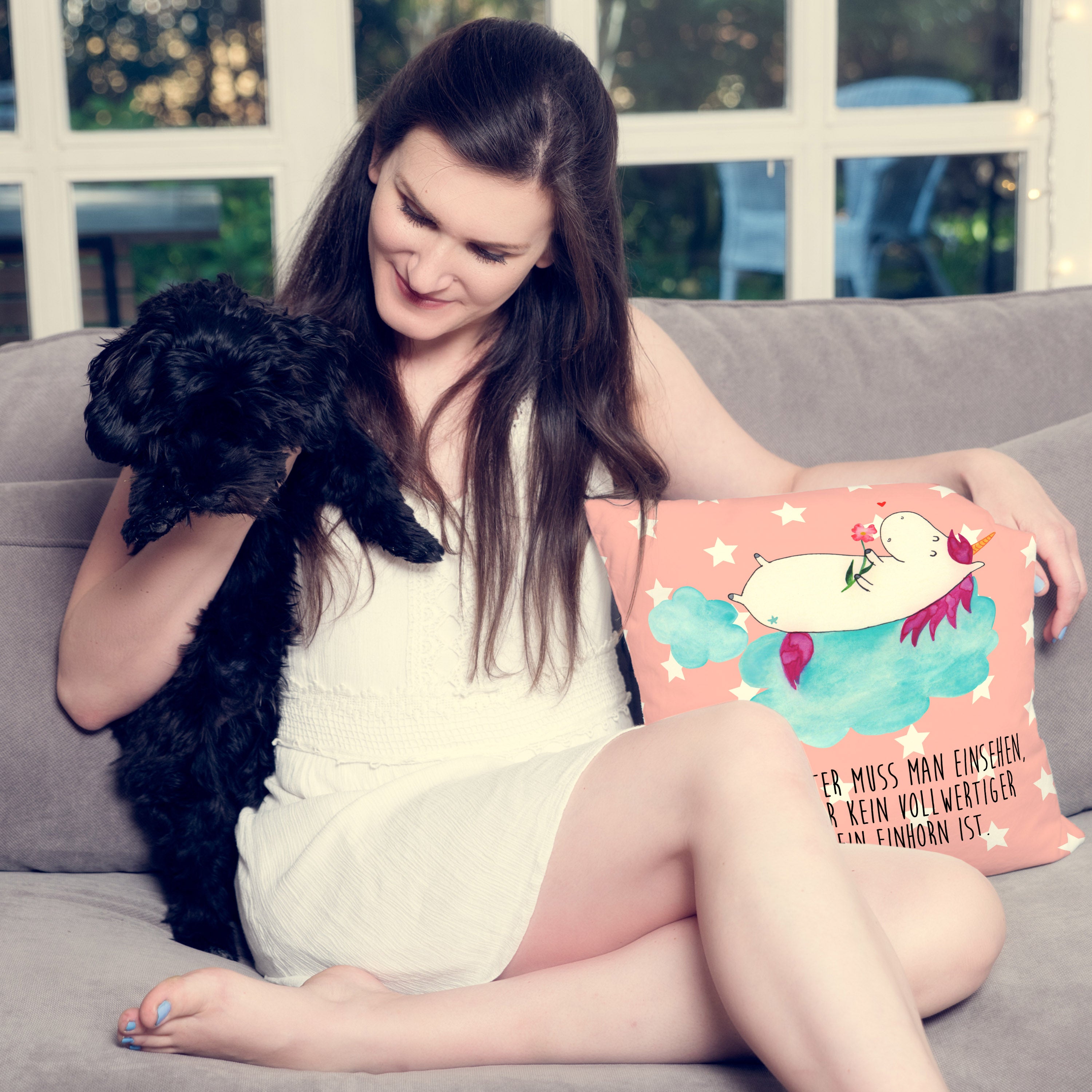 40x40 Kissen Einhorn verliebt auf Wolke - mit Spruch - Weiß