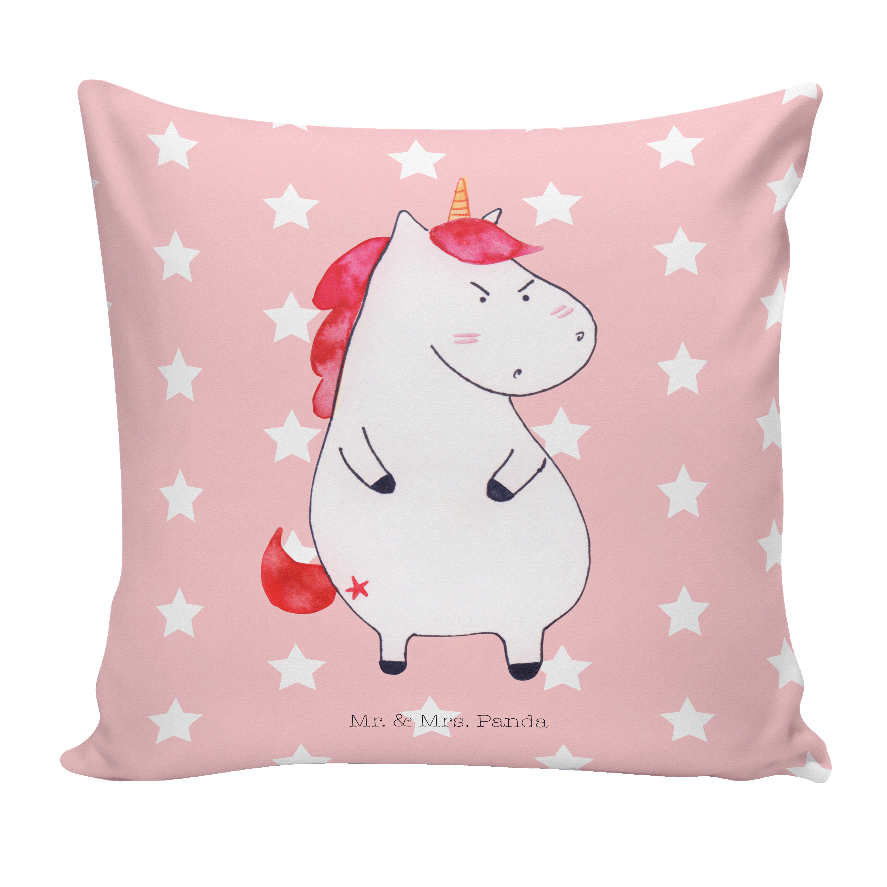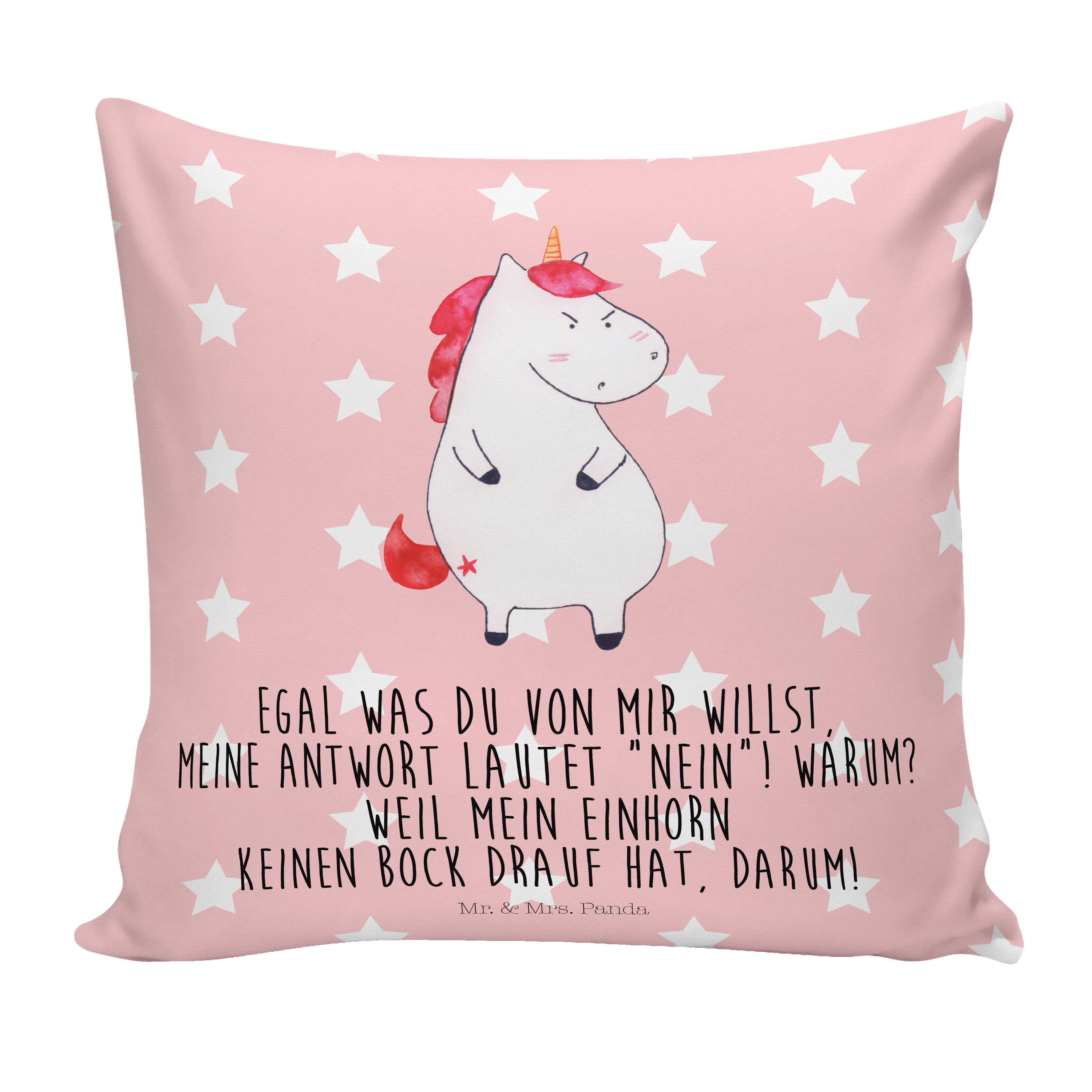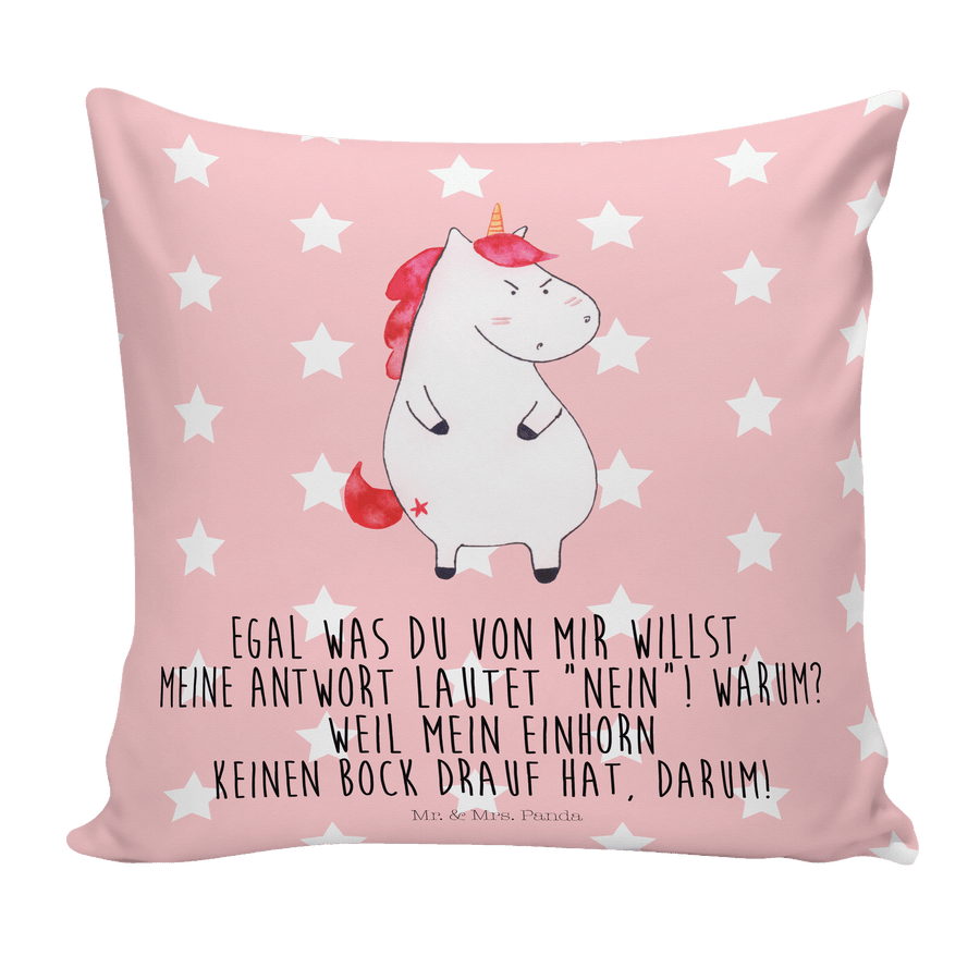 40x40 Kissen Einhorn wütend - mit Spruch - Rot Pastell