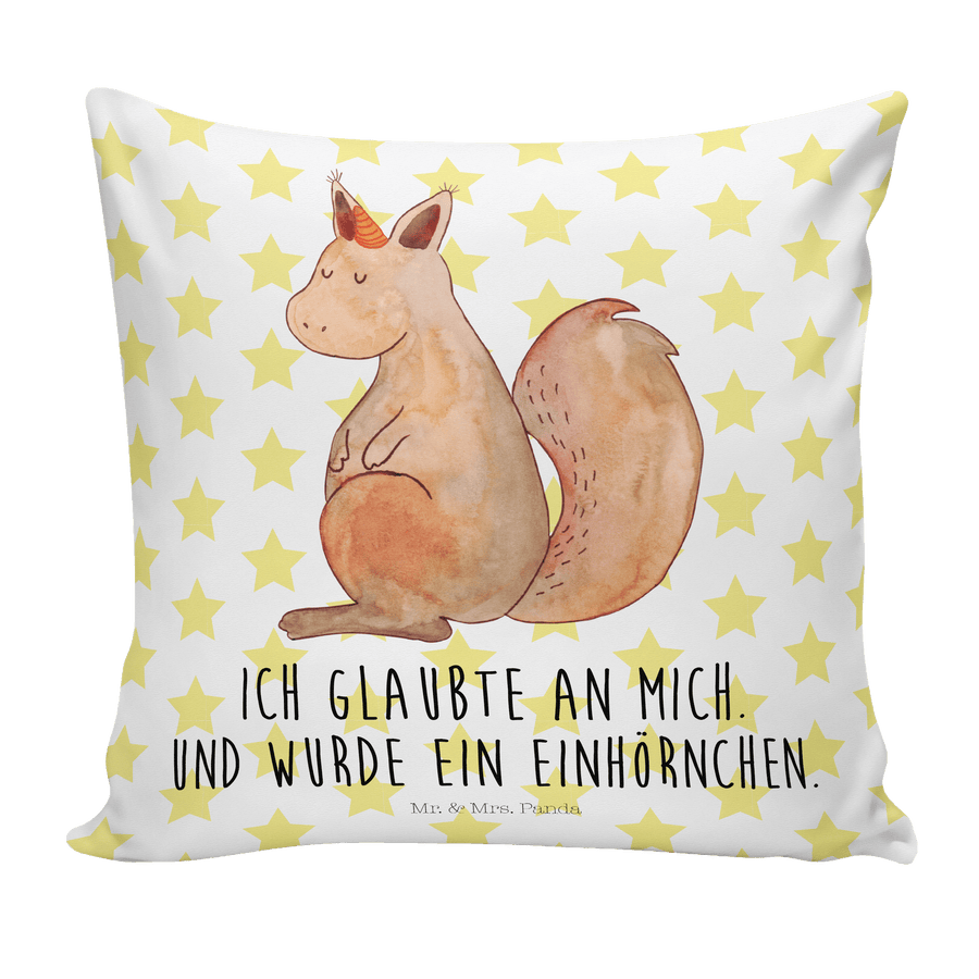 40x40 Kissen Einhörnchen Glaube - mit Spruch - Weiß