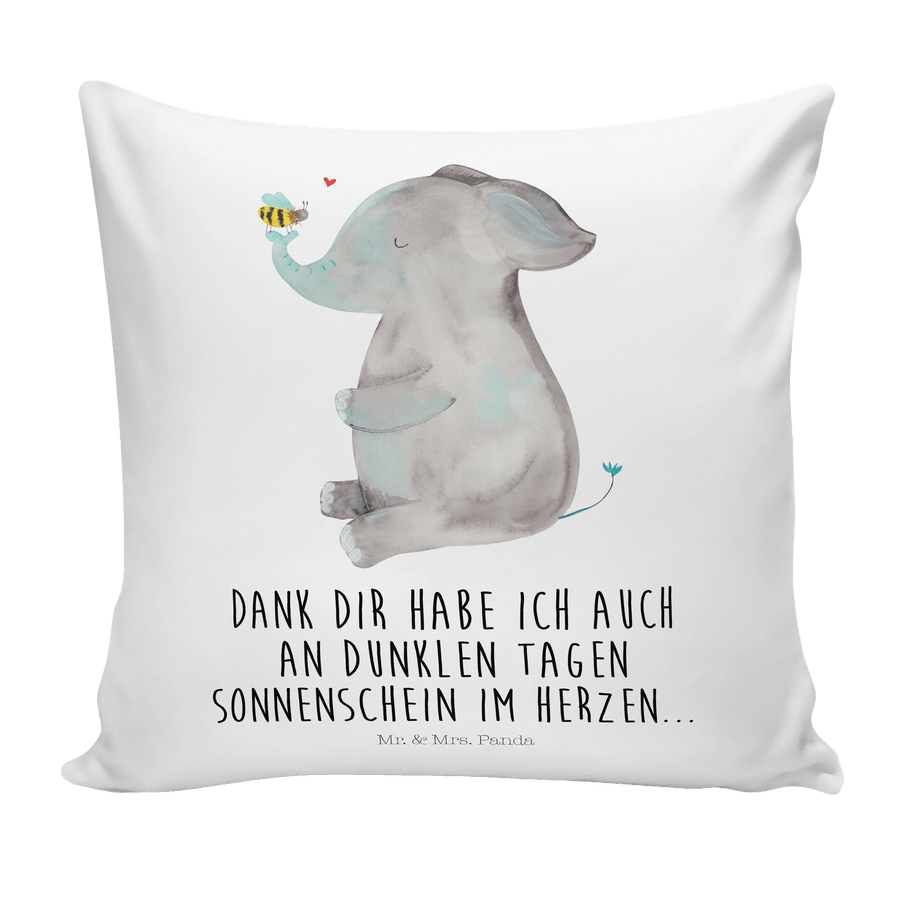 40x40 Kissen Elefant & Biene - mit Spruch - Weiß