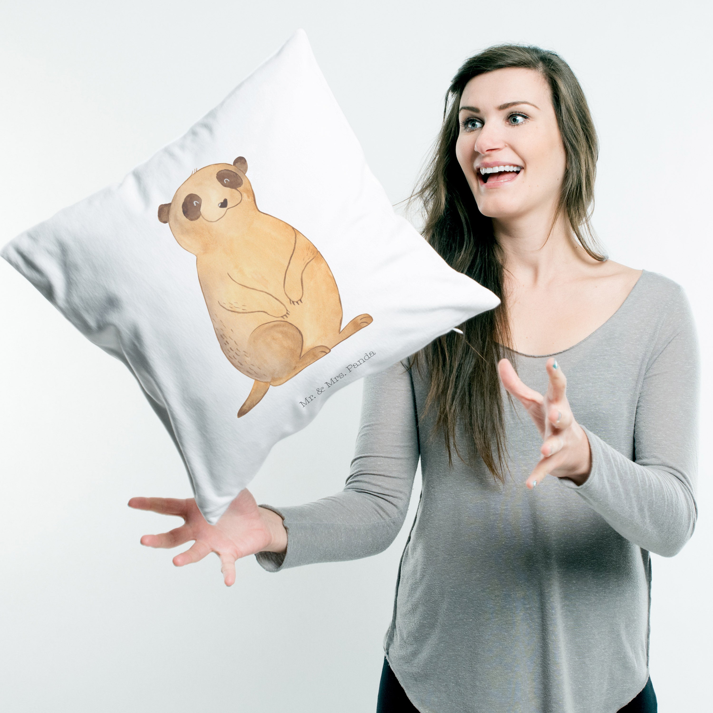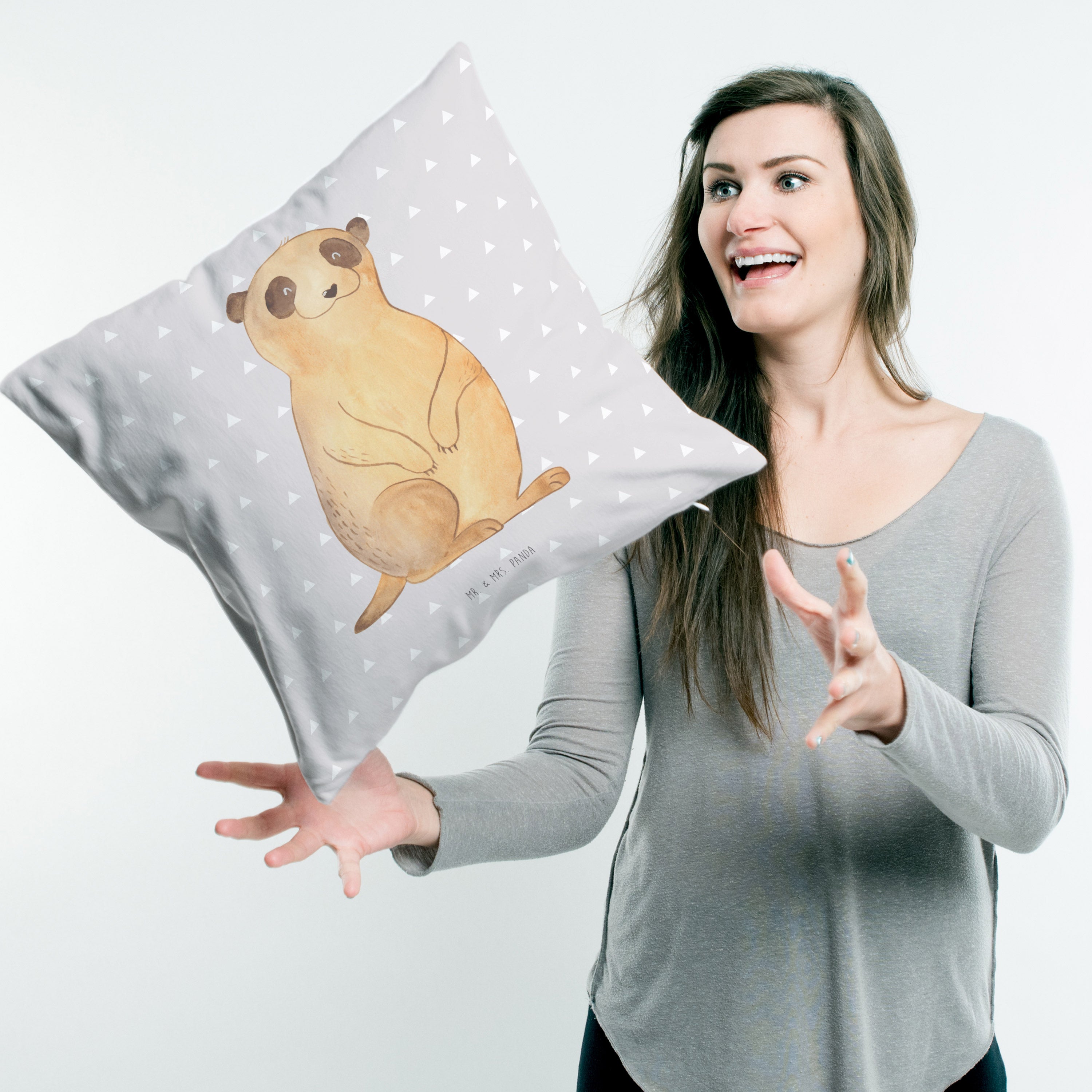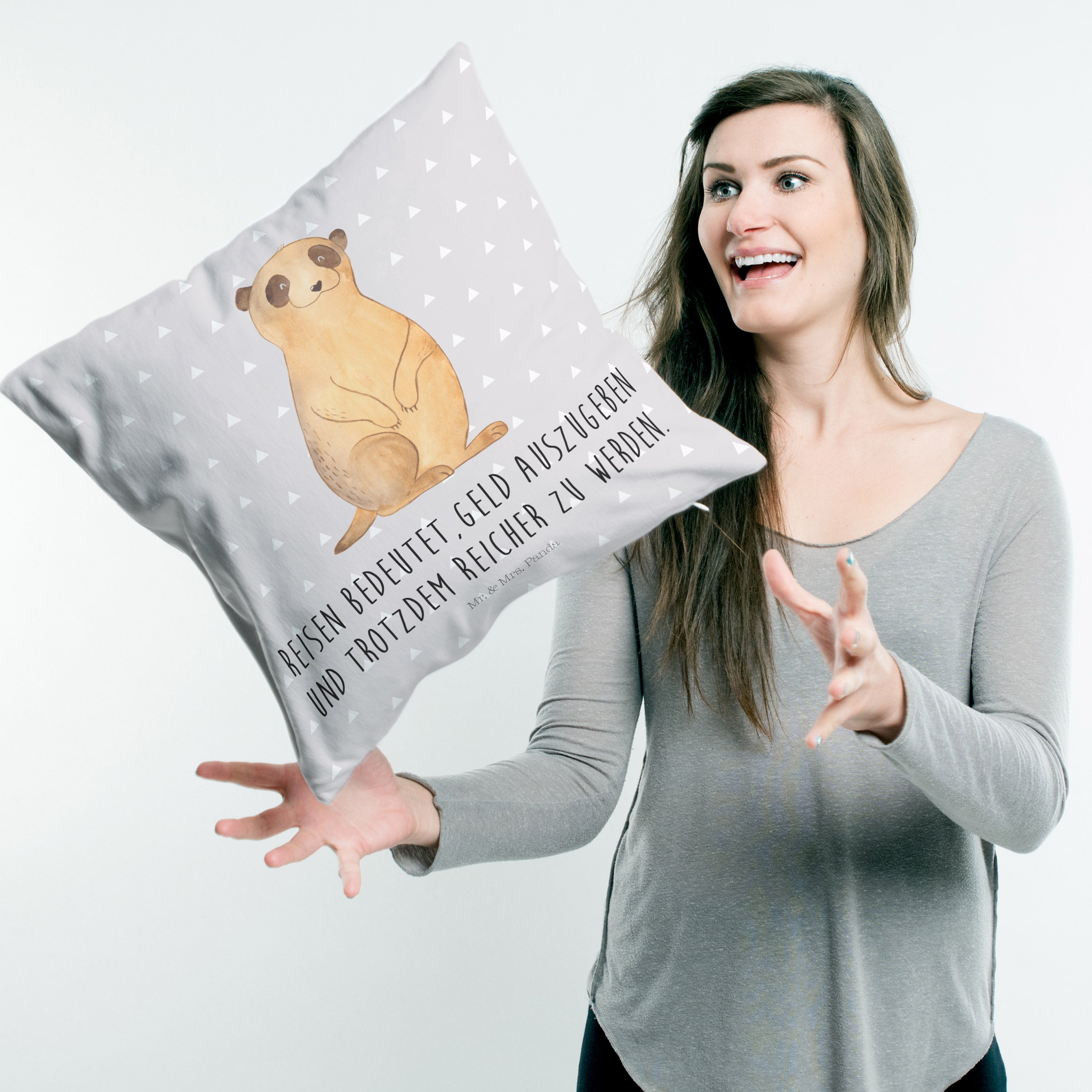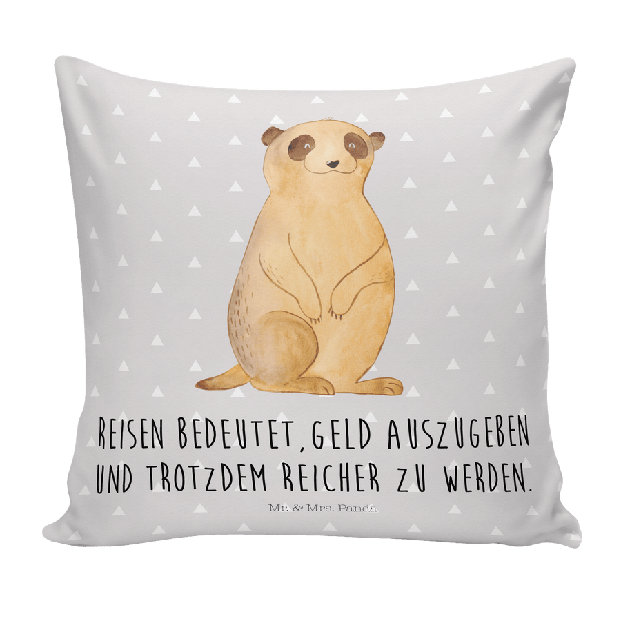 40x40 Kissen Erdmännchen - mit Spruch - Grau Pastell