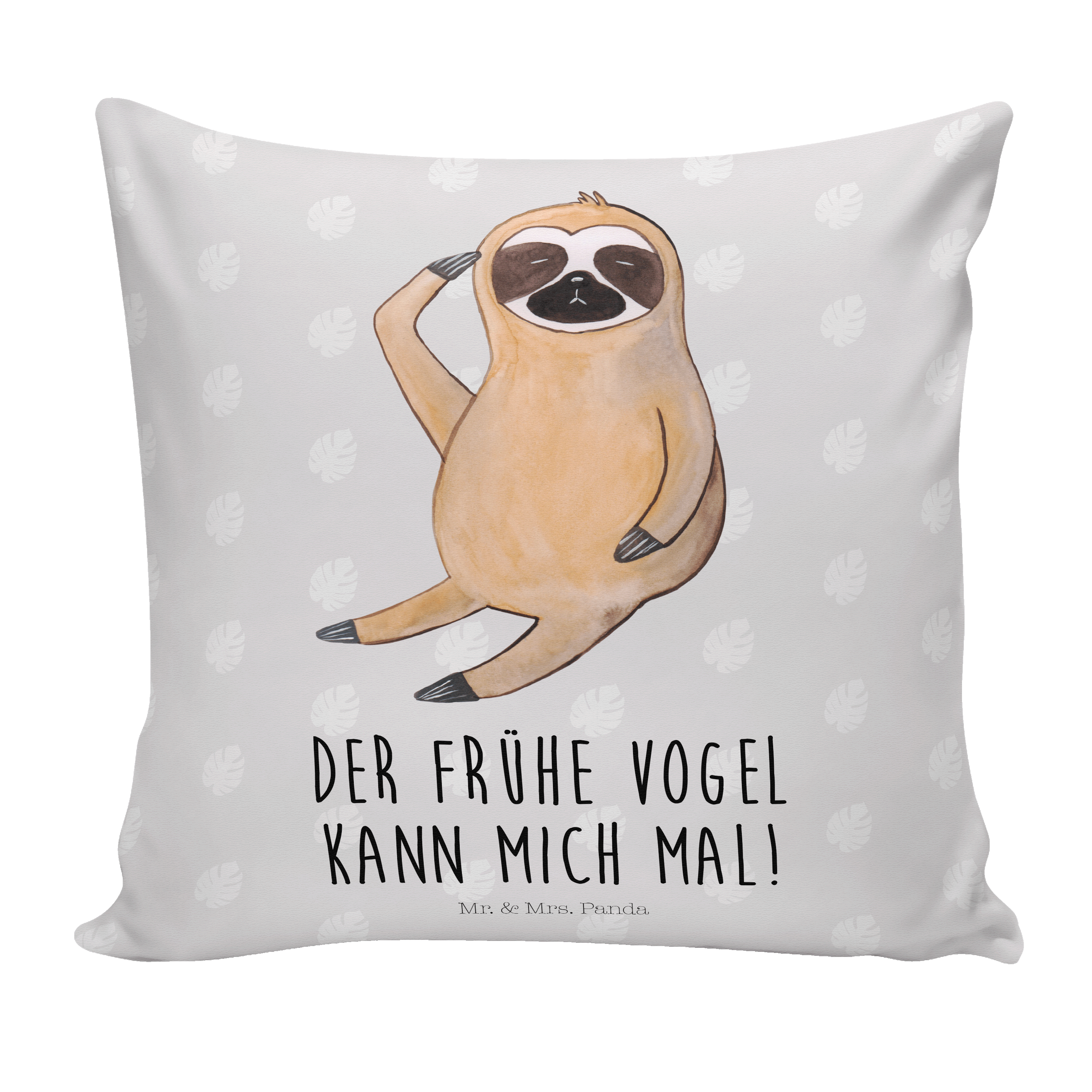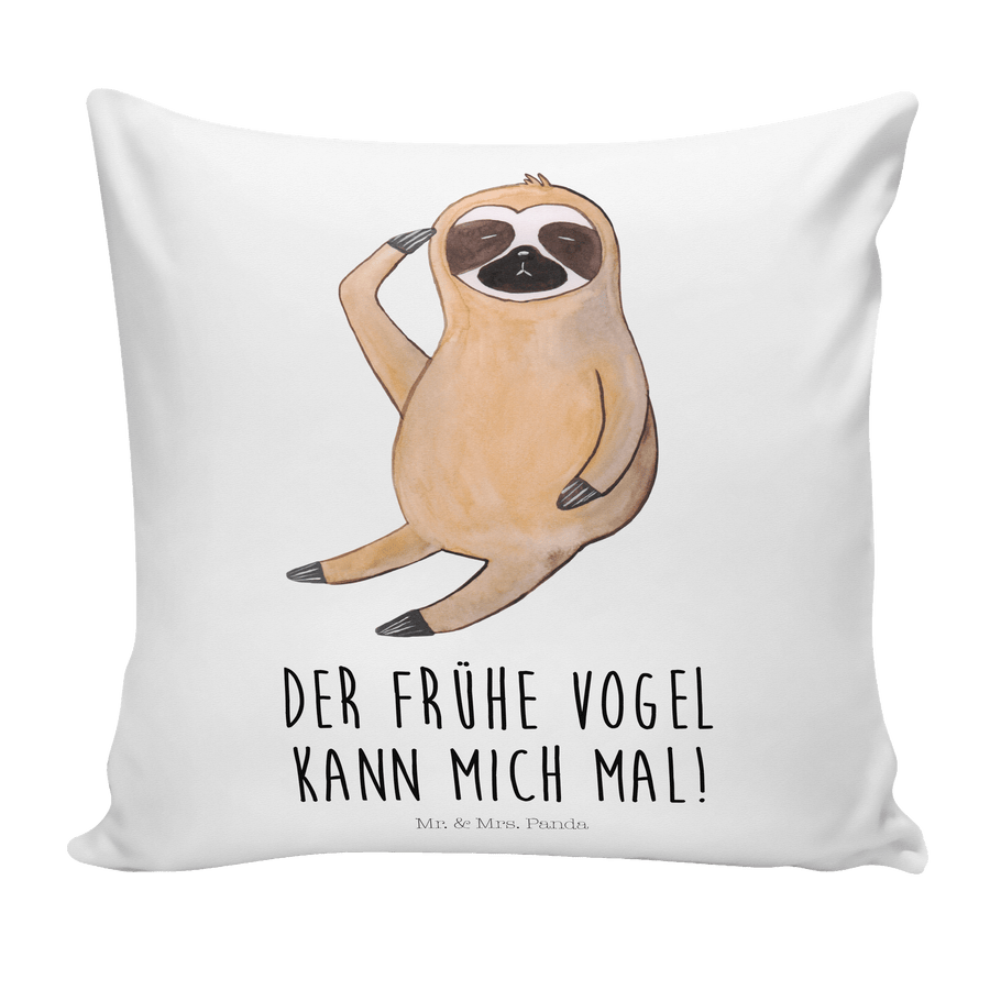 40x40 Kissen Faultier Vogel zeigen - mit Spruch - Weiß