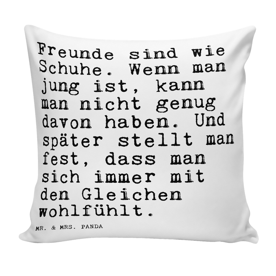 40x40 Kissen Sprüche und Zitate Freunde sind wie Schuhe. Wenn man jung ist, kann man nicht genug davon haben. Und später stellt man fest, dass man sich immer mit den Gleichen wohlfühlt.