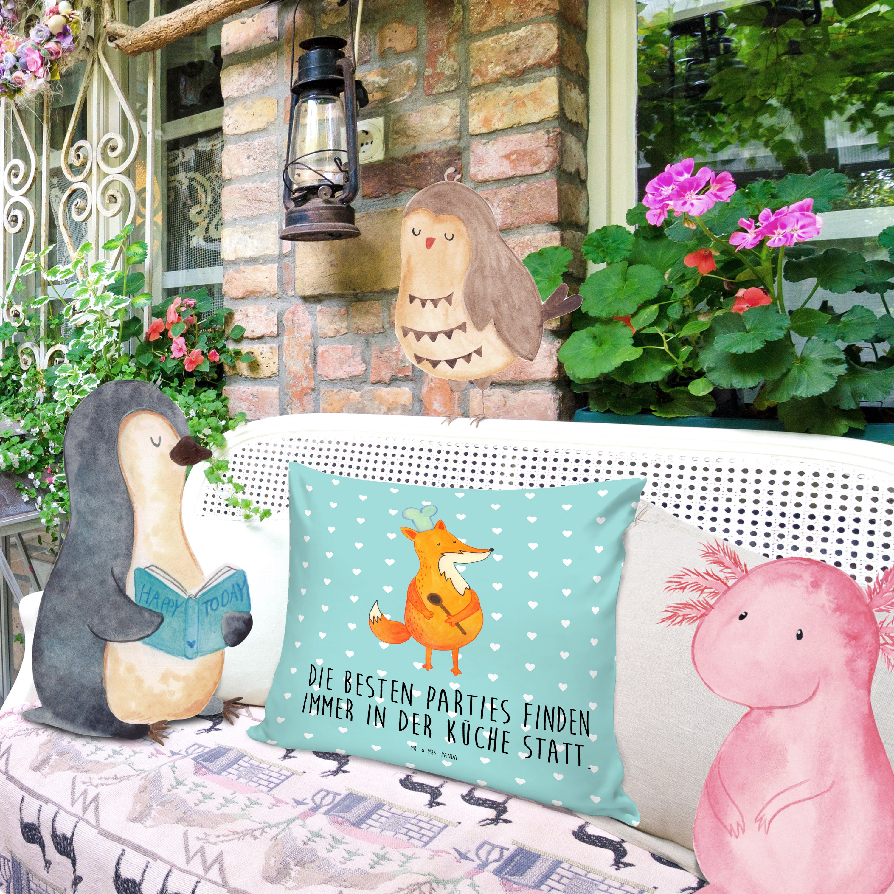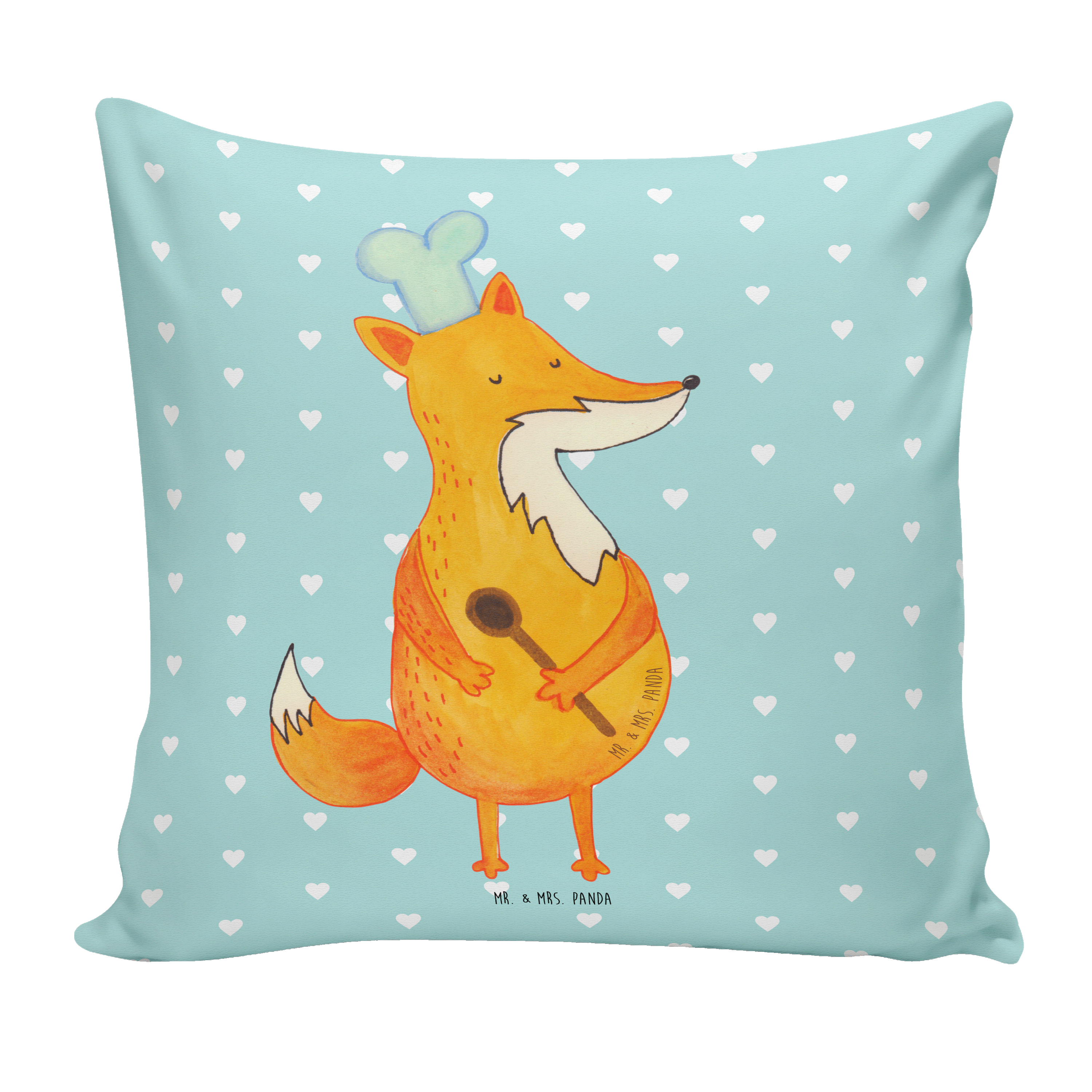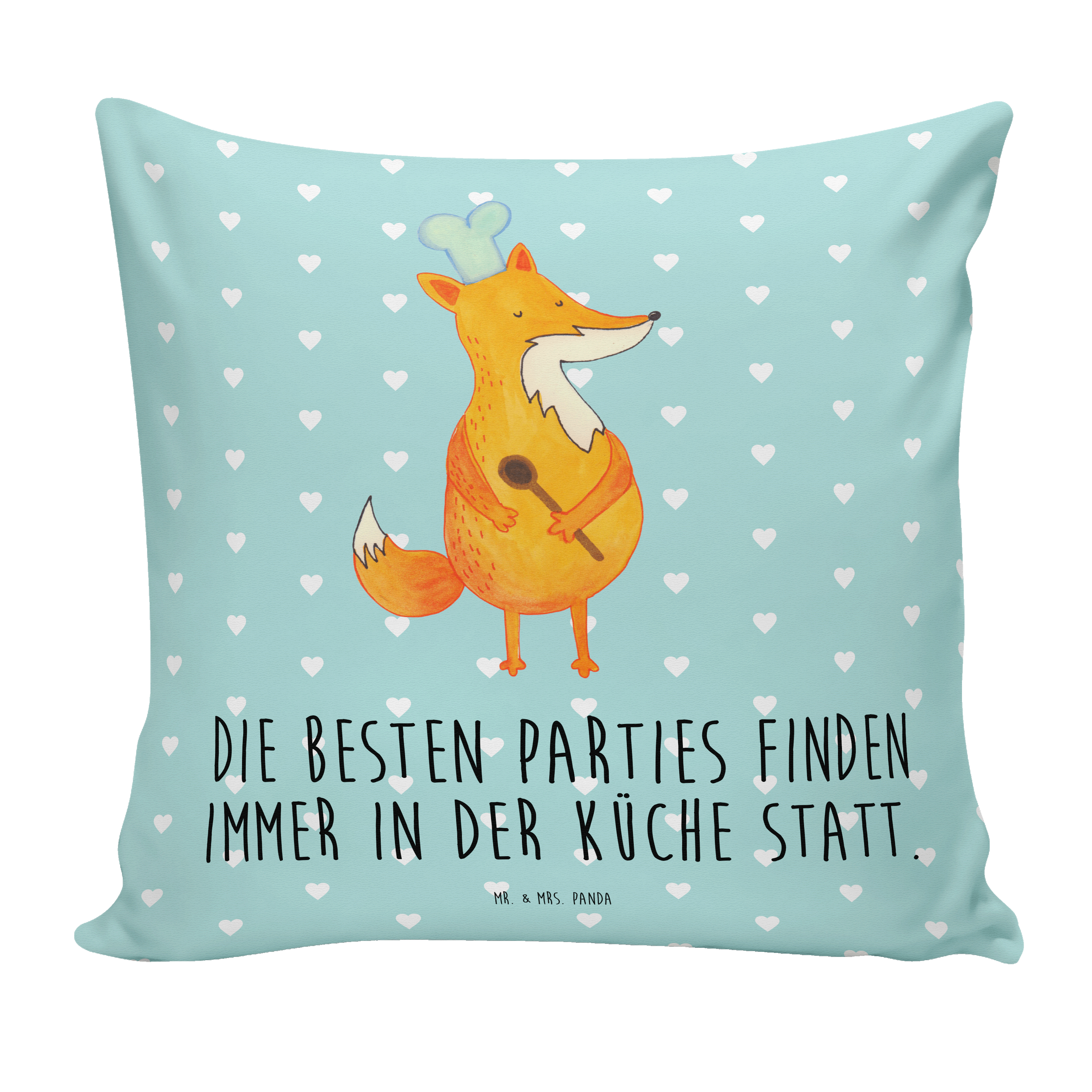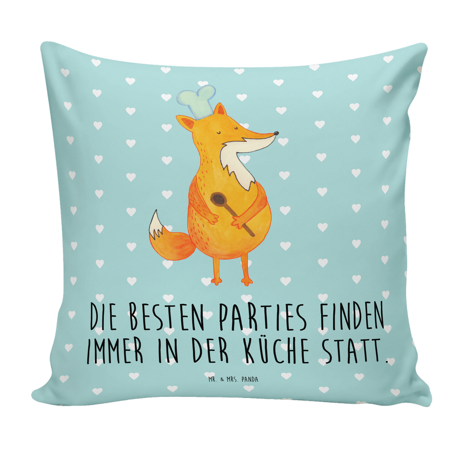40x40 Kissen Fuchs Koch - mit Spruch - Türkis Pastell