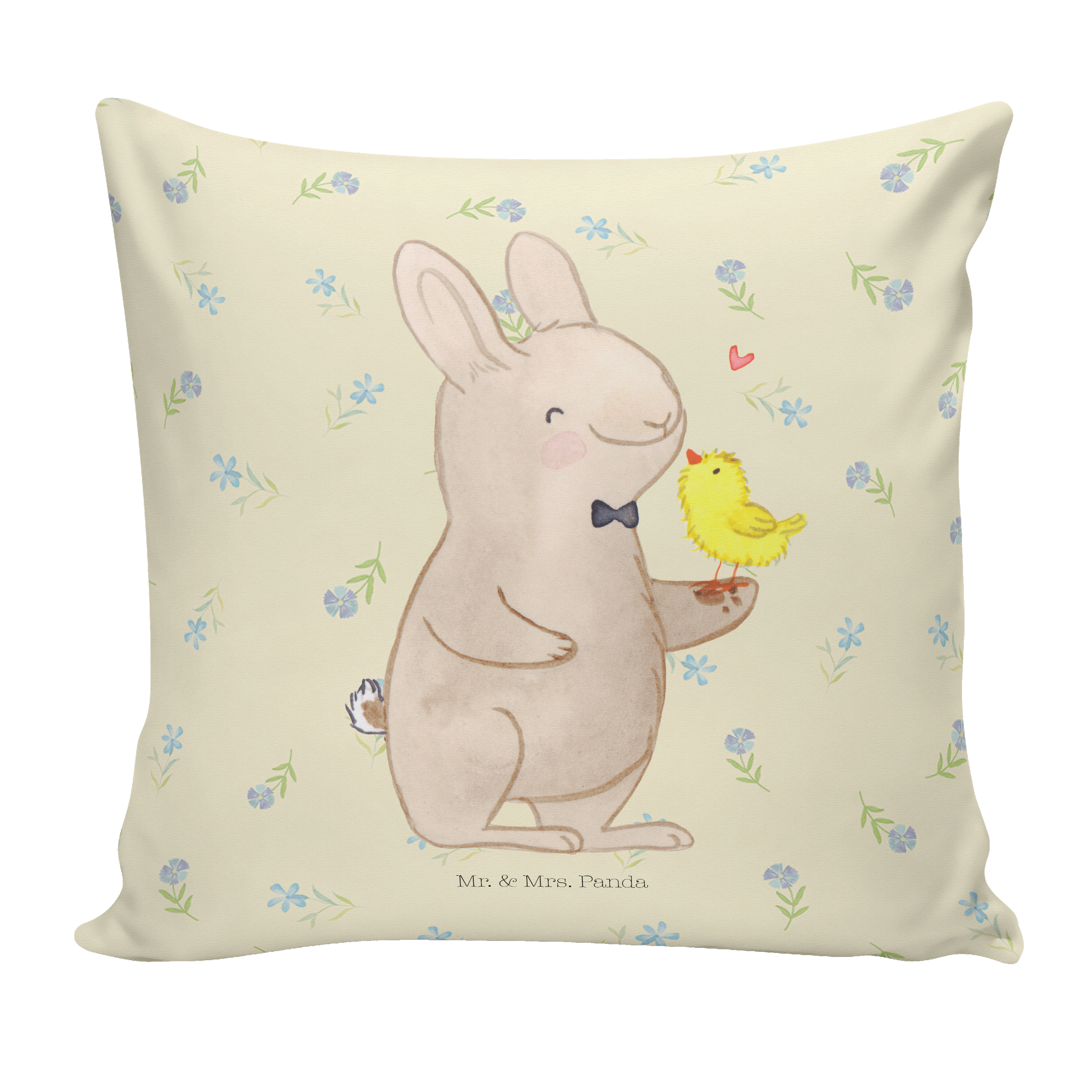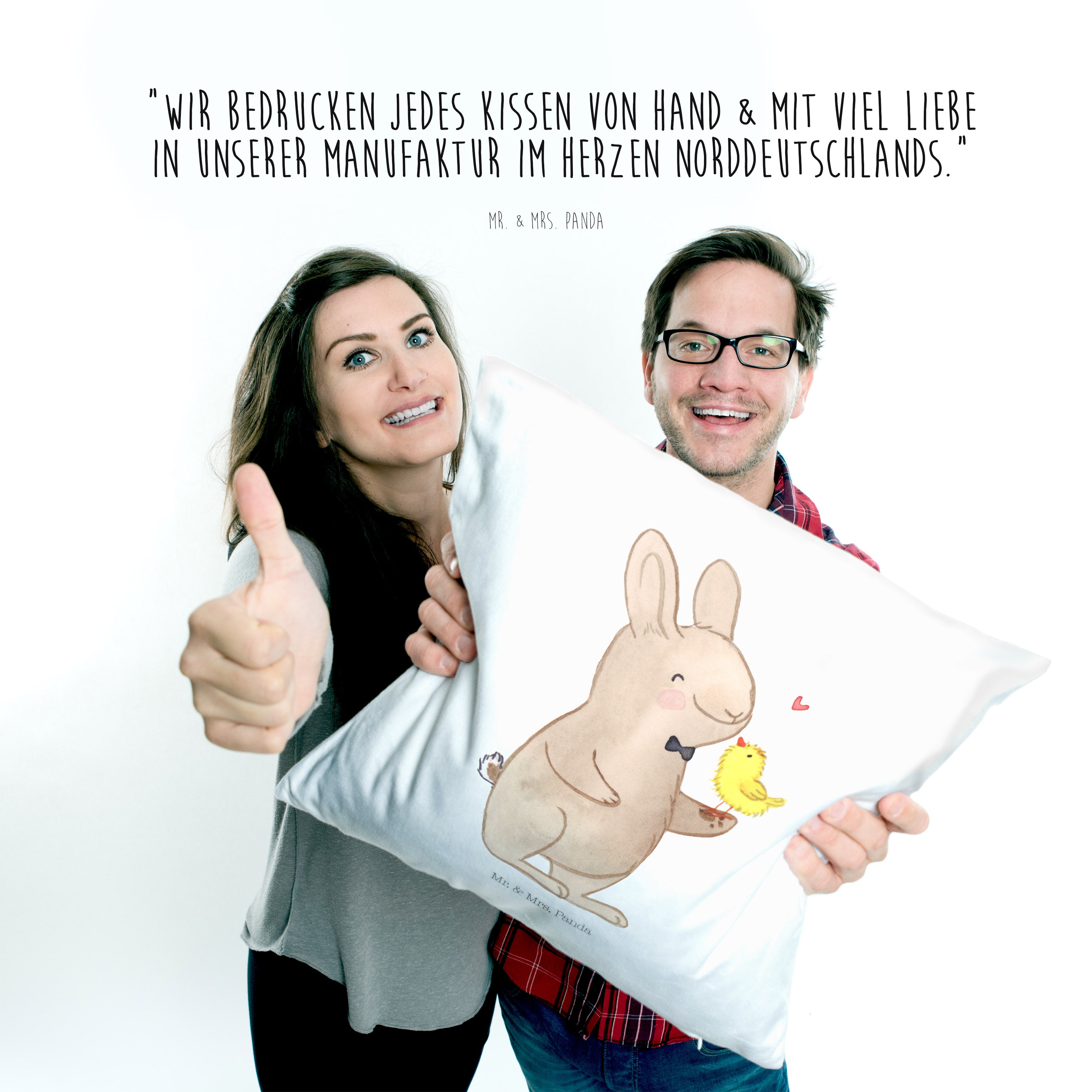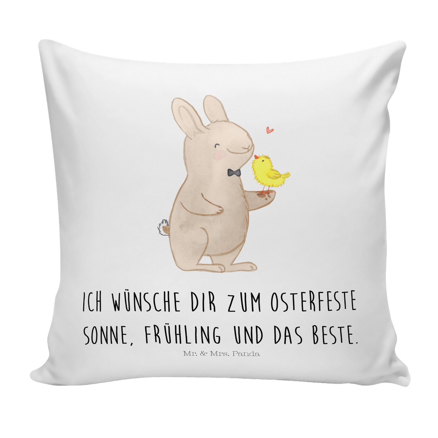 40x40 Kissen Hase mit Küken - mit Spruch - Weiß