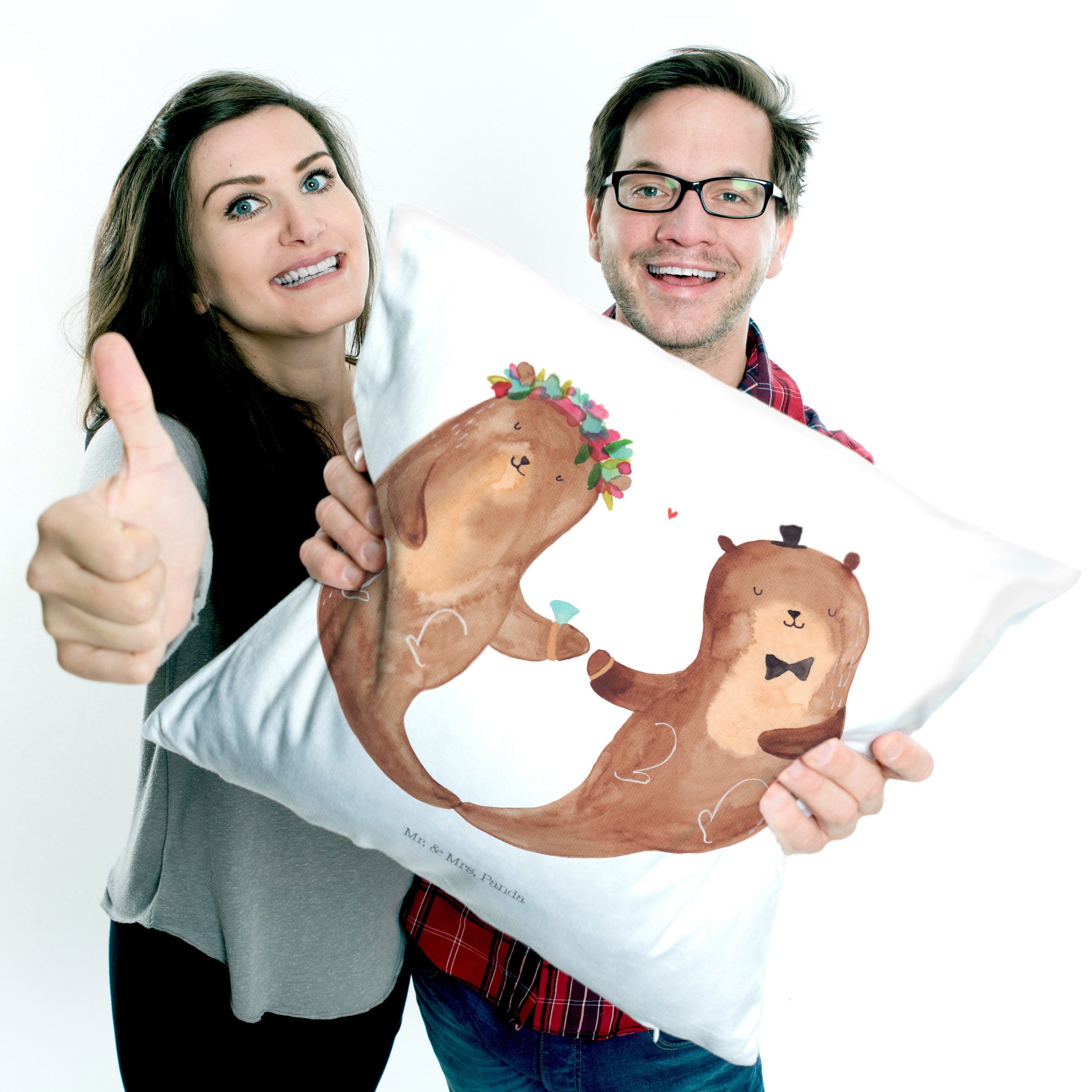 40x40 Kissen Hochzeitspaar Otter - mit Spruch