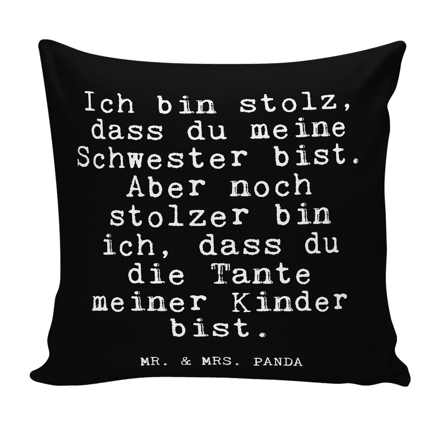 40x40 Kissen Fun Talk Ich bin stolz, dass du meine Schwester bist. Aber noch stolzer bin ich, dass du die Tante meiner Kinder bist.