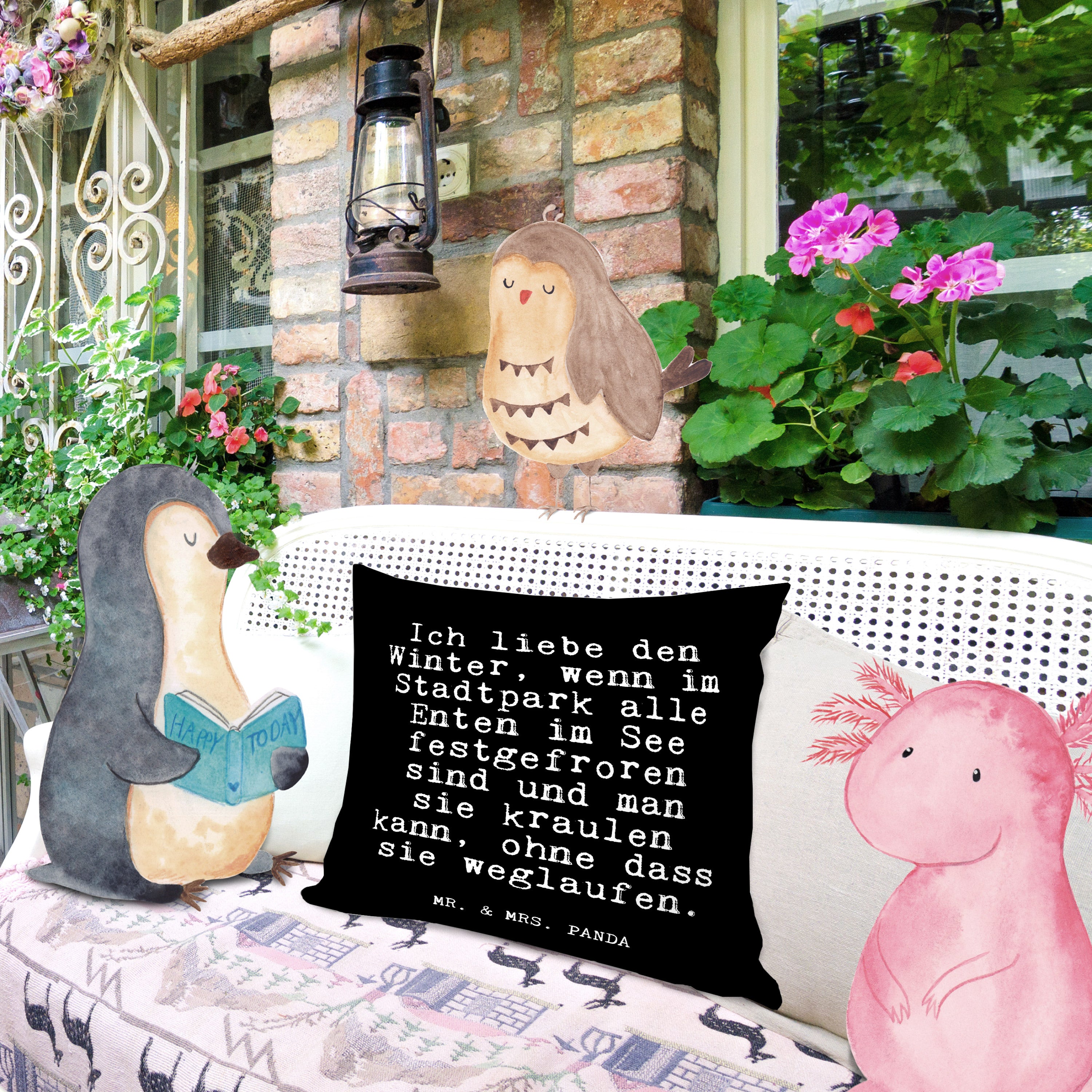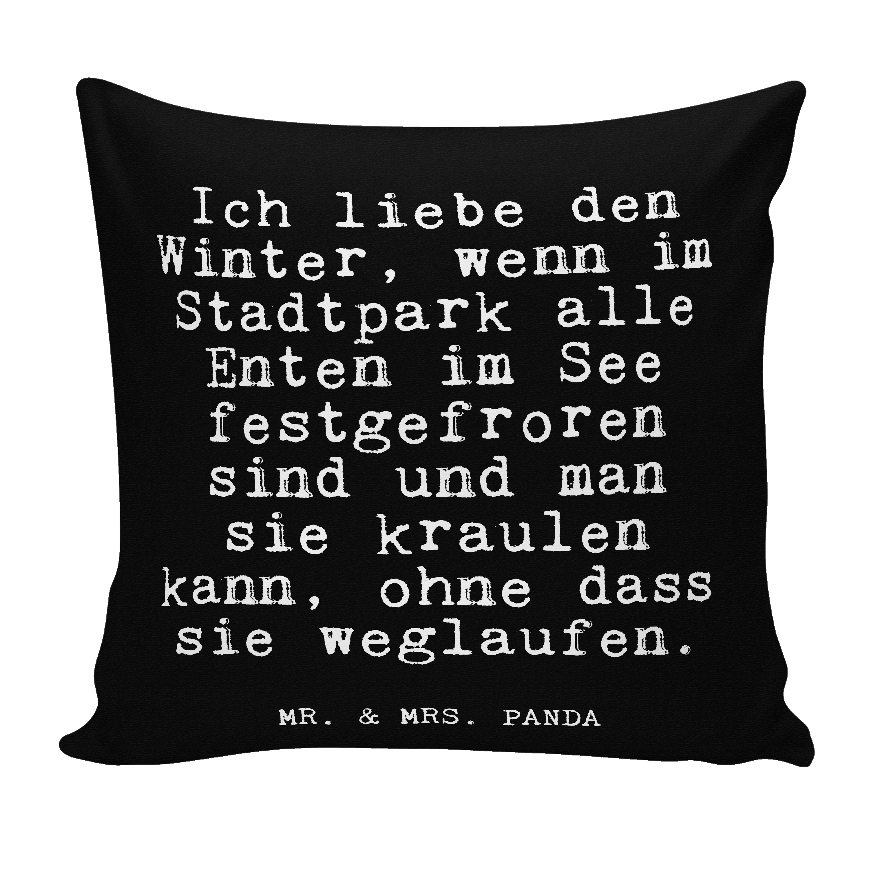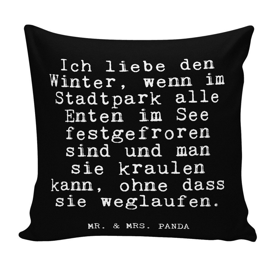 40x40 Kissen Fun Talk Ich liebe den Winter, wenn im Stadtpark alle Enten im See festgefroren sind und man sie kraulen kann, ohne dass sie weglaufen.