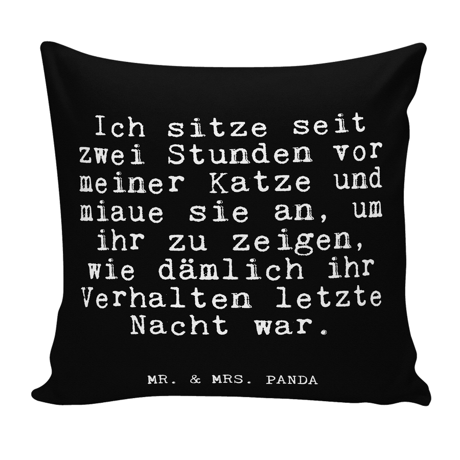 40x40 Kissen Fun Talk Ich sitze seit zwei Stunden vor meiner Katze und miaue sie an, um ihr zu zeigen, wie dämlich ihr Verhalten letzte Nacht war.