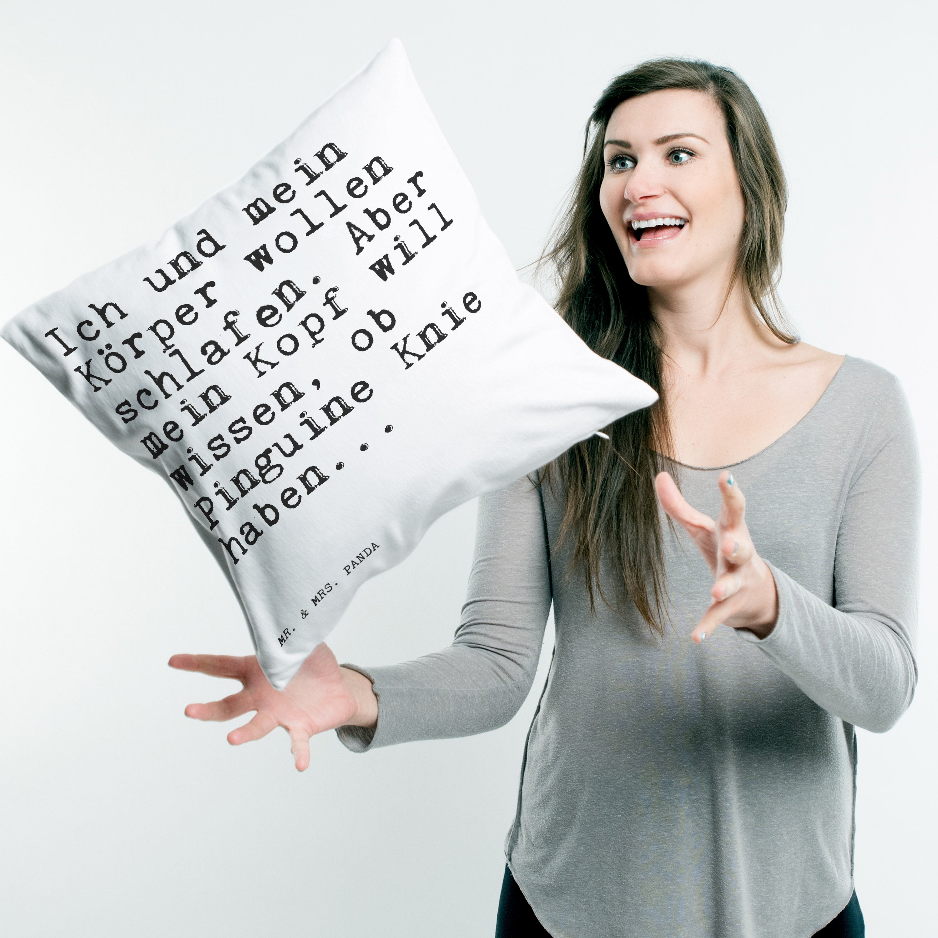40x40 Kissen Sprüche und Zitate Ich und mein Körper wollen schlafen. Aber mein Kopf will wissen, ob Pinguine Knie haben...