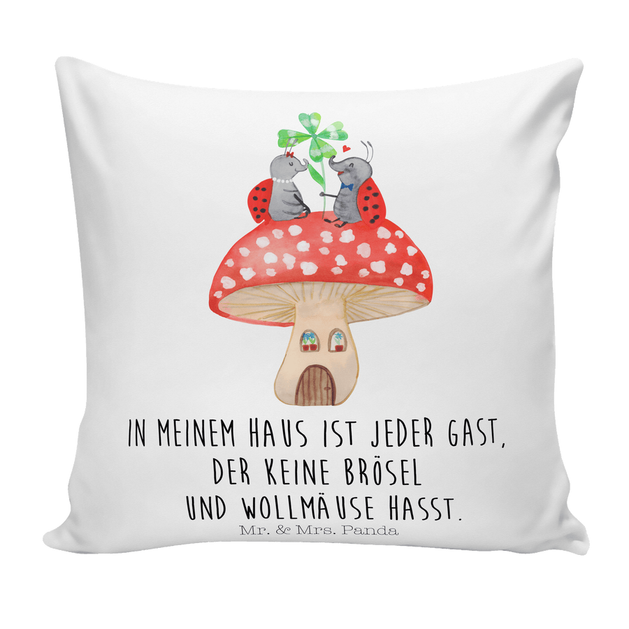 40x40 Kissen Marienkäfer Paar Fliegenpilz - mit Spruch - Weiß
