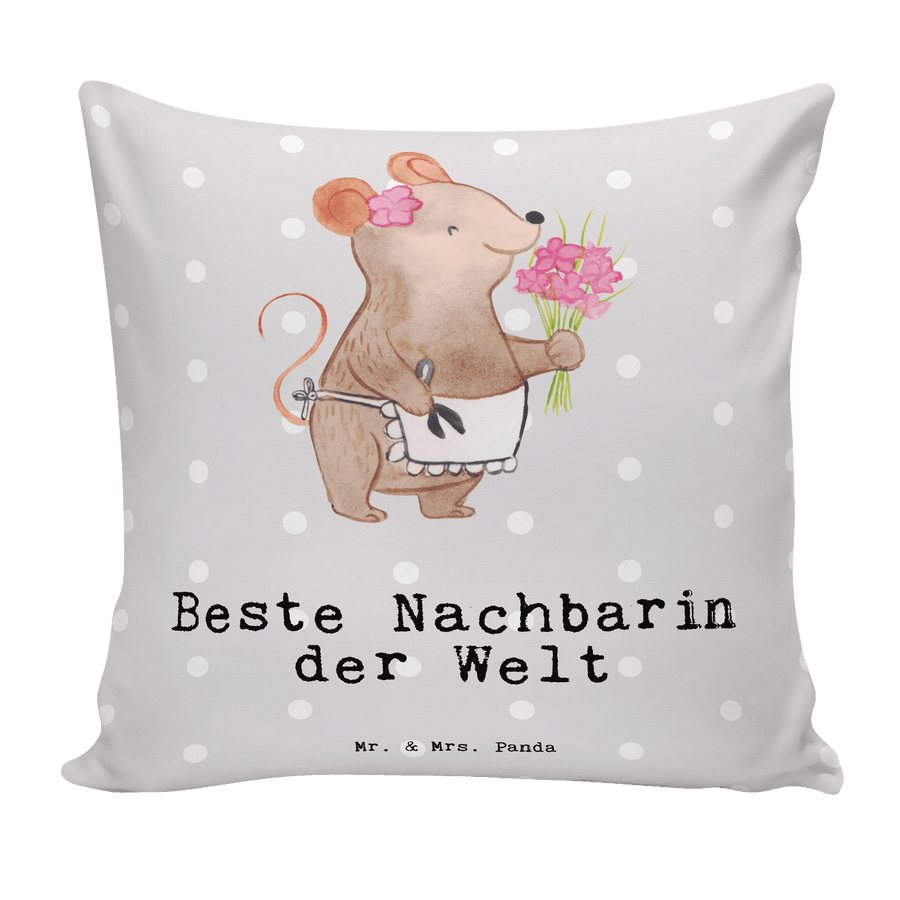 40x40 Kissen Maus Beste Nachbarin der Welt - Grau Pastell