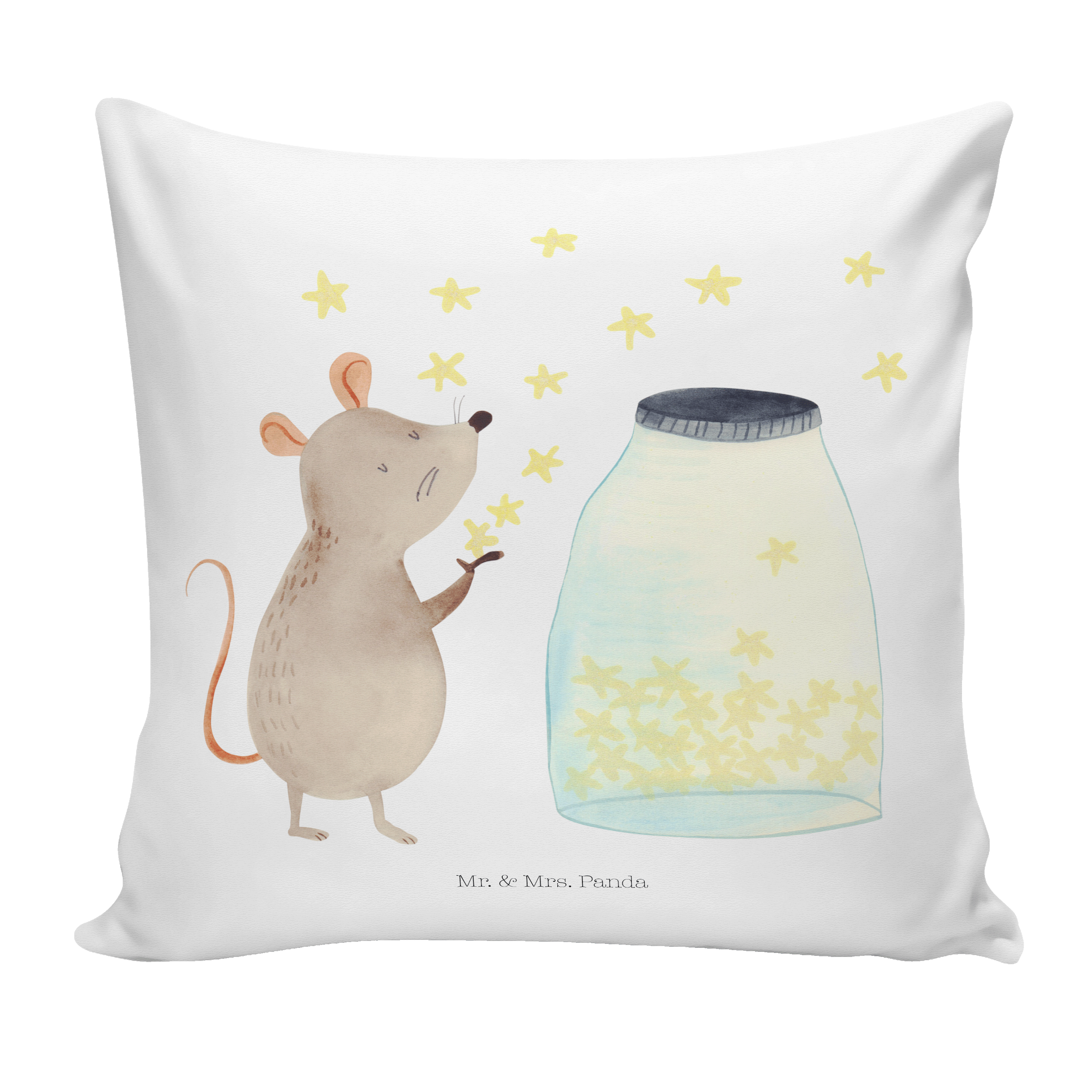 Lass dich von der süßen Maus verzaubern, die vor einem Glas funkelnder Sterne sitzt und jeden einzelnen in die Freiheit entlässt. Sie träumt von Abenteuern und entführt dich mit ihren Sternen auf eine wunderbare Reise durch die Weiten des Universums.