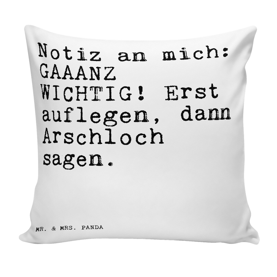 40x40 Kissen Sprüche und Zitate Notiz an mich: GAAANZ WICHTIG! Erst auflegen, dann Arschloch sagen.