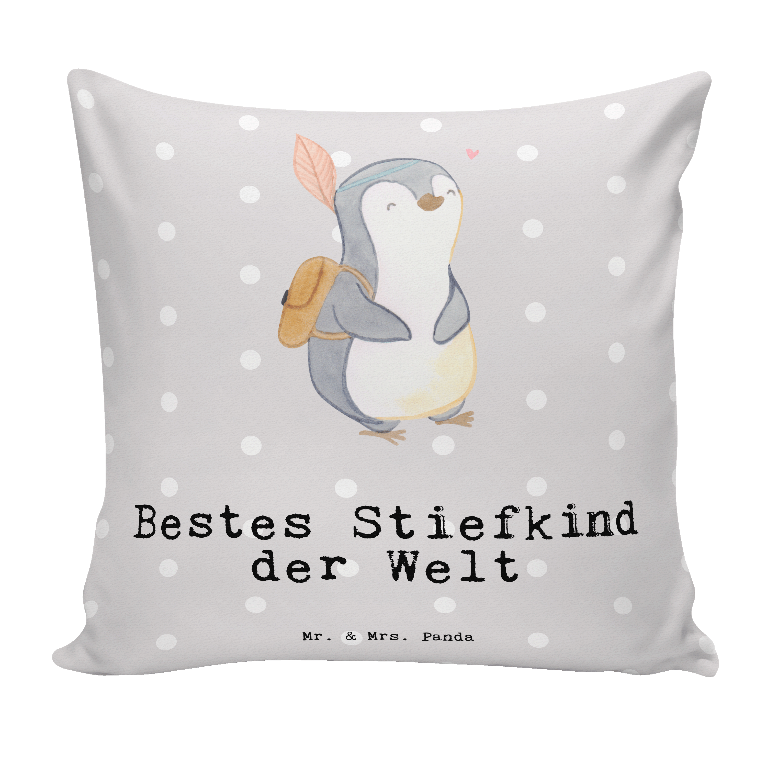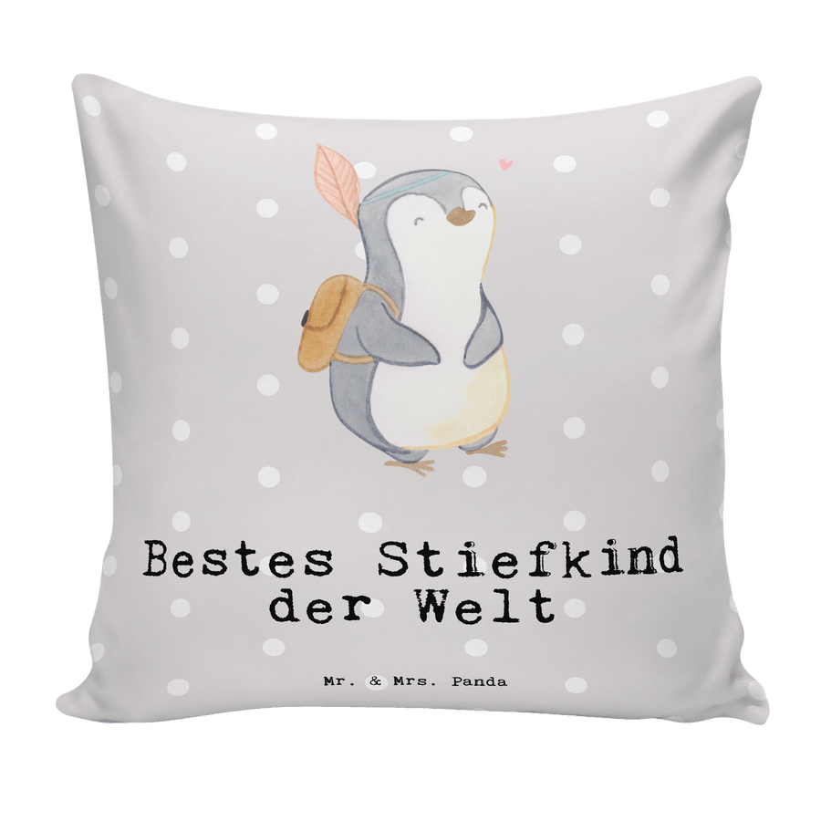 40x40 Kissen Pinguin Bestes Stiefkind der Welt - Grau Pastell