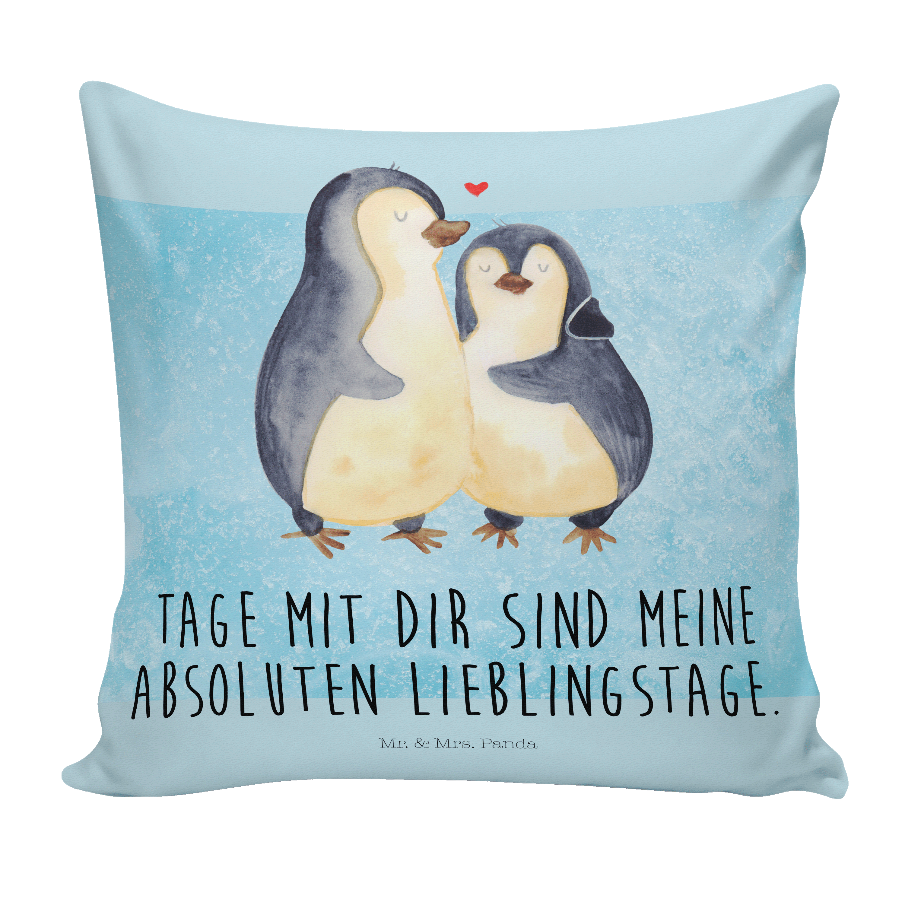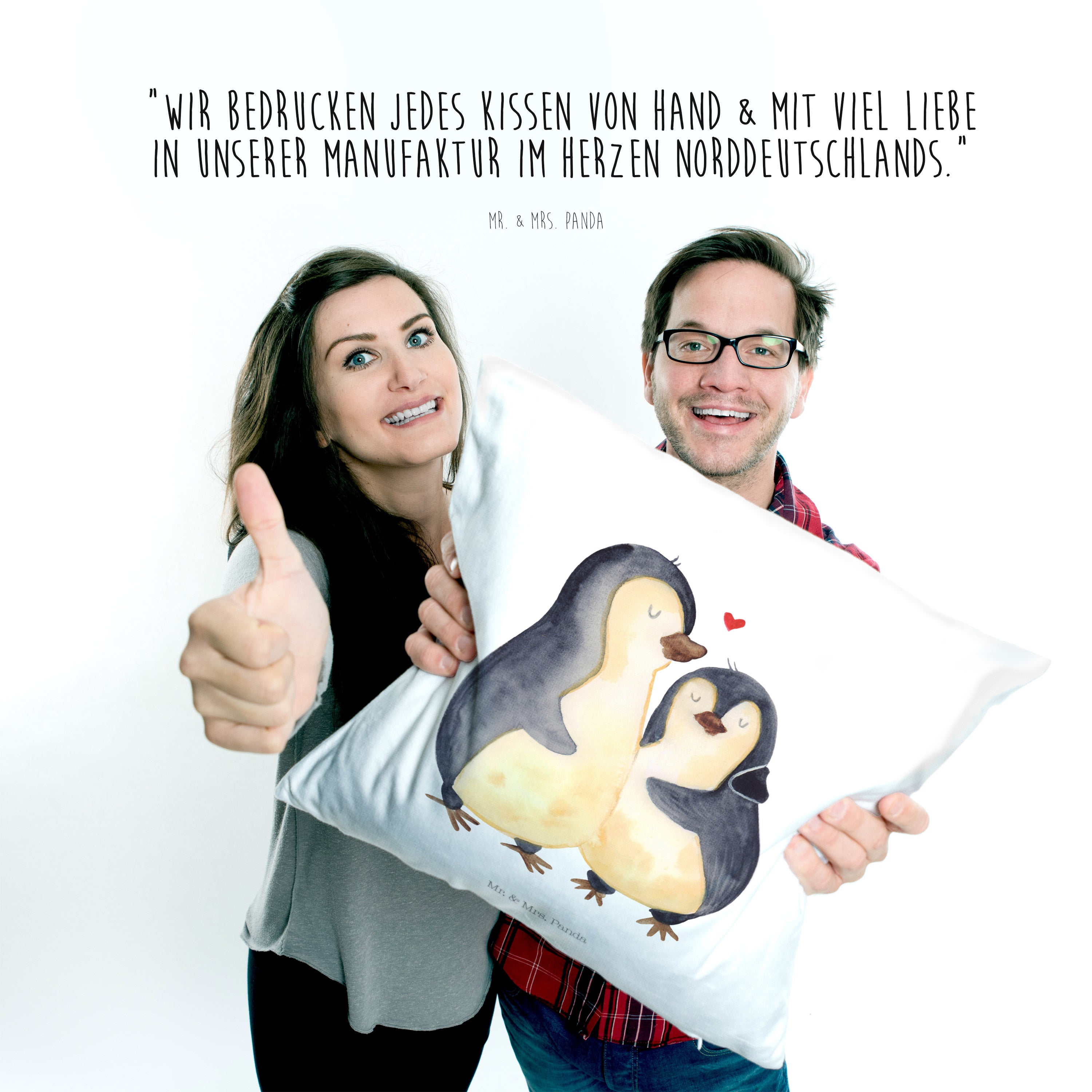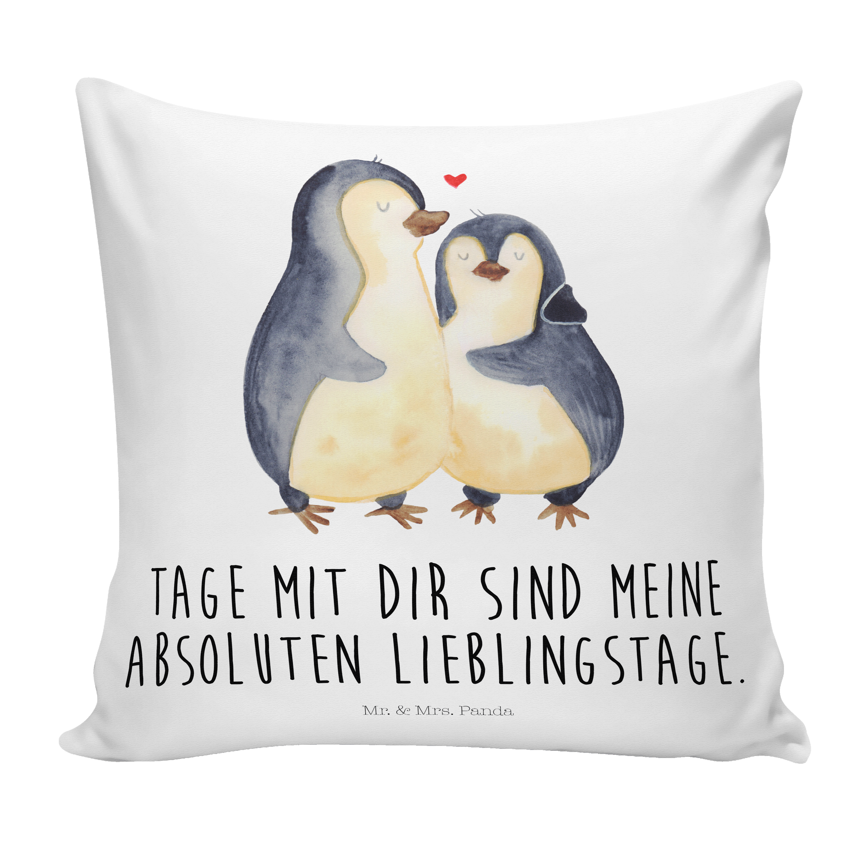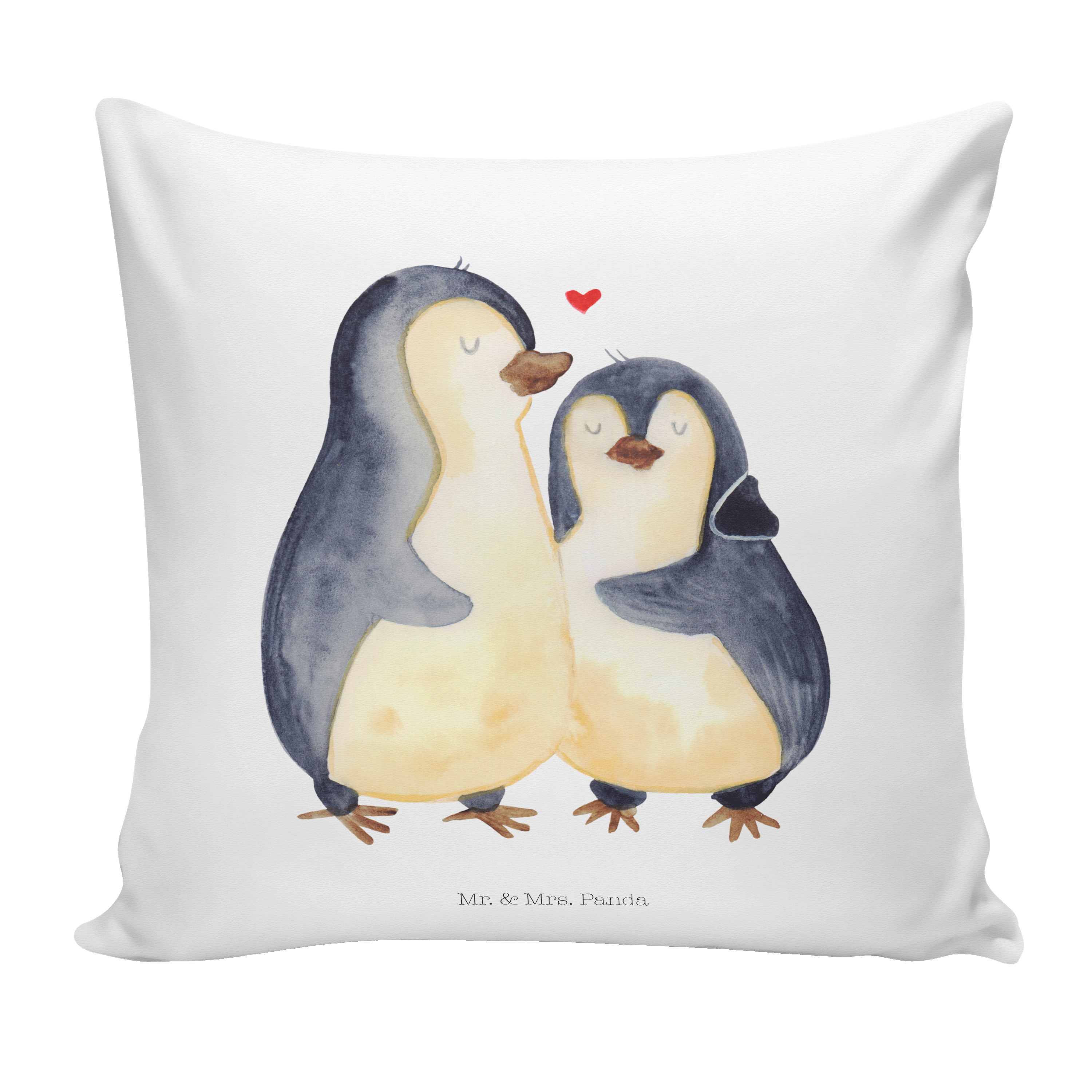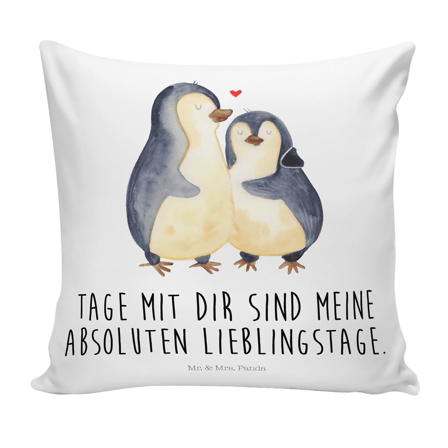40x40 Kissen Pinguin umarmend - mit Spruch - Weiß