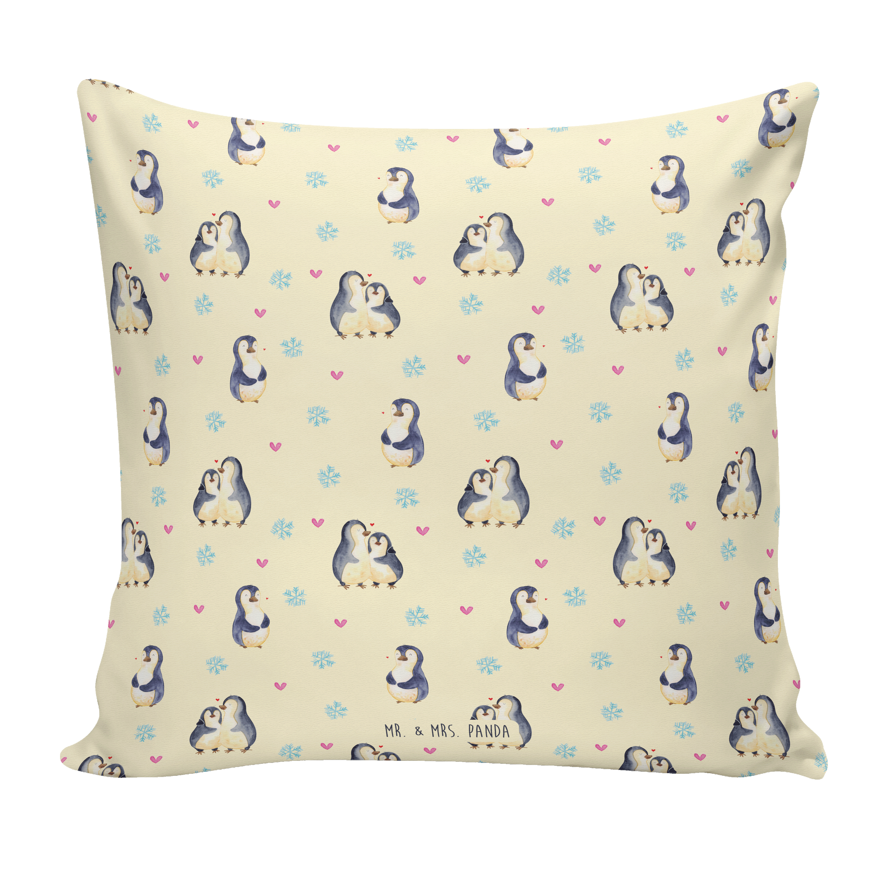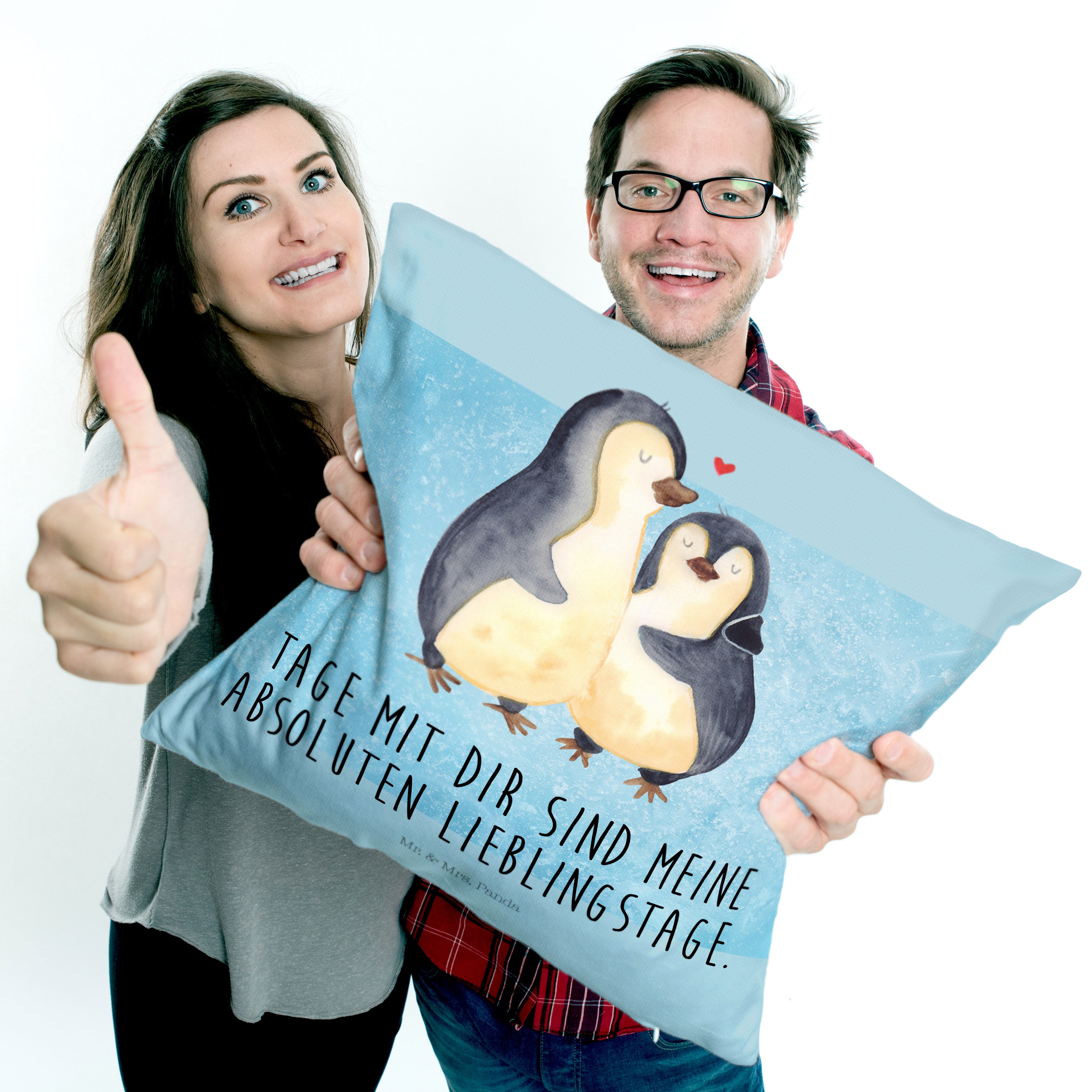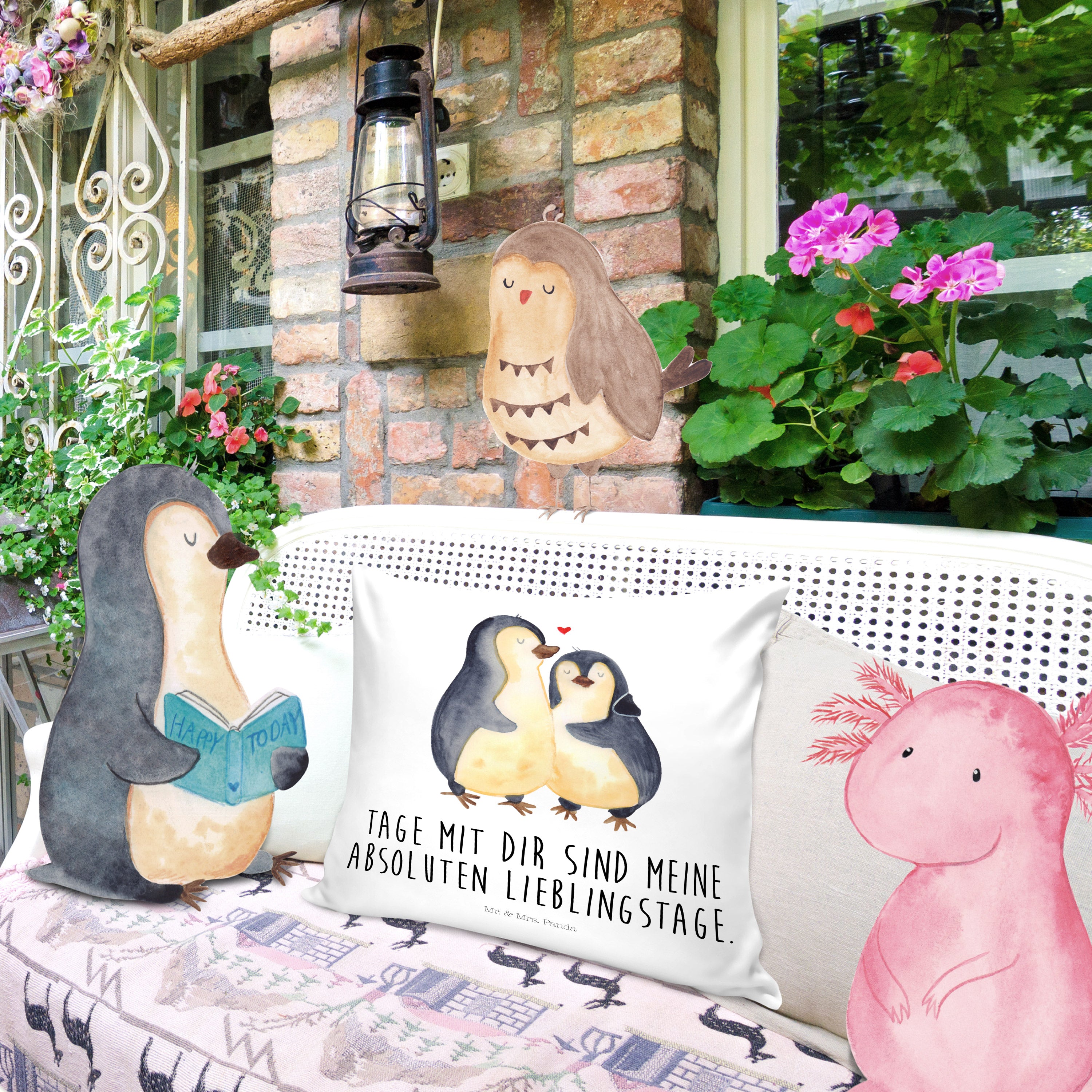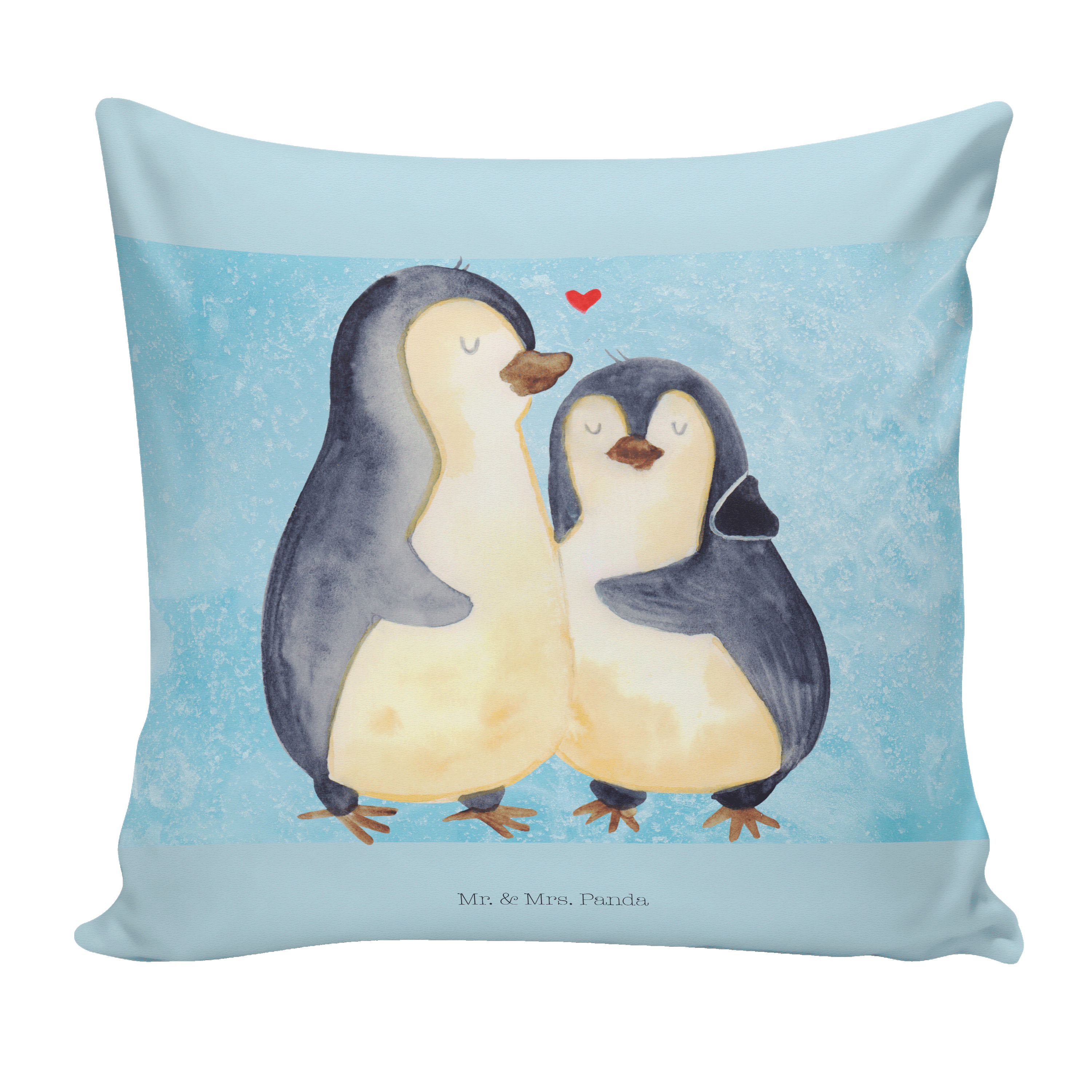 40x40 Kissen Pinguin umarmend - mit Spruch - Weiß