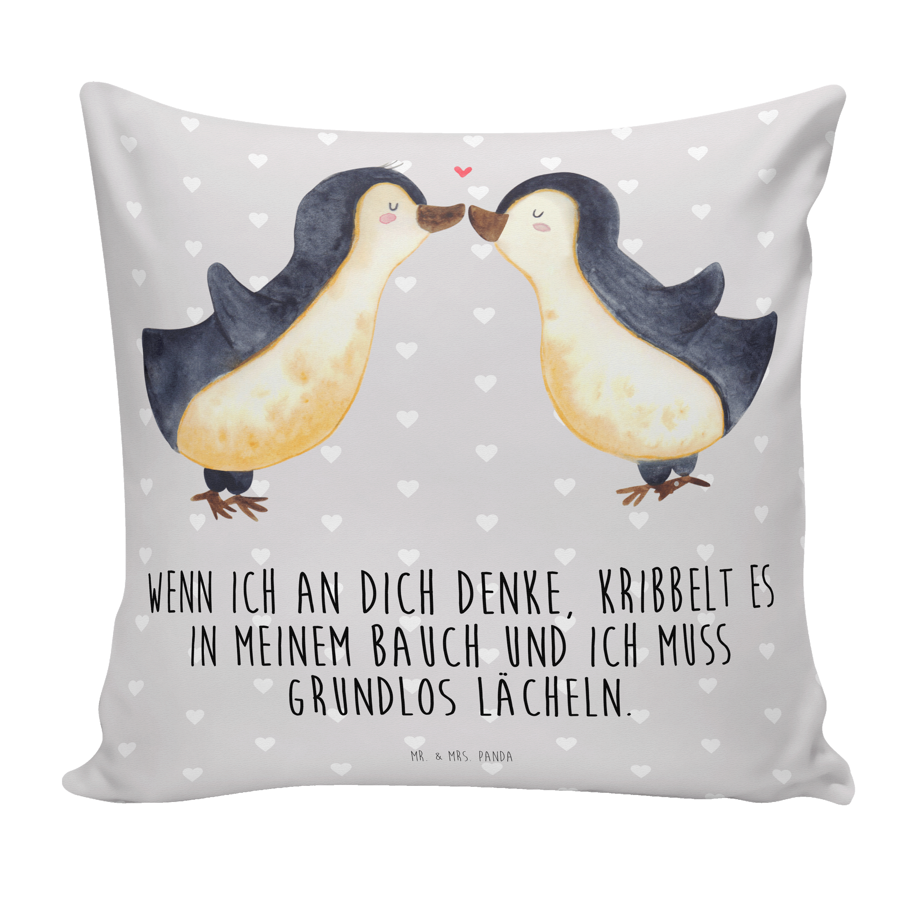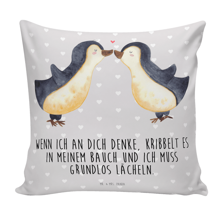 40x40 Kissen Pinguine Kuss - Grau Pastell