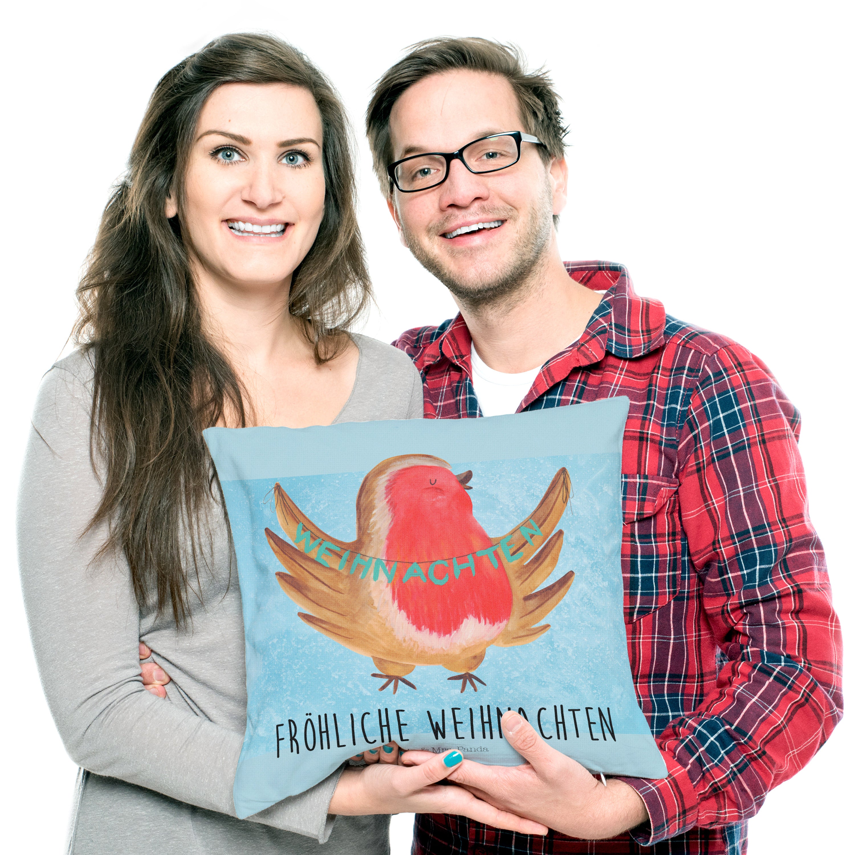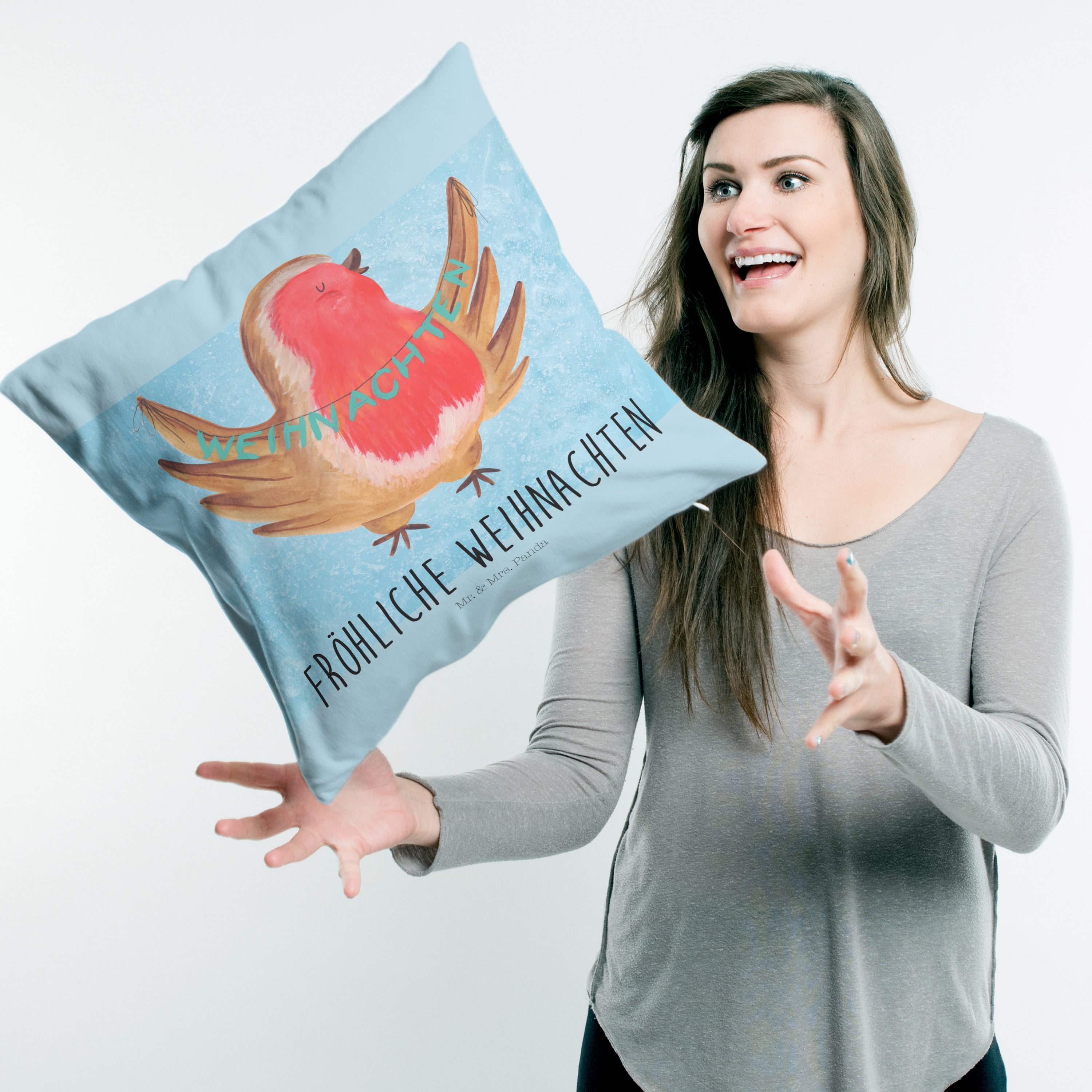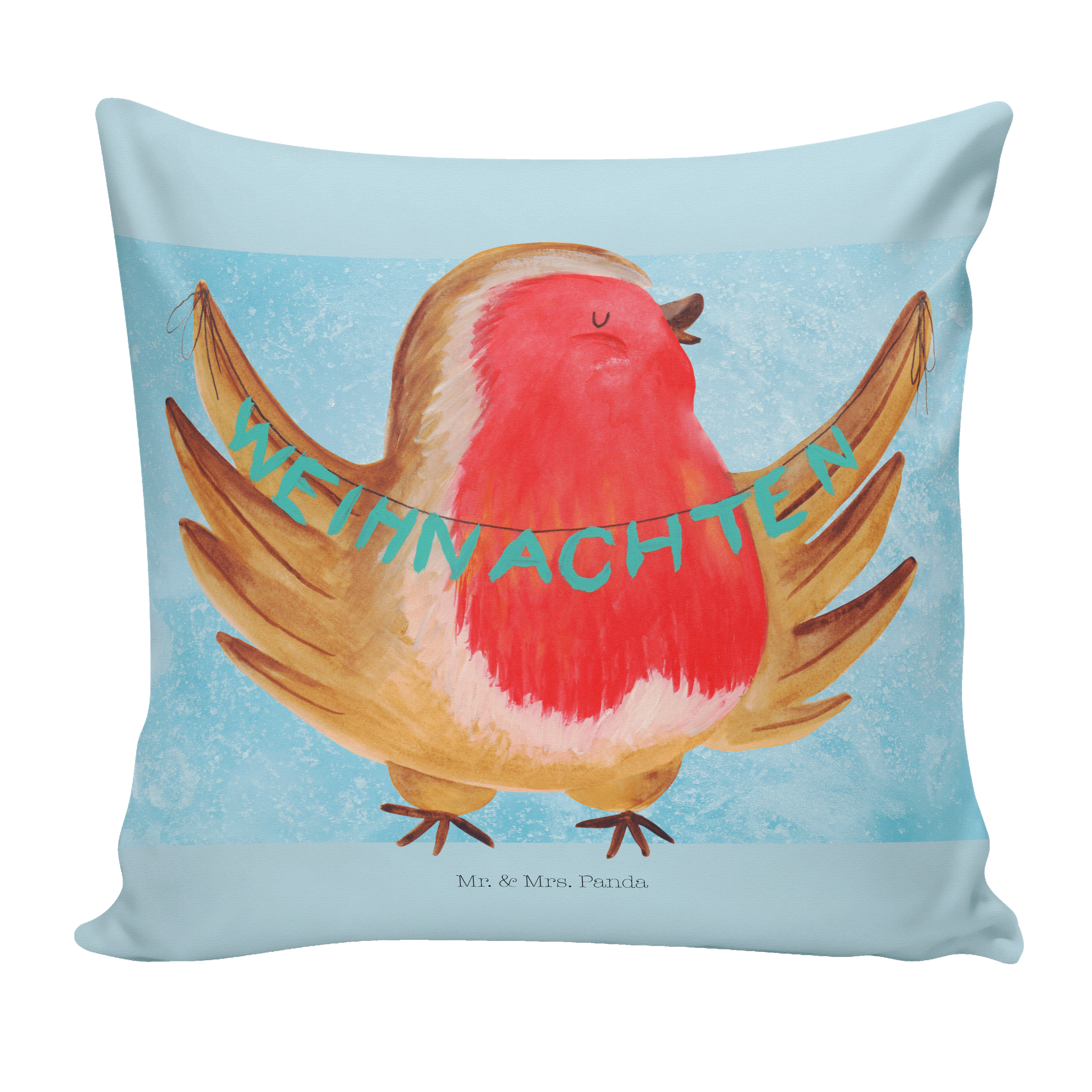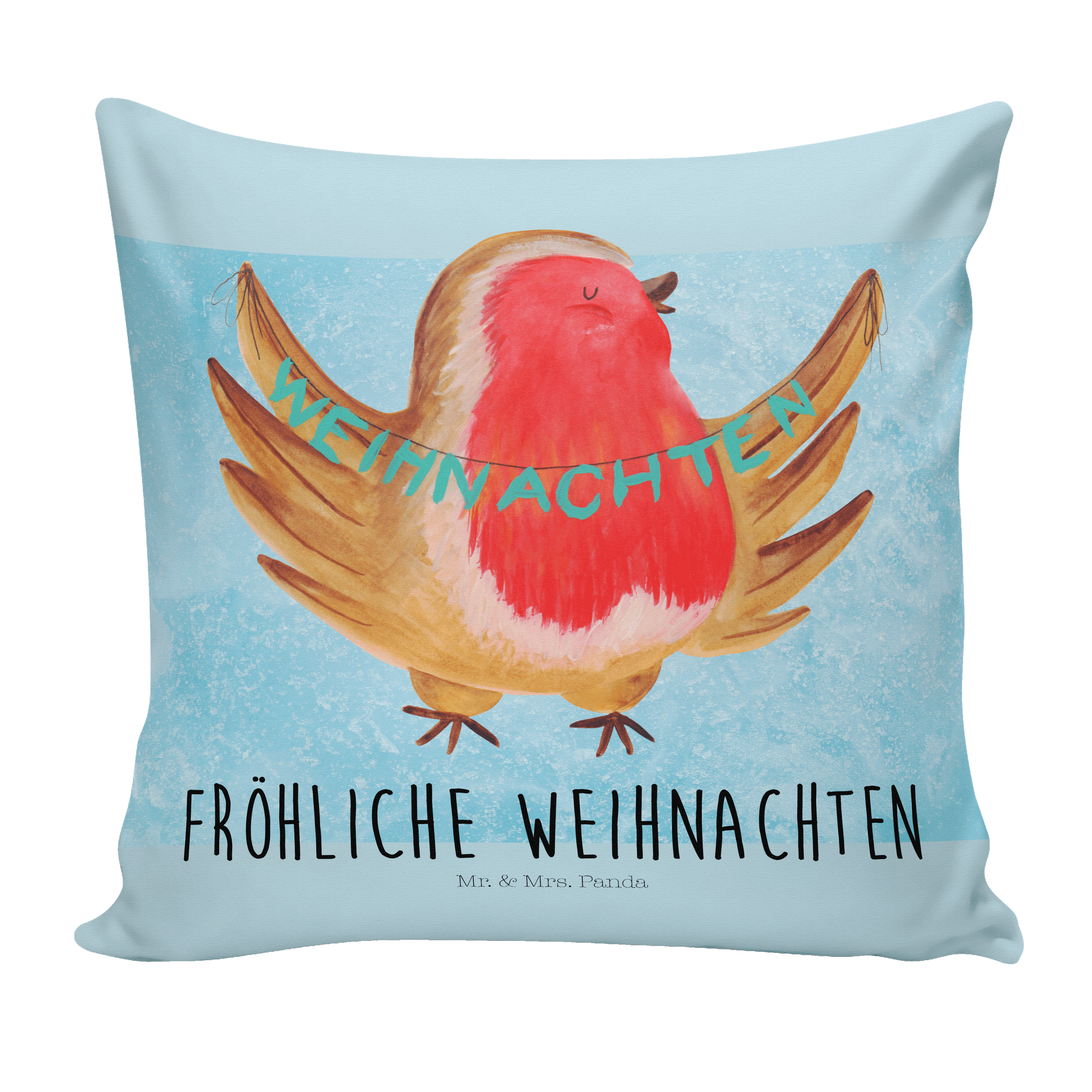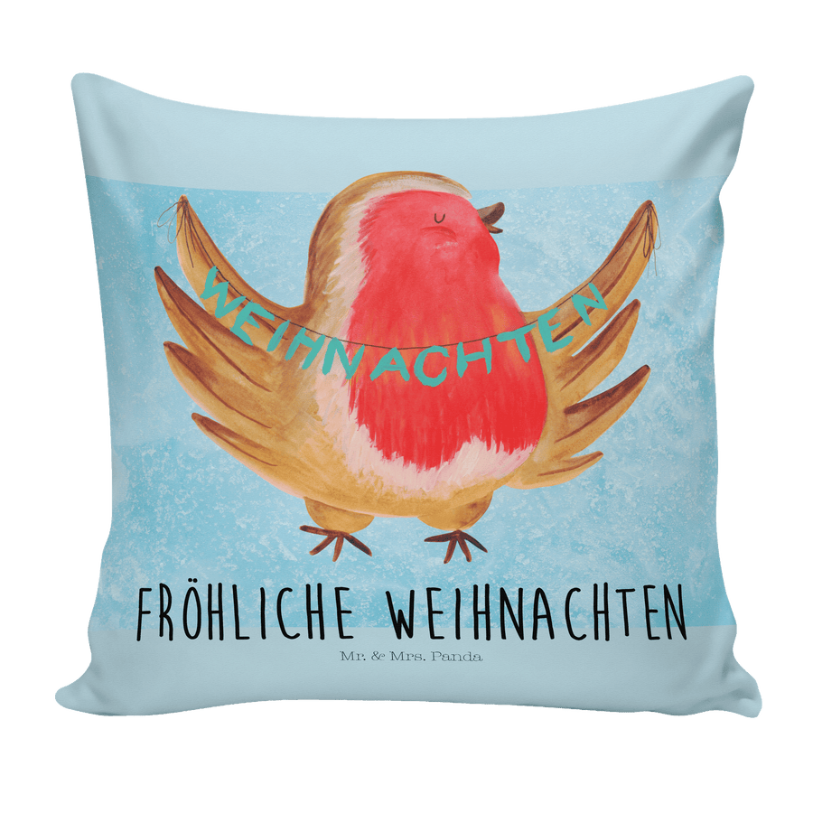 40x40 Kissen Rotkehlchen Weihnachten - mit Spruch - Eisblau