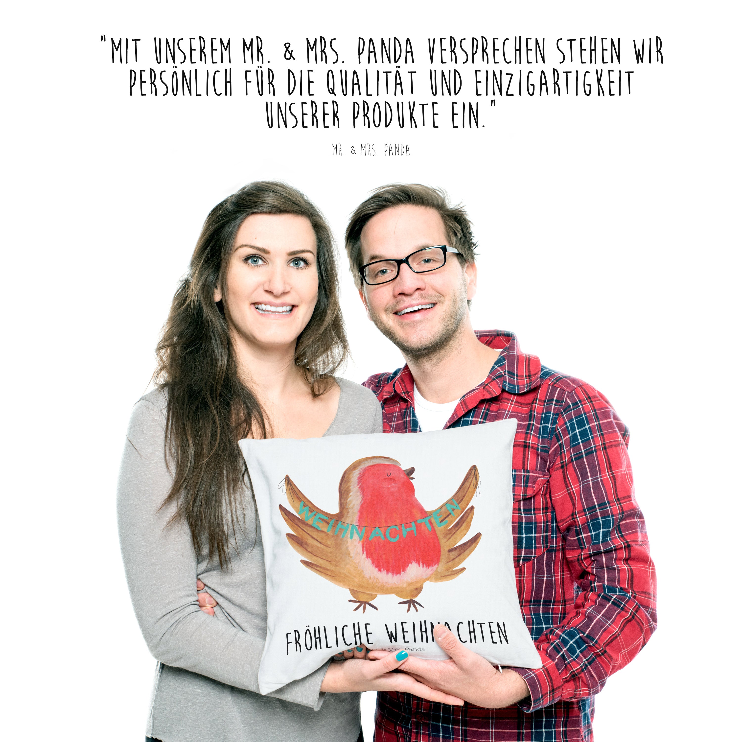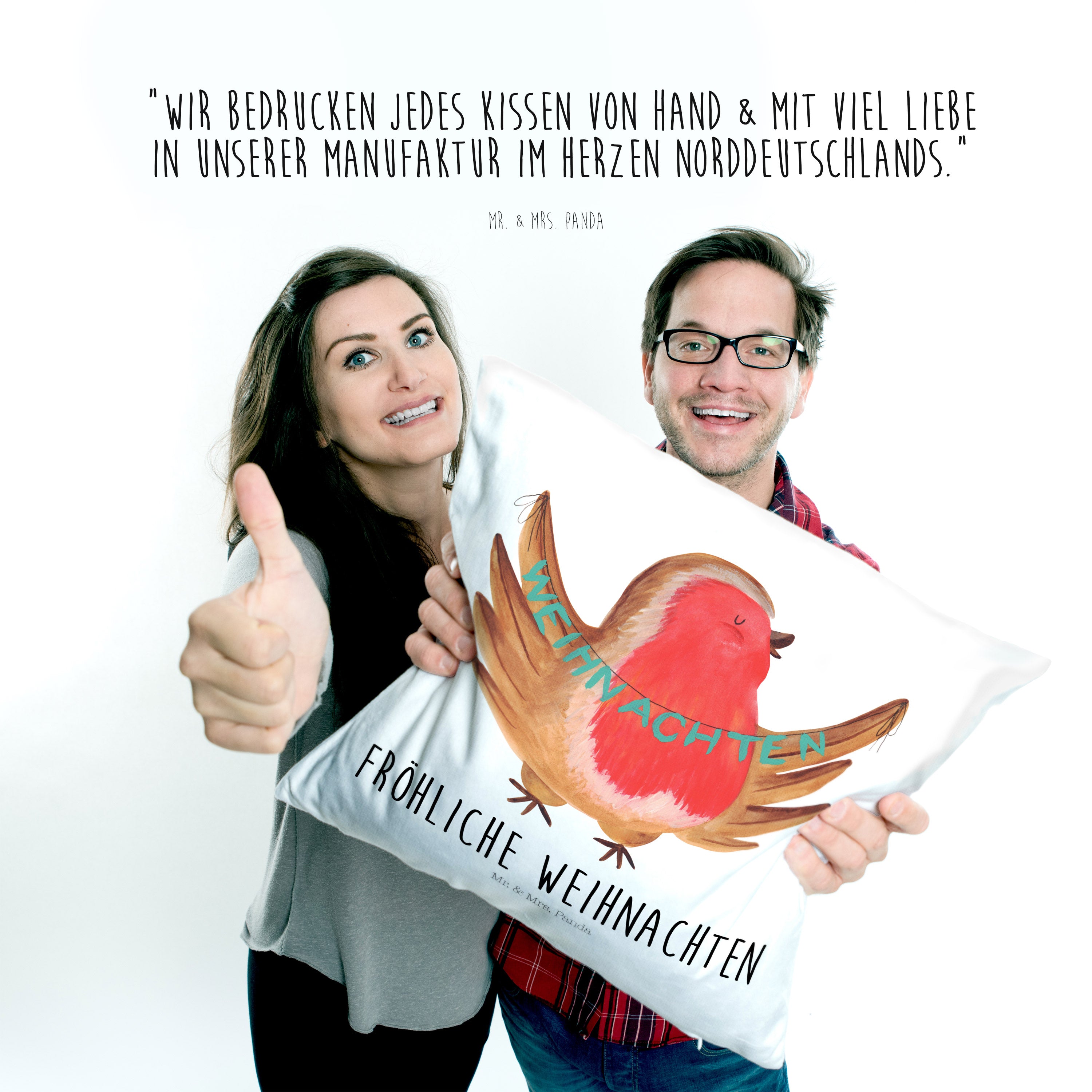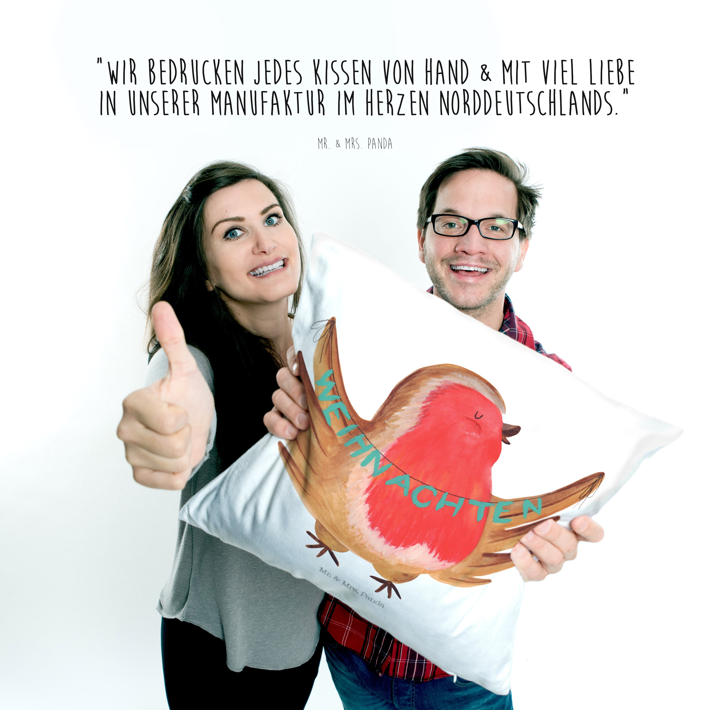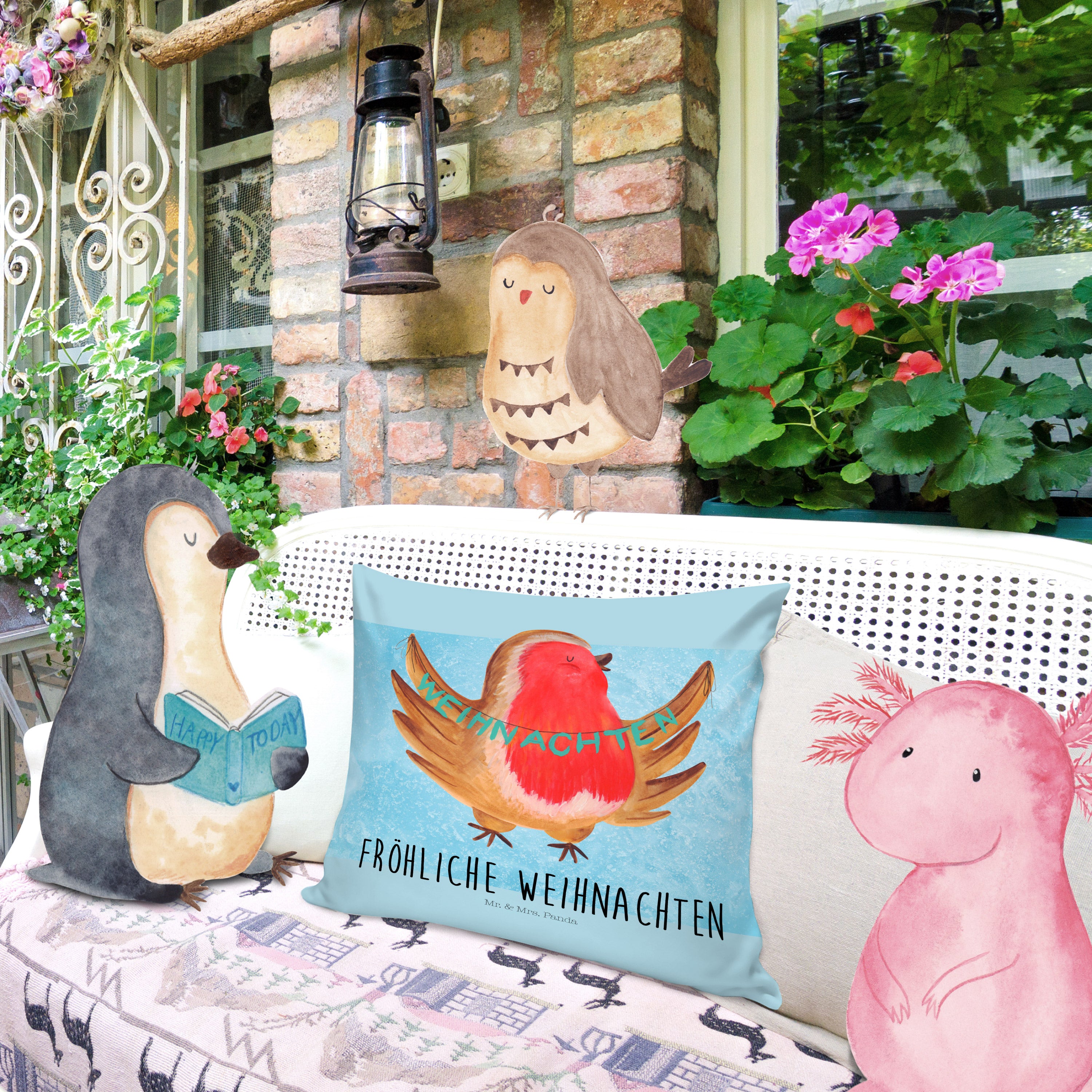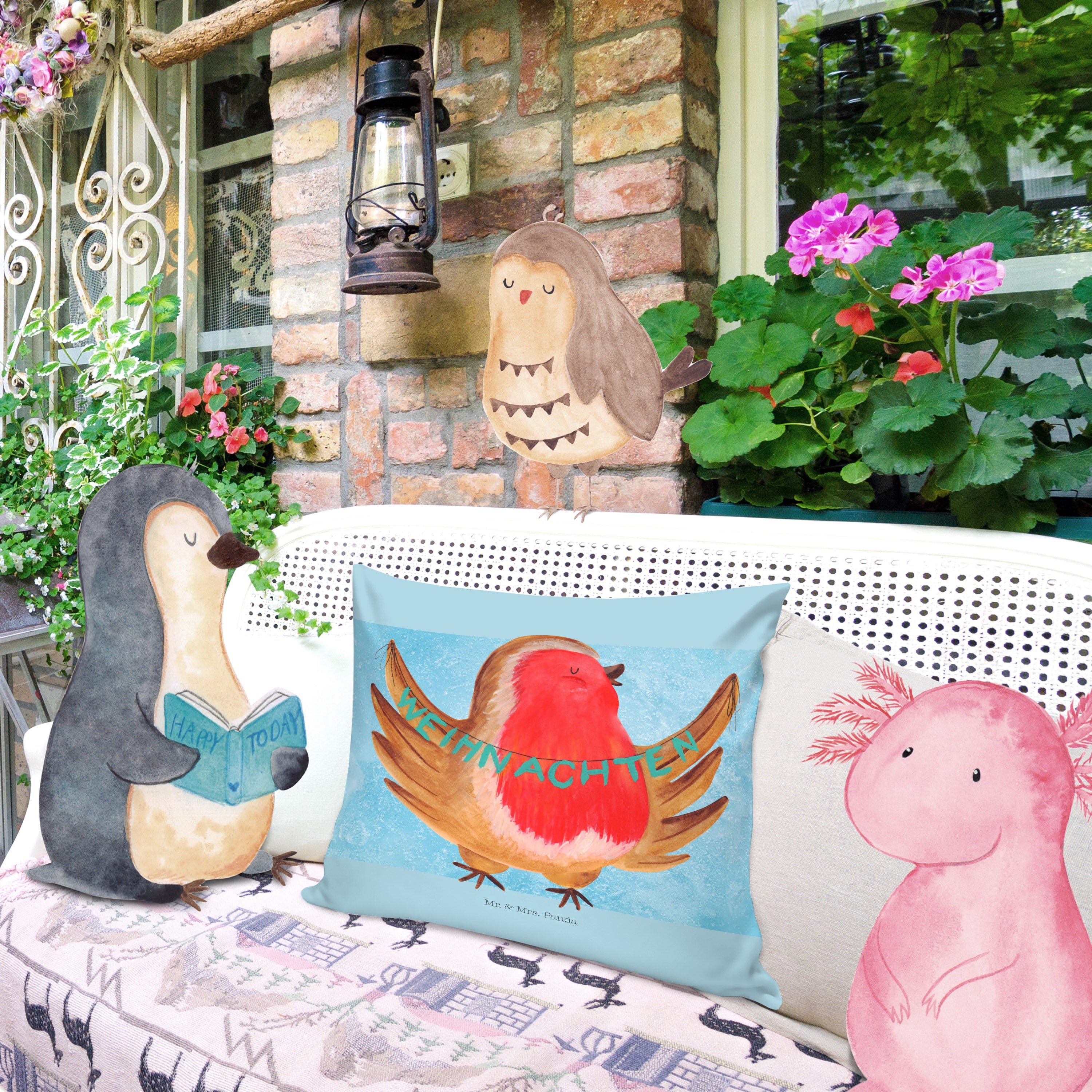 40x40 Kissen Rotkehlchen Weihnachten - mit Spruch - Eisblau