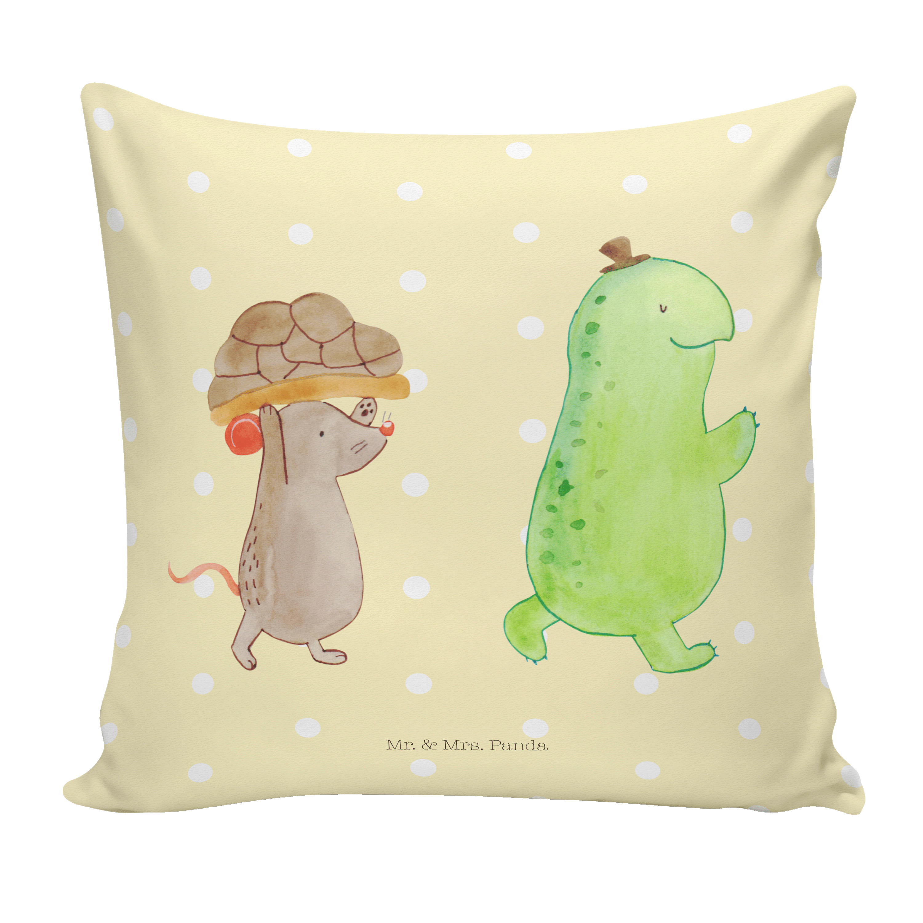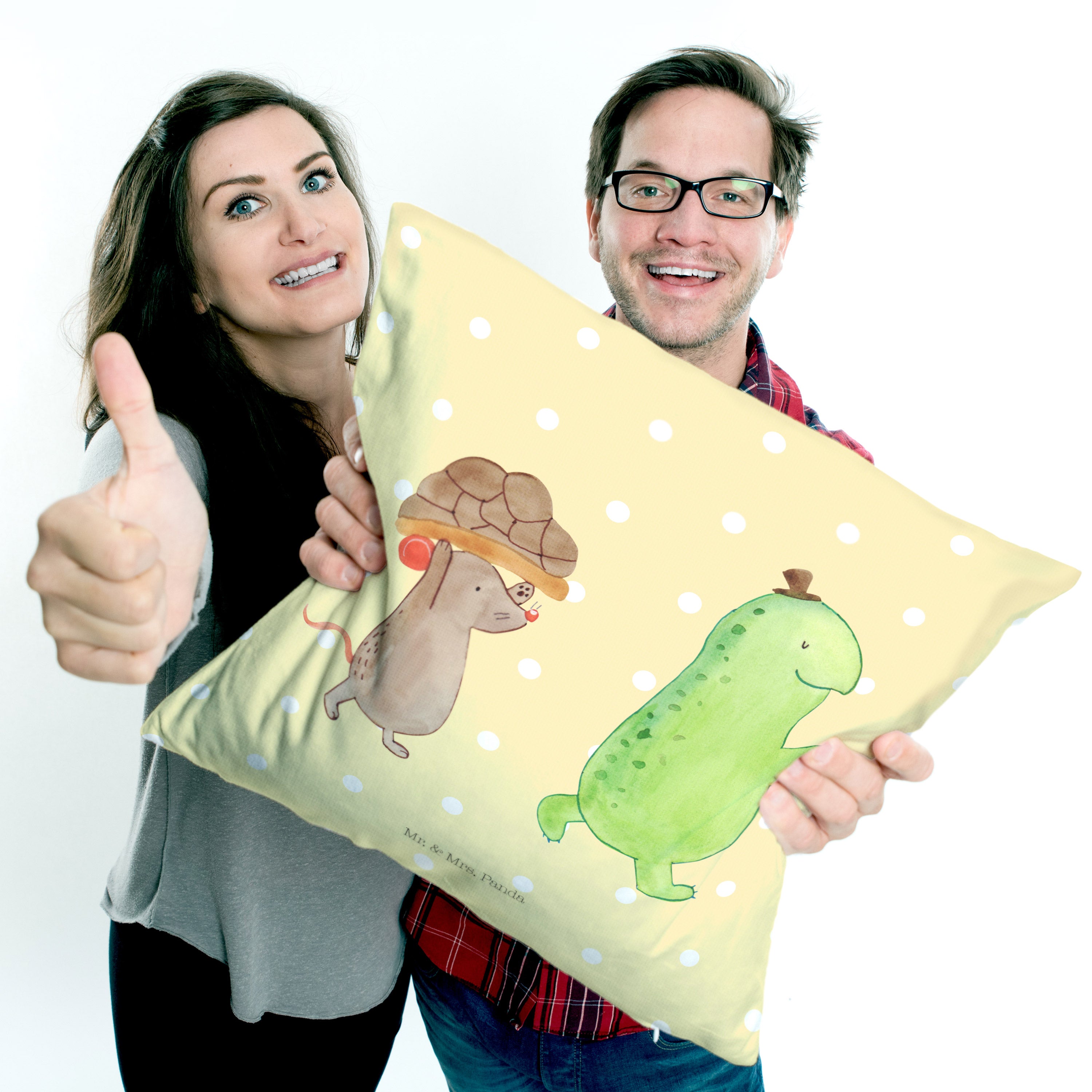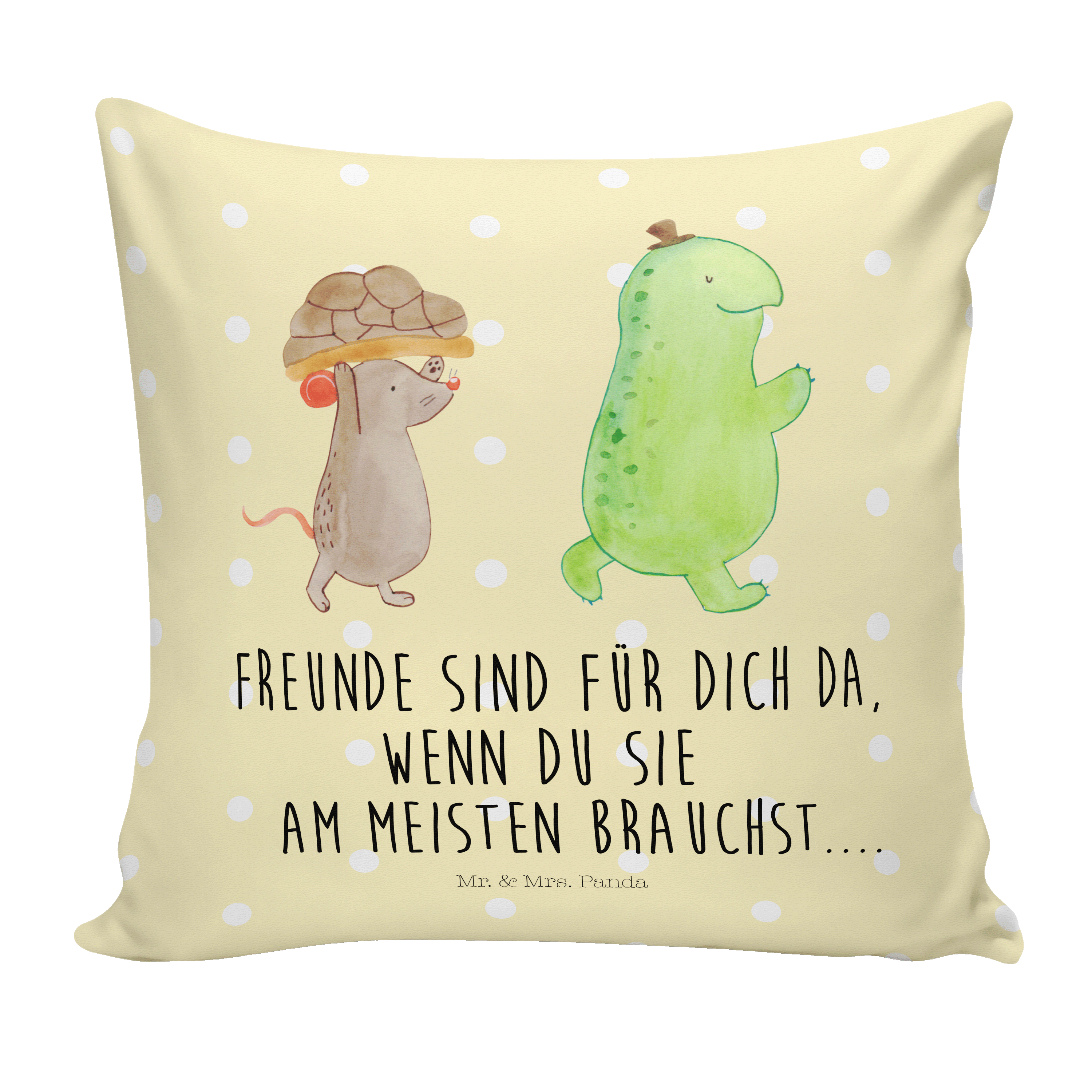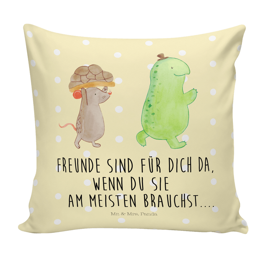 40x40 Kissen Schildkröte & Maus - mit Spruch - Gelb Pastell