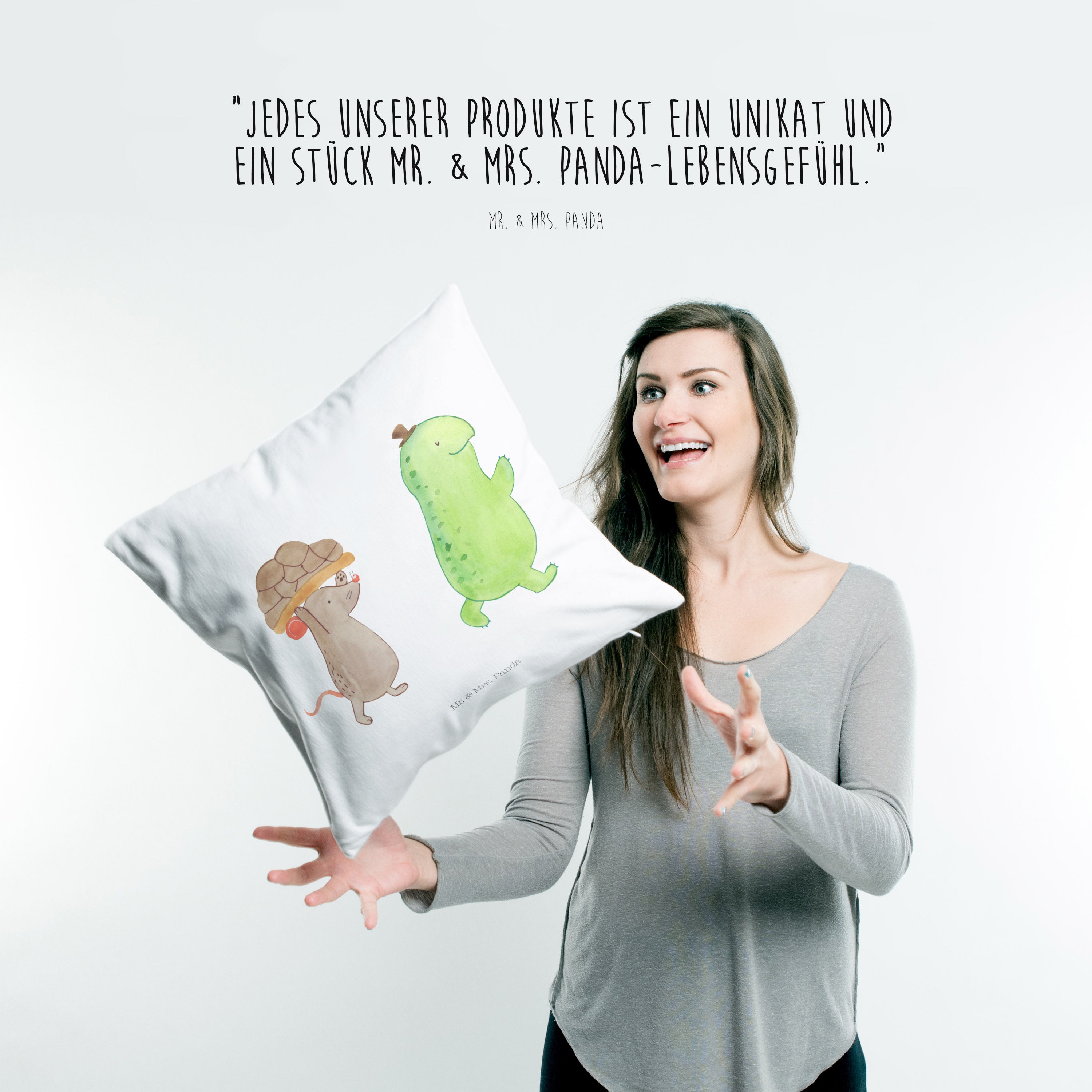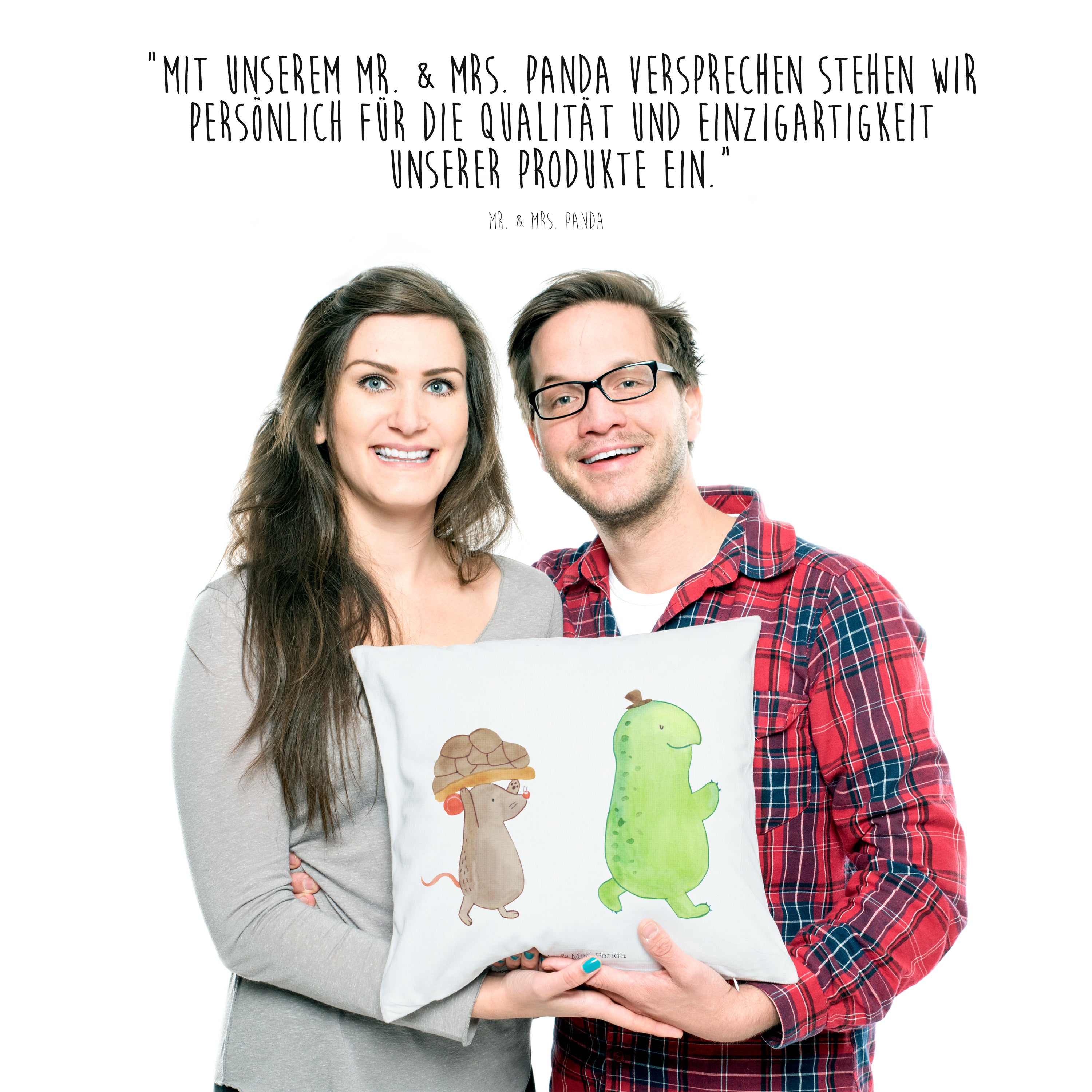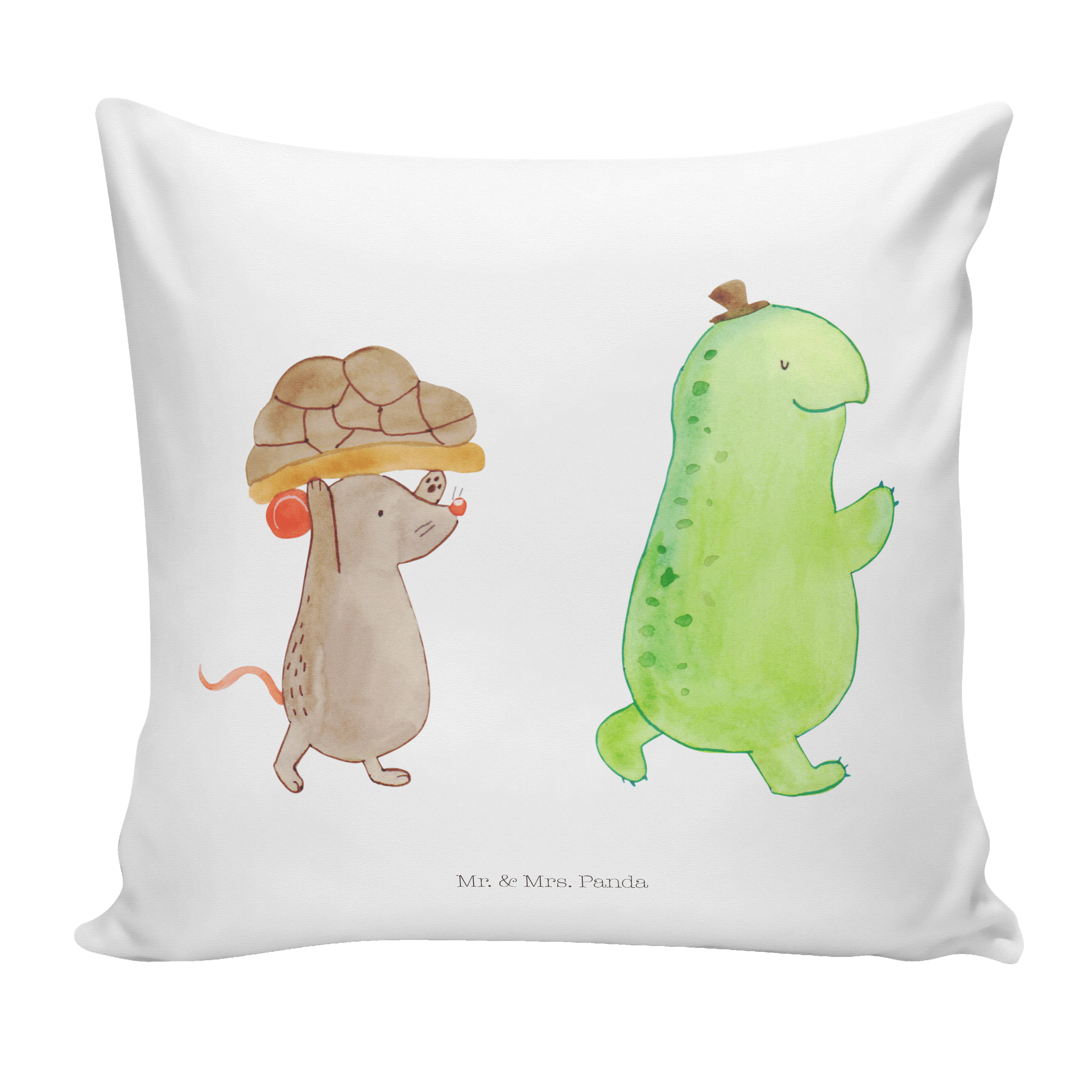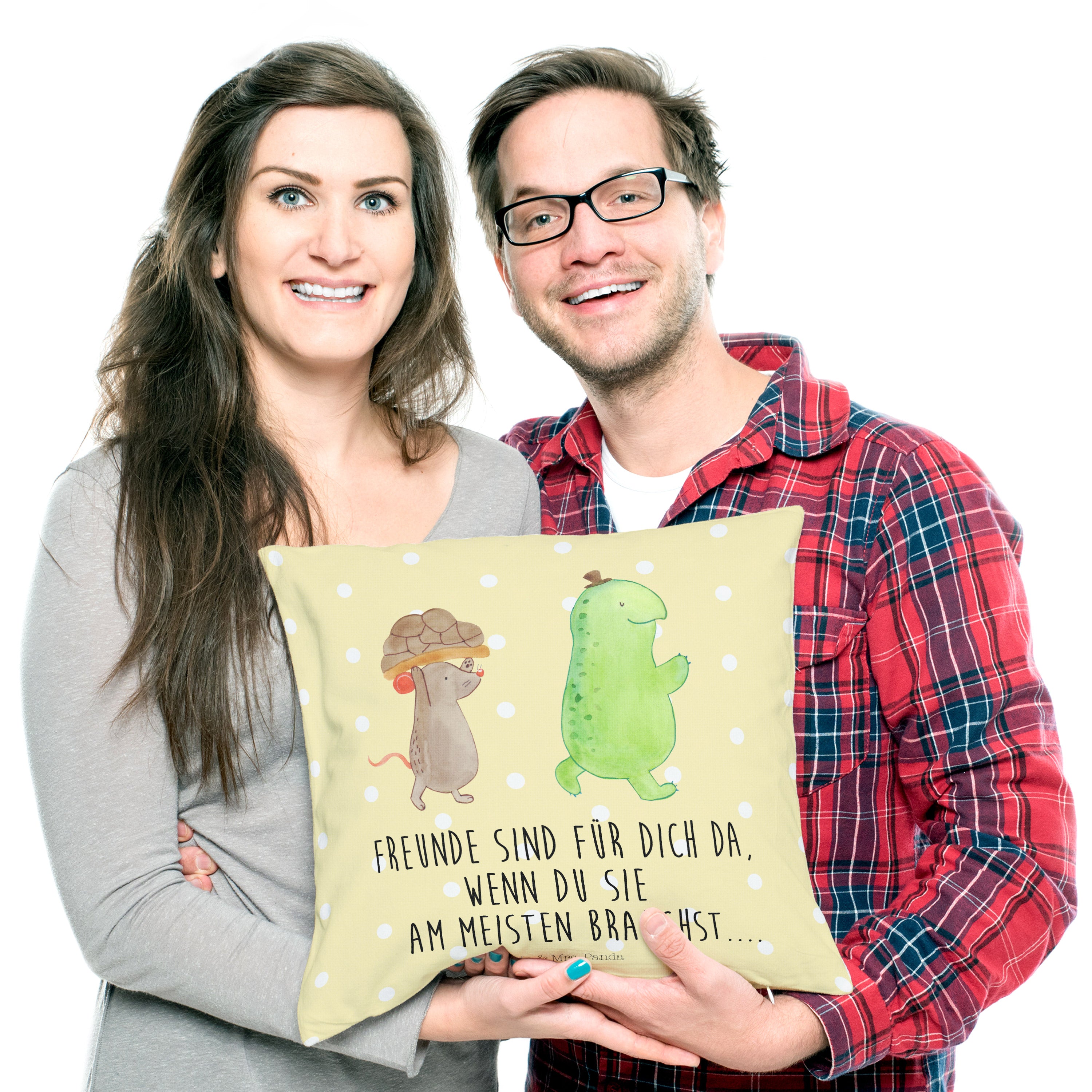 40x40 Kissen Schildkröte & Maus - mit Spruch - Gelb Pastell