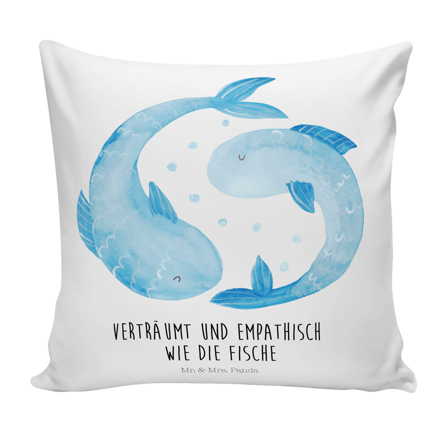 40x40 Kissen Sternzeichen Fische - mit Spruch - Weiß