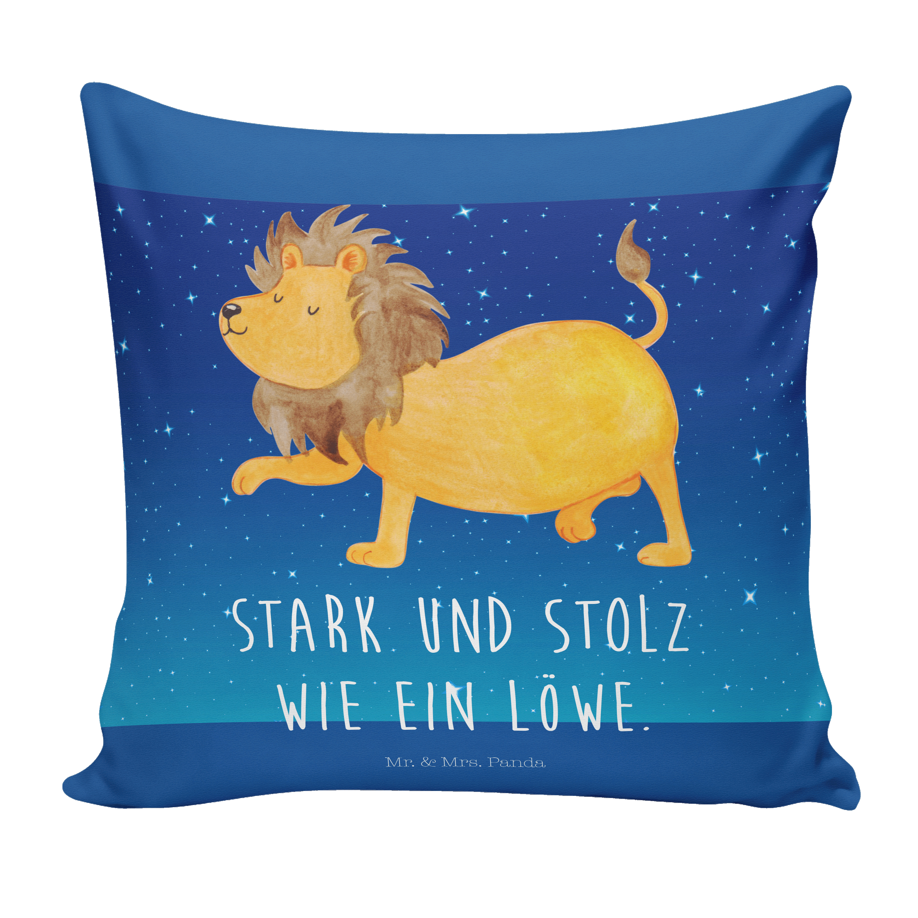 40x40 Kissen Sternzeichen Löwe - mit Spruch - Sternenhimmel Blau