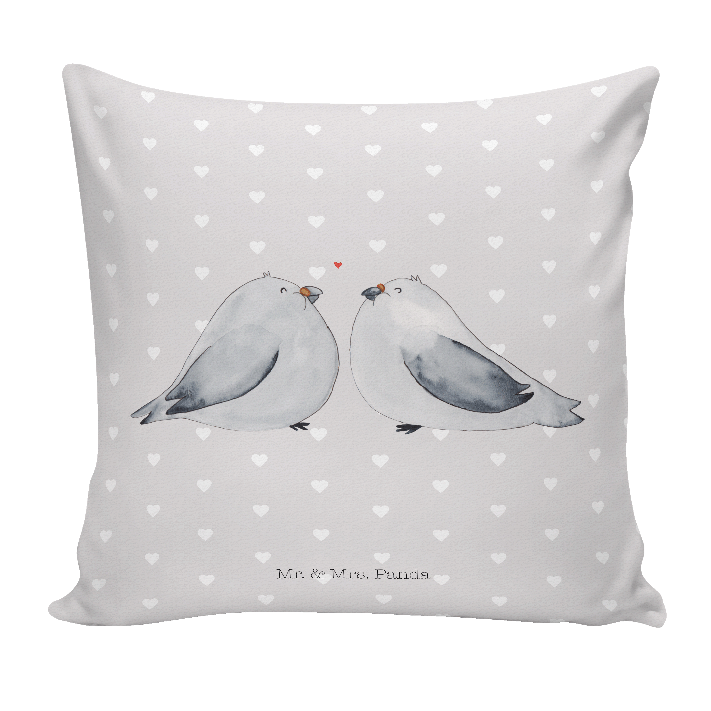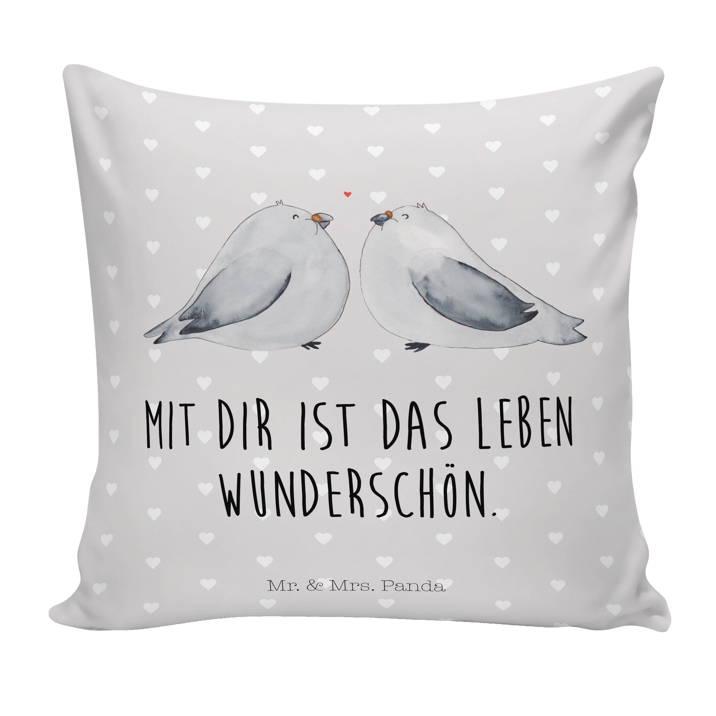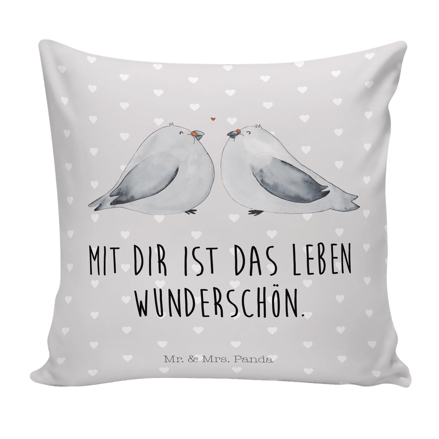40x40 Kissen Turteltauben Liebe - mit Spruch - Grau Pastell