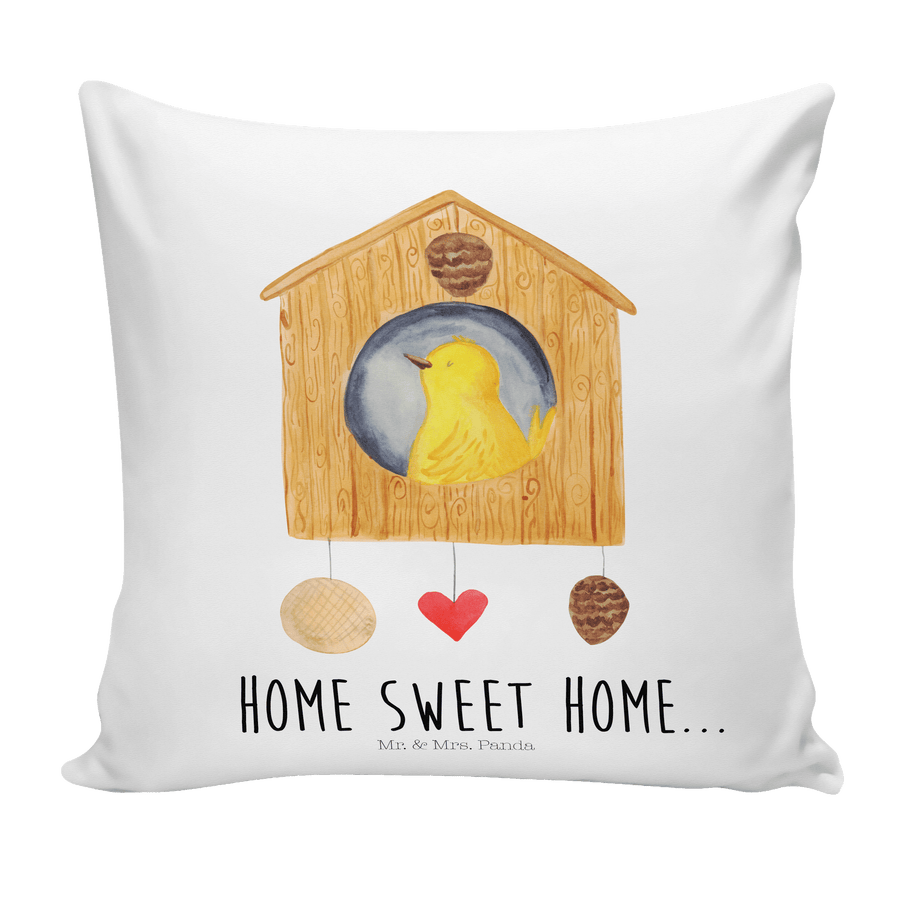 40x40 Kissen Vogelhaus sweet Home - mit Spruch - Weiß